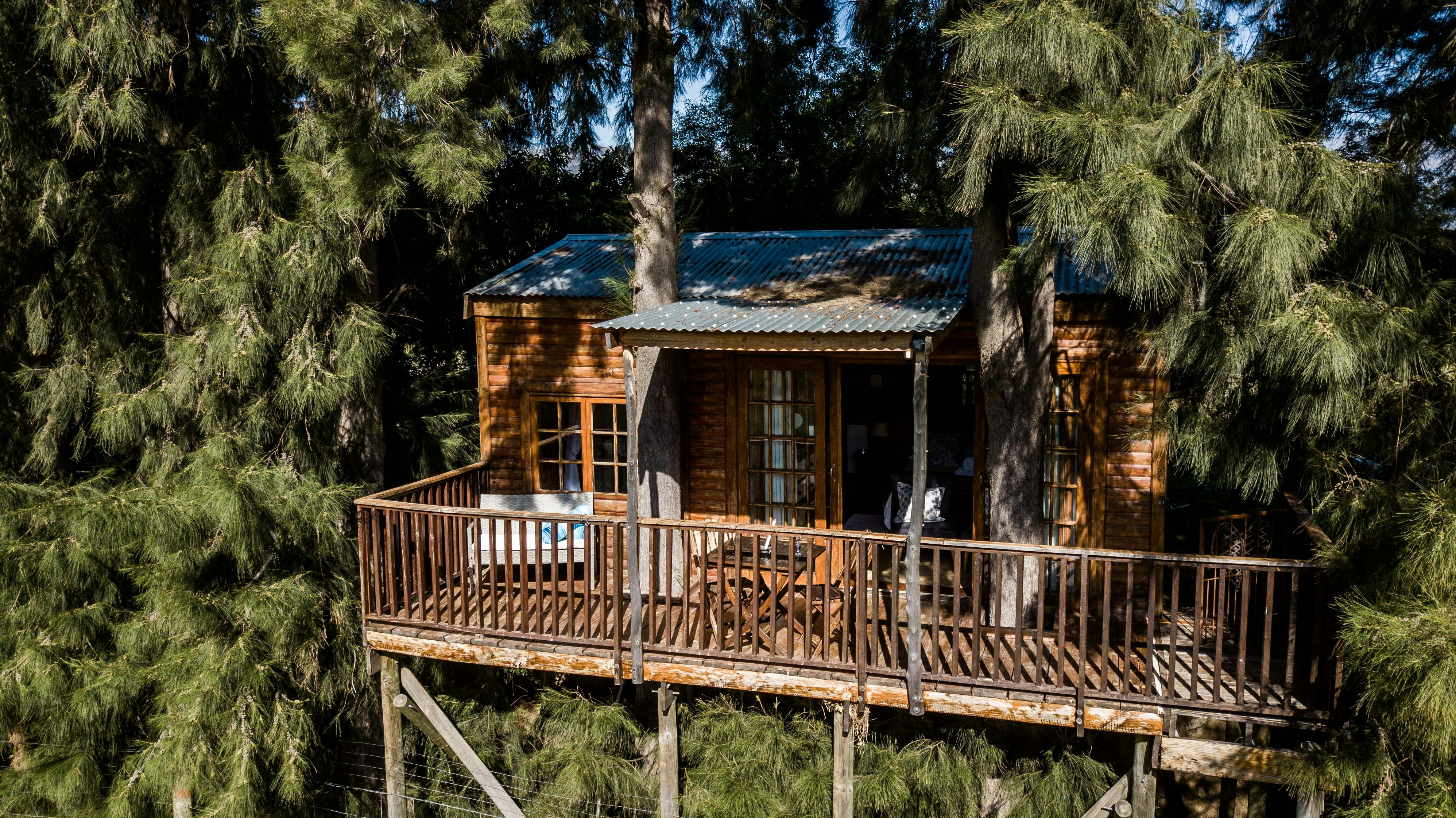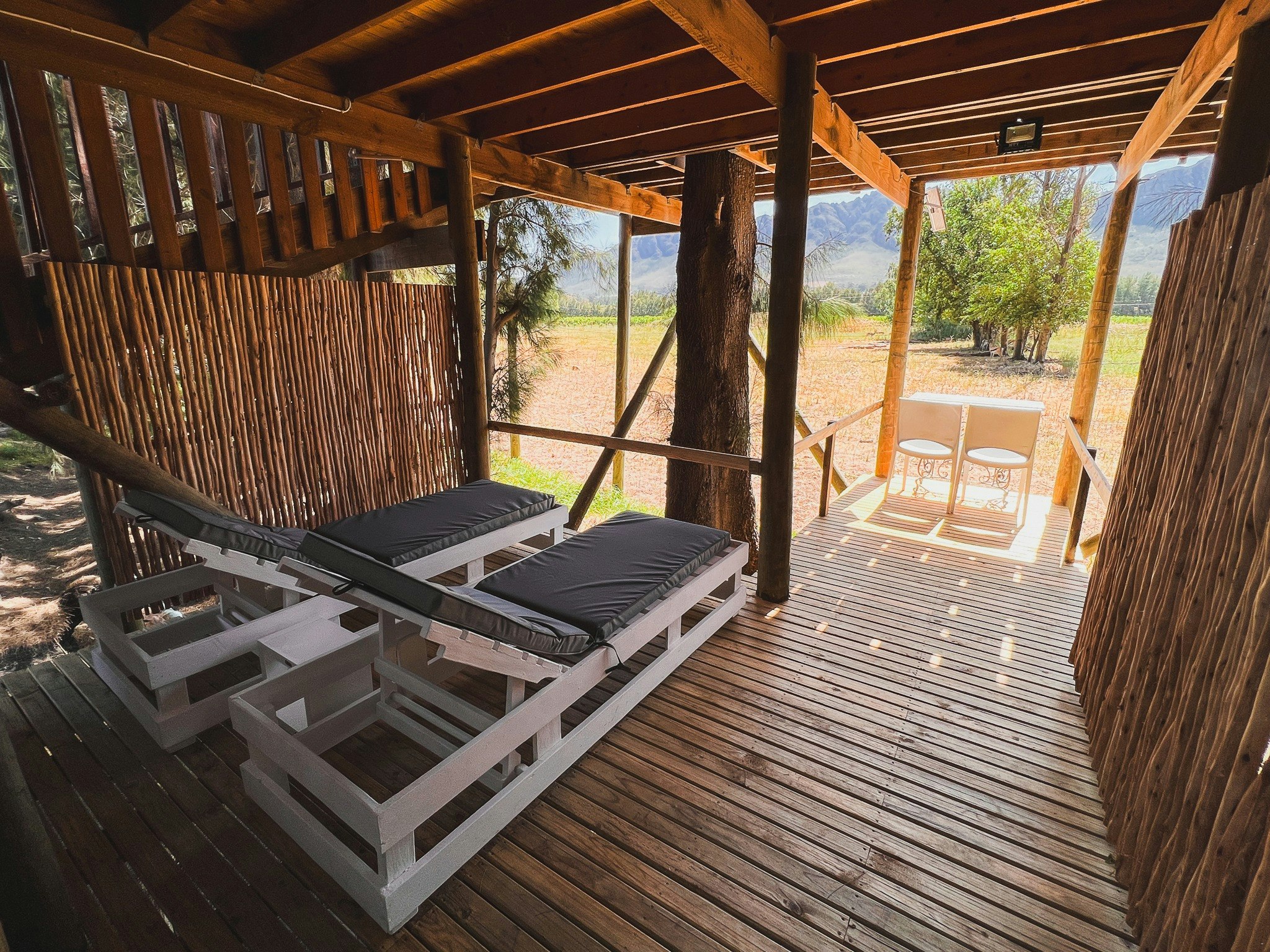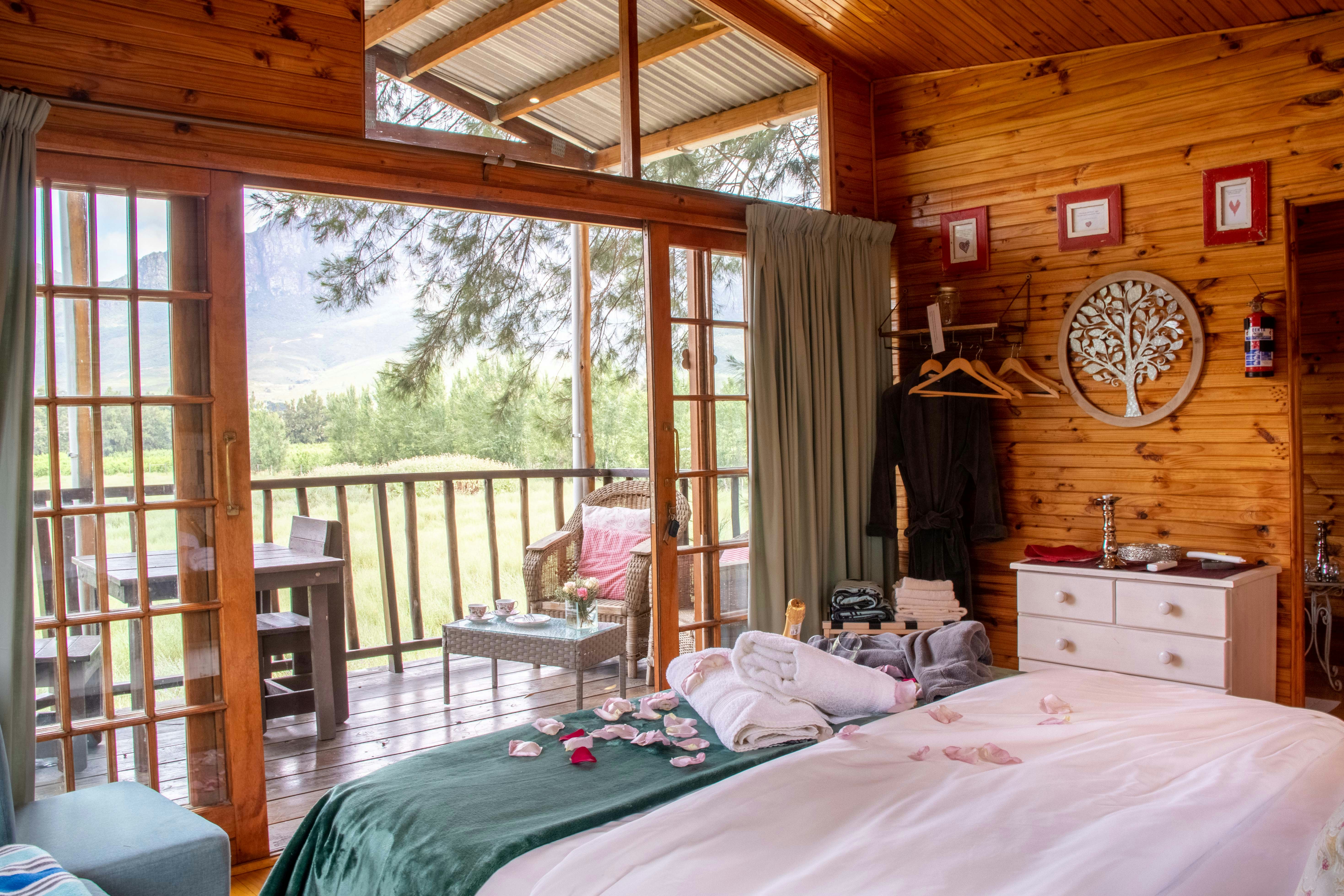 The farm boasts 4 Tree Houses, a self-catering tree lodge and rustic self-catering Cottages that sleep 2 to 4 people. You can pre-order romantic turndowns with local MCC. Picnics and braai packages are available at an additional fee. Guests can rent a bike to explore the neighbouring wine farms and do gin tastings on Saturdays. The property has a beautiful swimming pool.