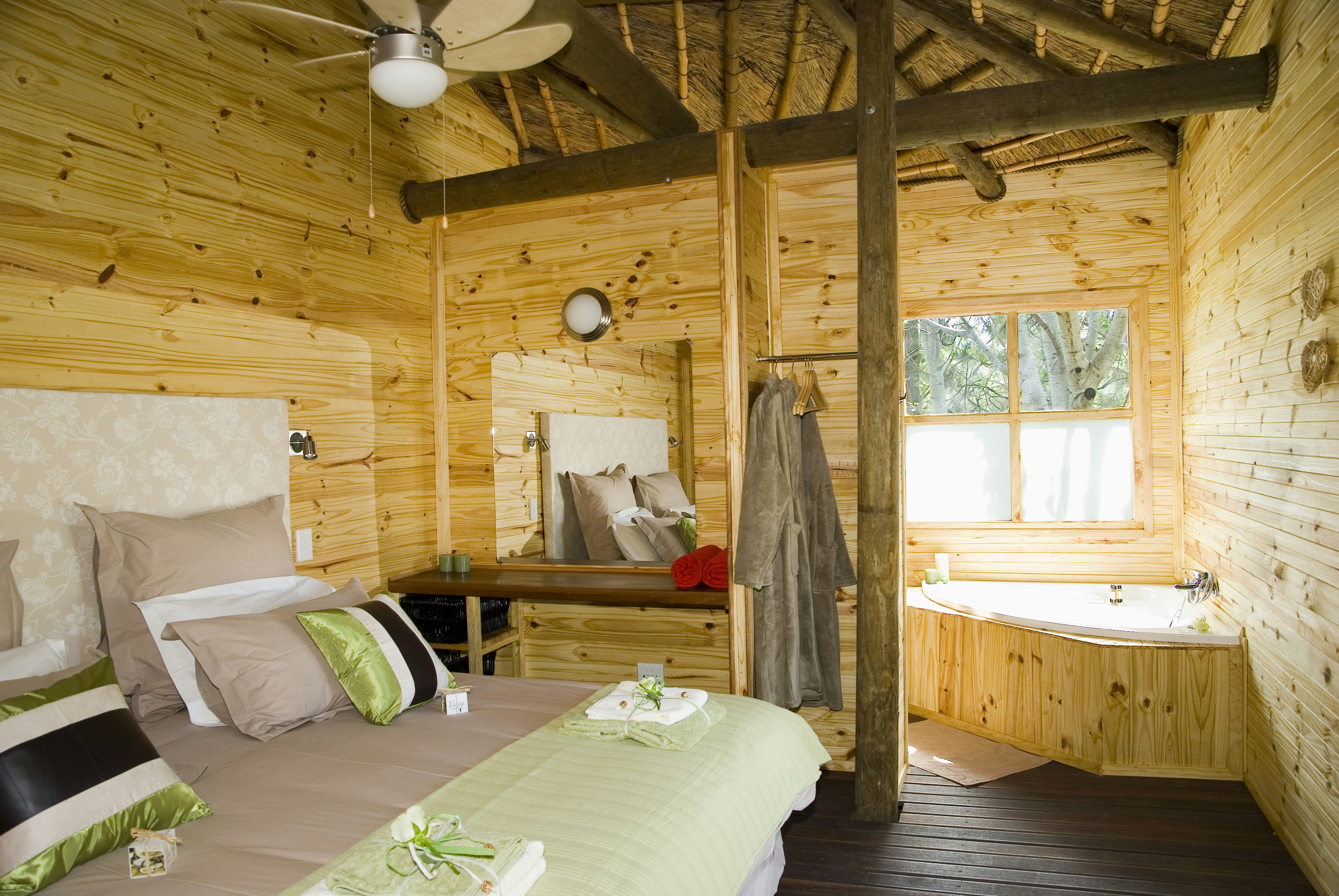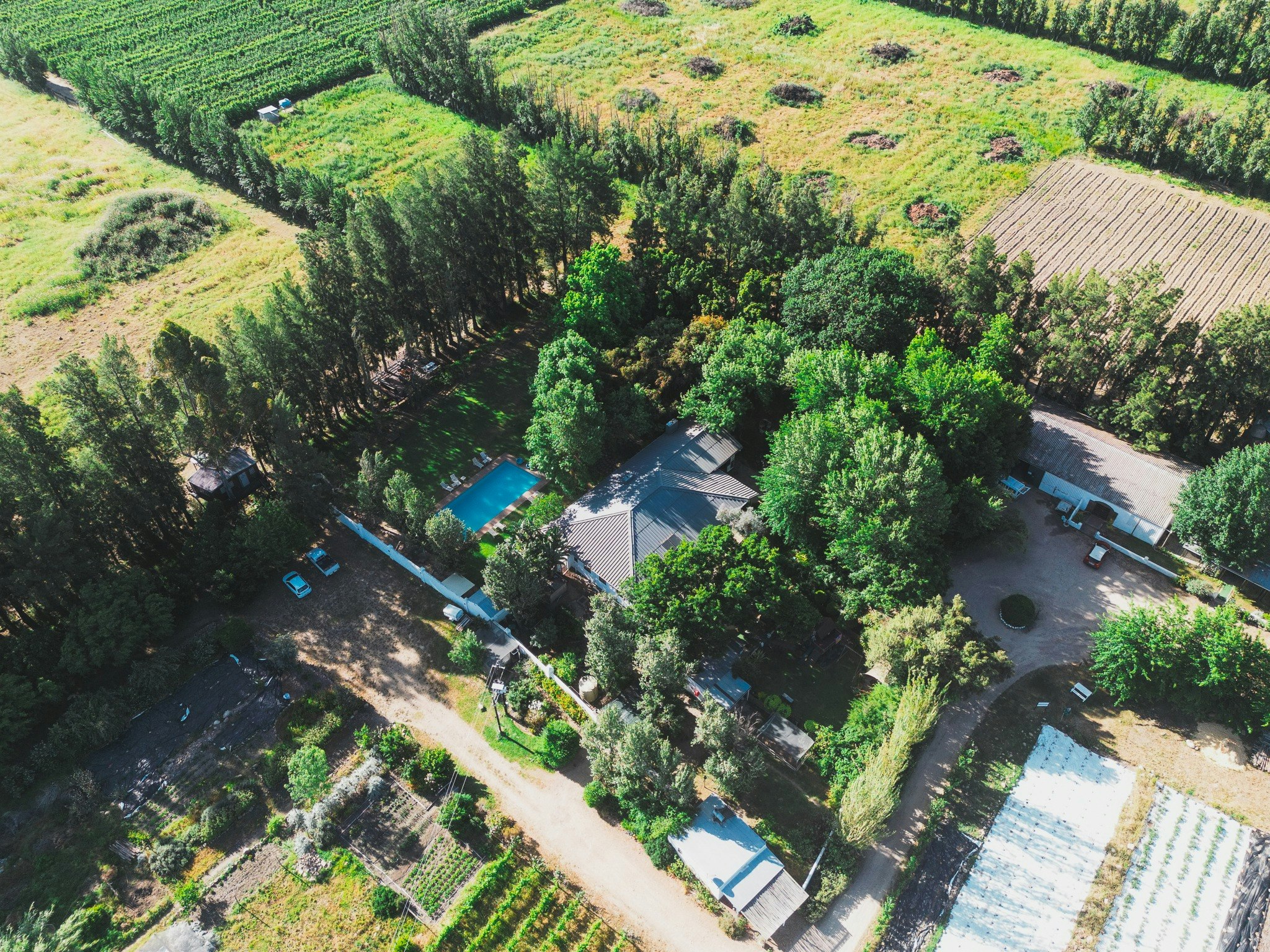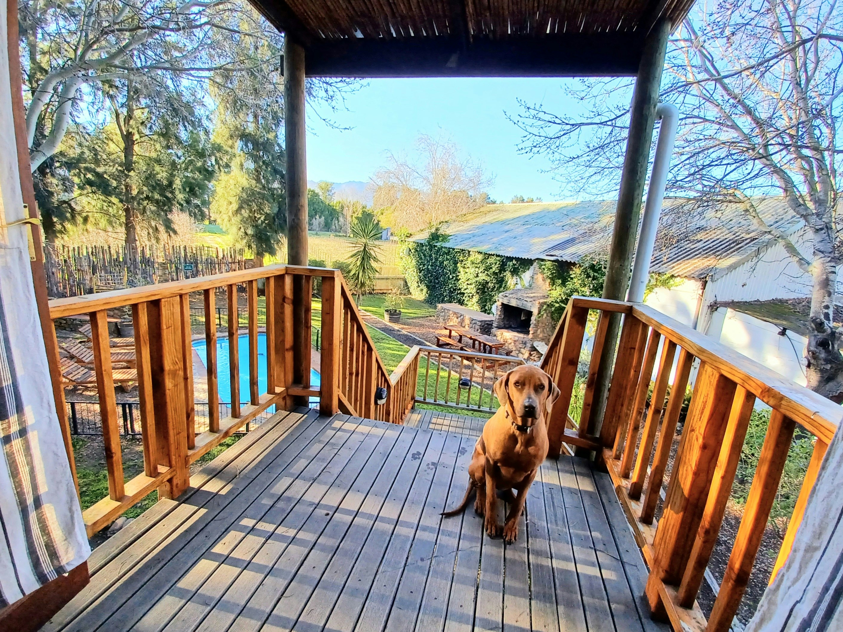 The farm boasts 4 Tree Houses, a self-catering tree lodge and rustic self-catering Cottages that sleep 2 to 4 people. You can pre-order romantic turndowns with local MCC. Picnics and braai packages are available at an additional fee. Guests can rent a bike to explore the neighbouring wine farms and do gin tastings on Saturdays. The property has a beautiful swimming pool.