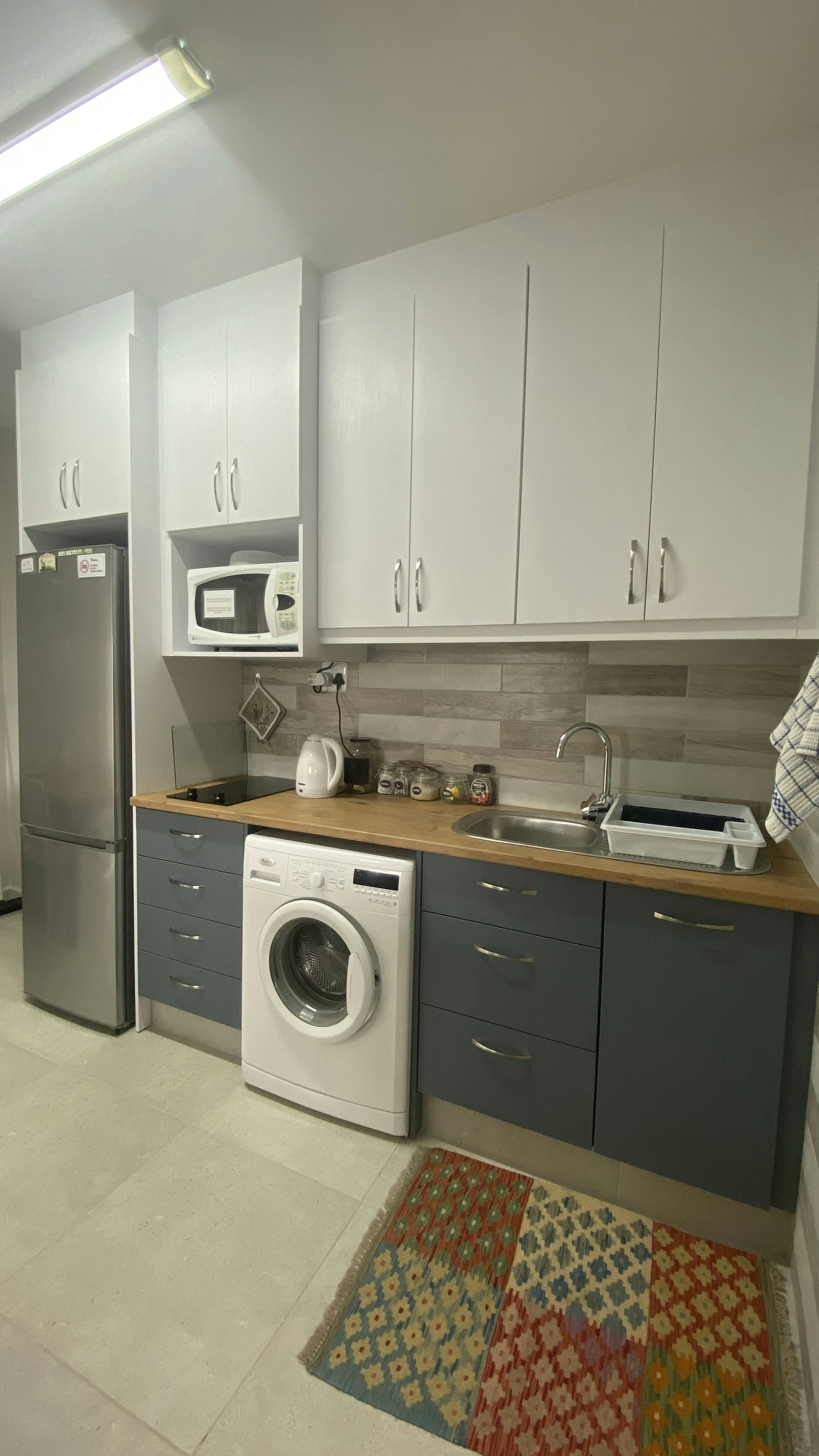 The unit can accommodate 2 adults and comprises 1 bedroom furnished with a queen-size bed and a bathroom fitted with a bath and shower. The kitchen is well-equipped with a stove, oven, fridge-freezer, microwave, washing machine, and tea-and-coffee-making facilities.