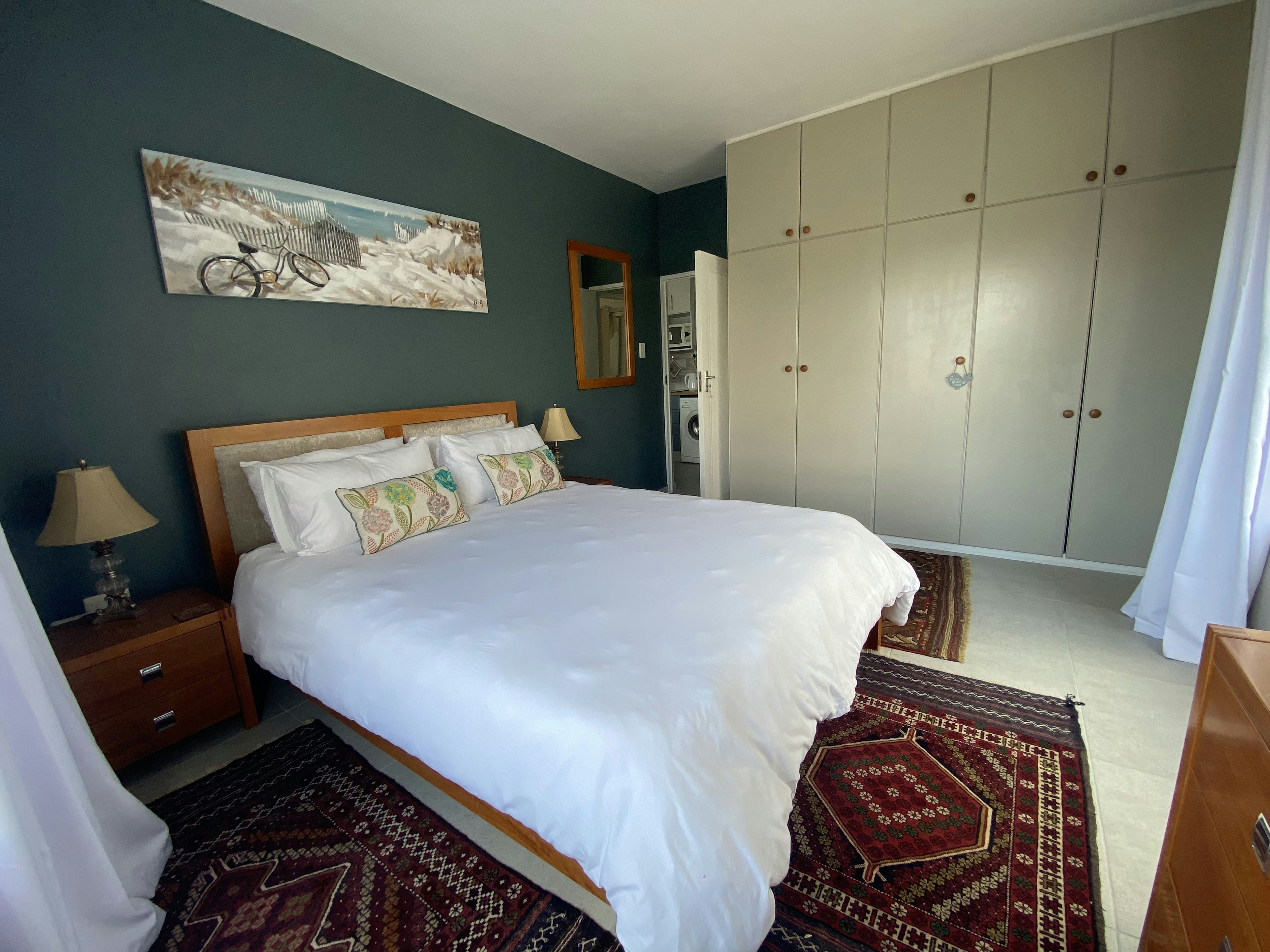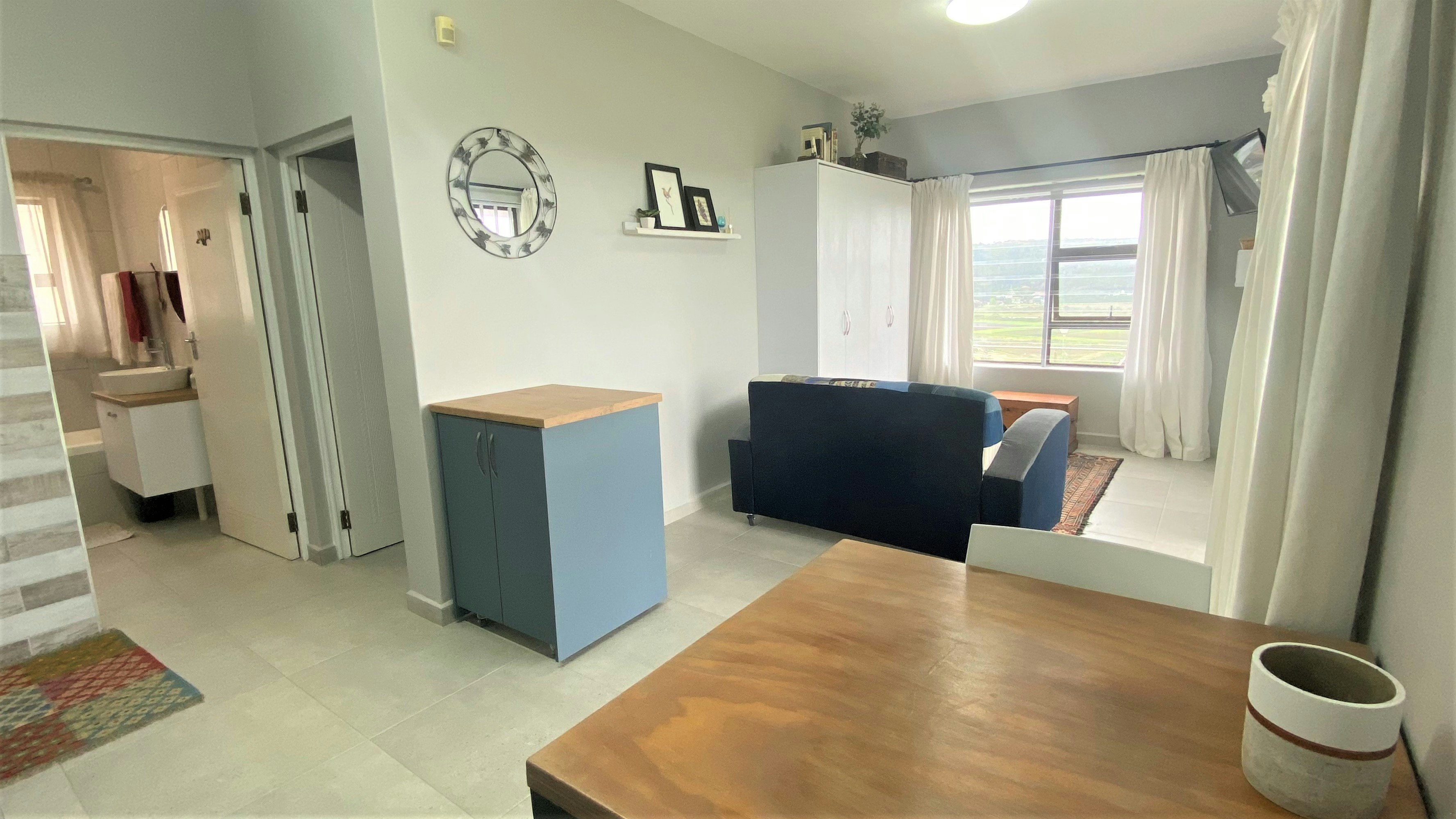The living area includes a TV with an Android multimedia device for Netflix and Amazon Prime, as well as free Wi-Fi. The veranda overlooks the river, town, and ocean, and braai facilities are available for guests’ use.