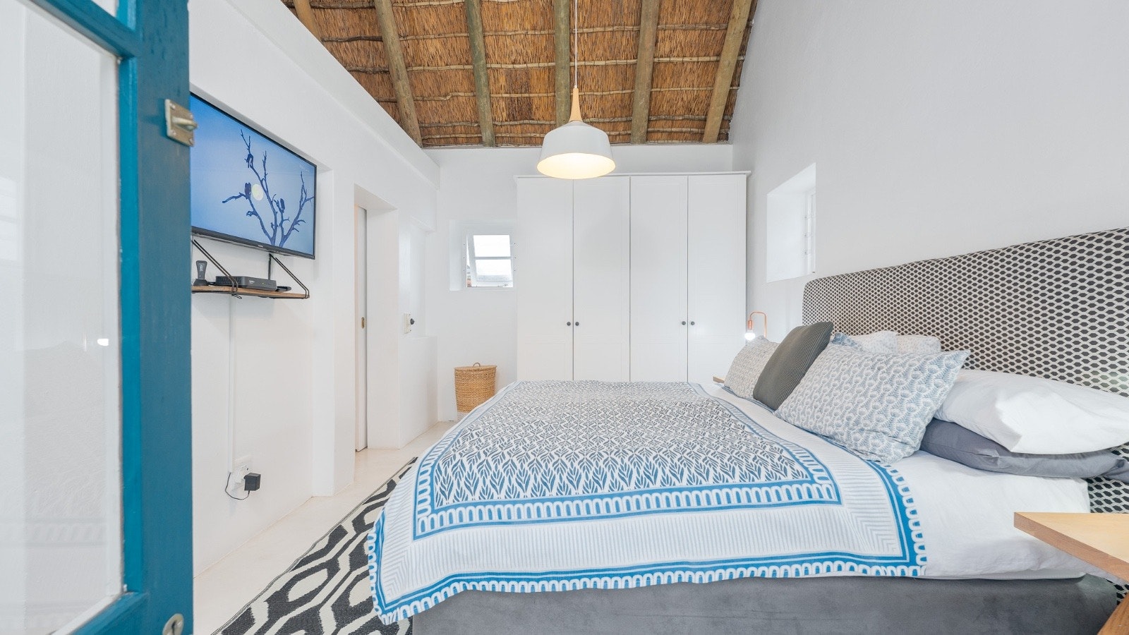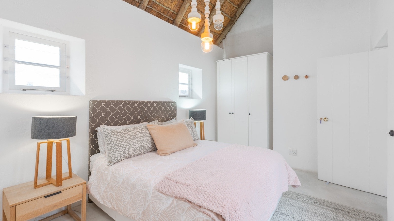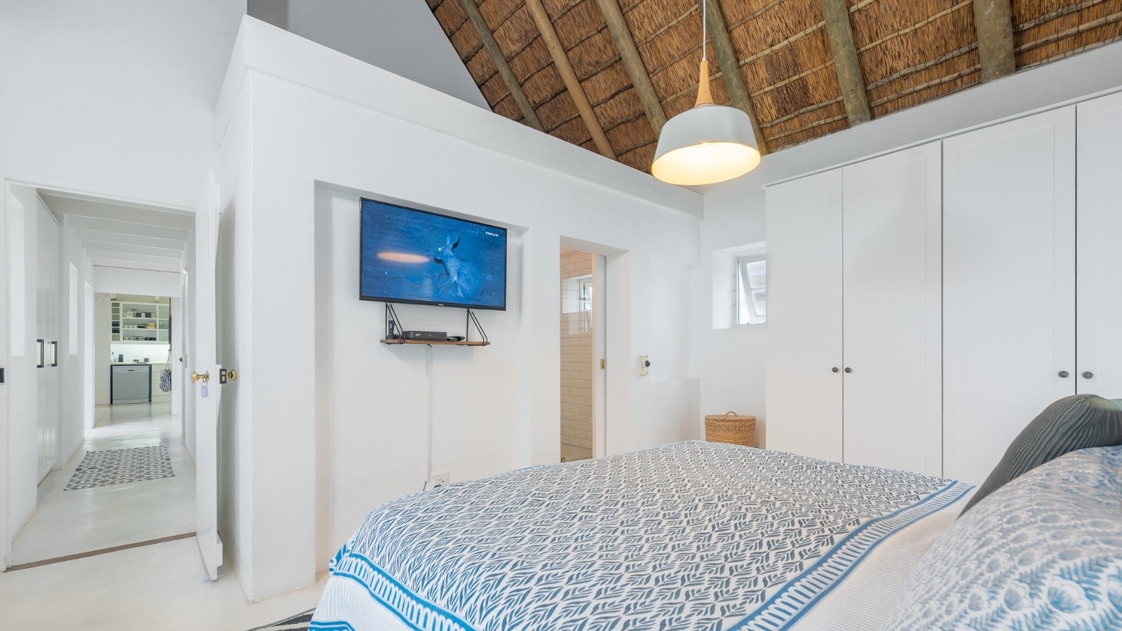 Hierdie villa bied slaapplek aan 10 gaste en beskik oor 4 slaapkamers en 3 badkamers. Die hoofslaapkamer het 'n koninggrootte-bed en 'n en suite-badkamer met 'n bad en 'n stort. Die tweede slaapkamer het 'n koningingrootte-bed en 'n en suite-badkamer met 'n stort. Die derde slaapkamer het 2 enkelbeddens en die solderarea het 4 enkelbeddens. Die derde badkamer het 'n stort, toilet en 'n wasbak. Gehaltelinne word voorsien, maar gaste moet hul eie handdoeke saambring.