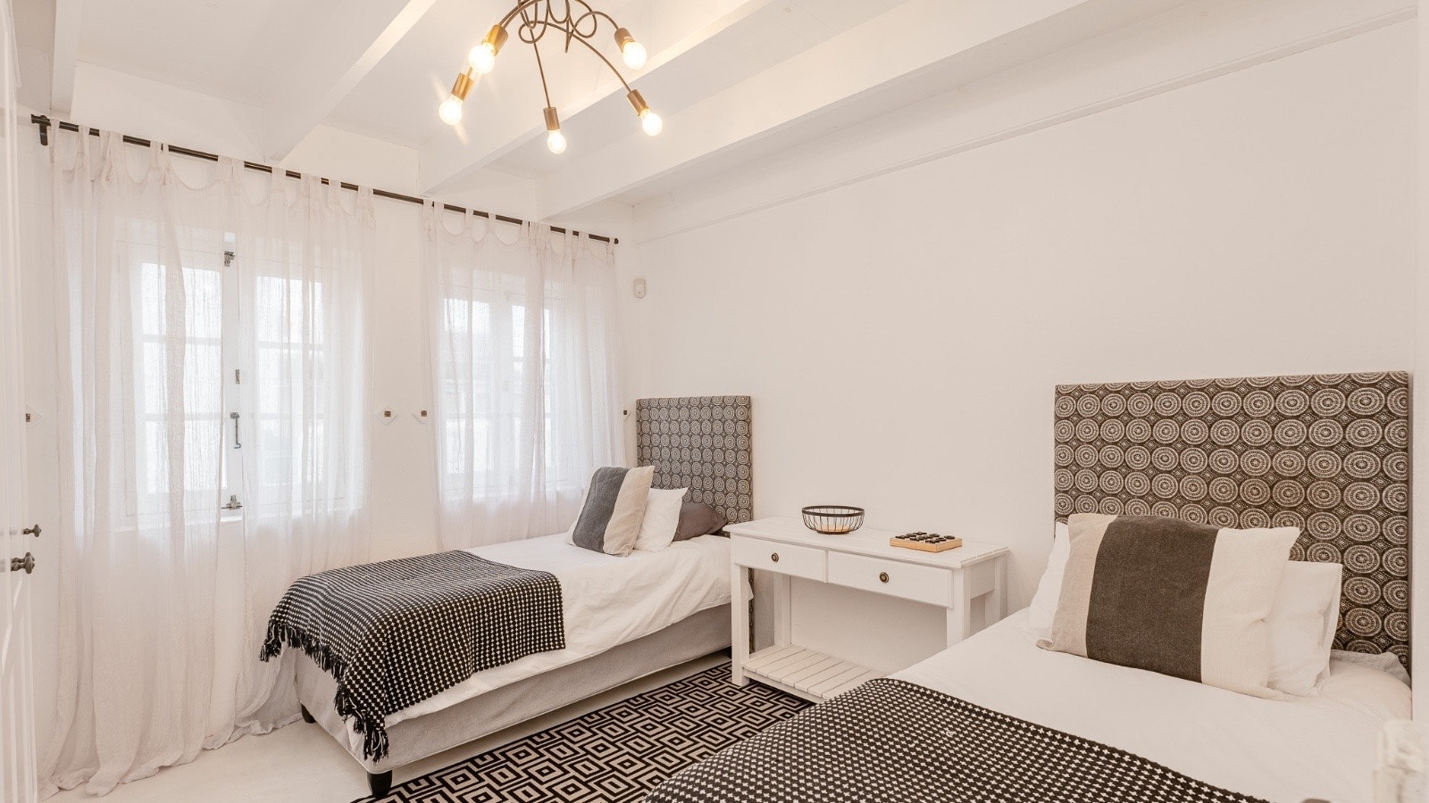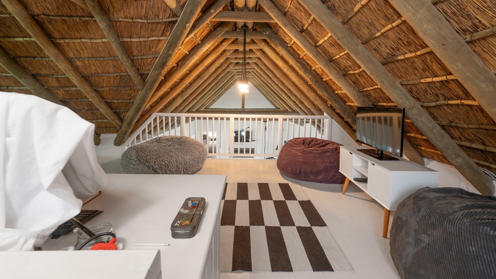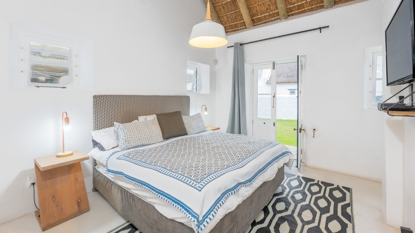 Hierdie villa bied slaapplek aan 10 gaste en beskik oor 4 slaapkamers en 3 badkamers. Die hoofslaapkamer het 'n koninggrootte-bed en 'n en suite-badkamer met 'n bad en 'n stort. Die tweede slaapkamer het 'n koningingrootte-bed en 'n en suite-badkamer met 'n stort. Die derde slaapkamer het 2 enkelbeddens en die solderarea het 4 enkelbeddens. Die derde badkamer het 'n stort, toilet en 'n wasbak. Gehaltelinne word voorsien, maar gaste moet hul eie handdoeke saambring.
