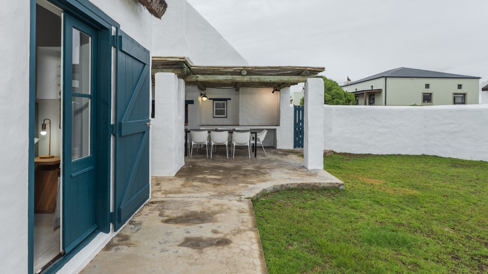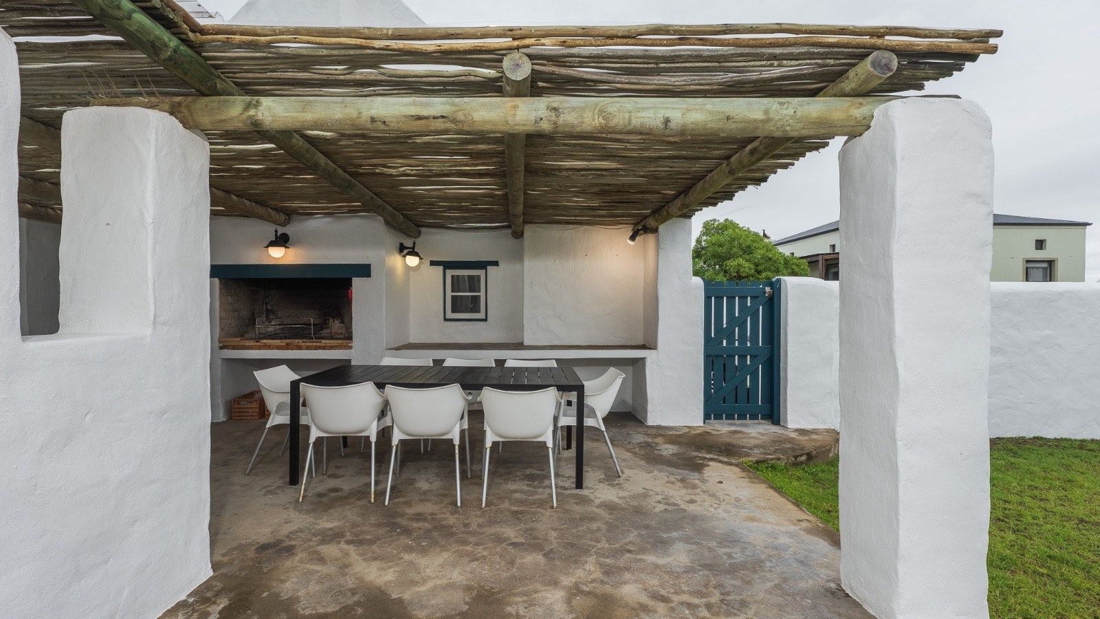 Die solderarea het 'n kuier-area met gemaklike sitplek en 'n TV. Buite is daar 'n onderdakbraai-area met 'n etenstafel.