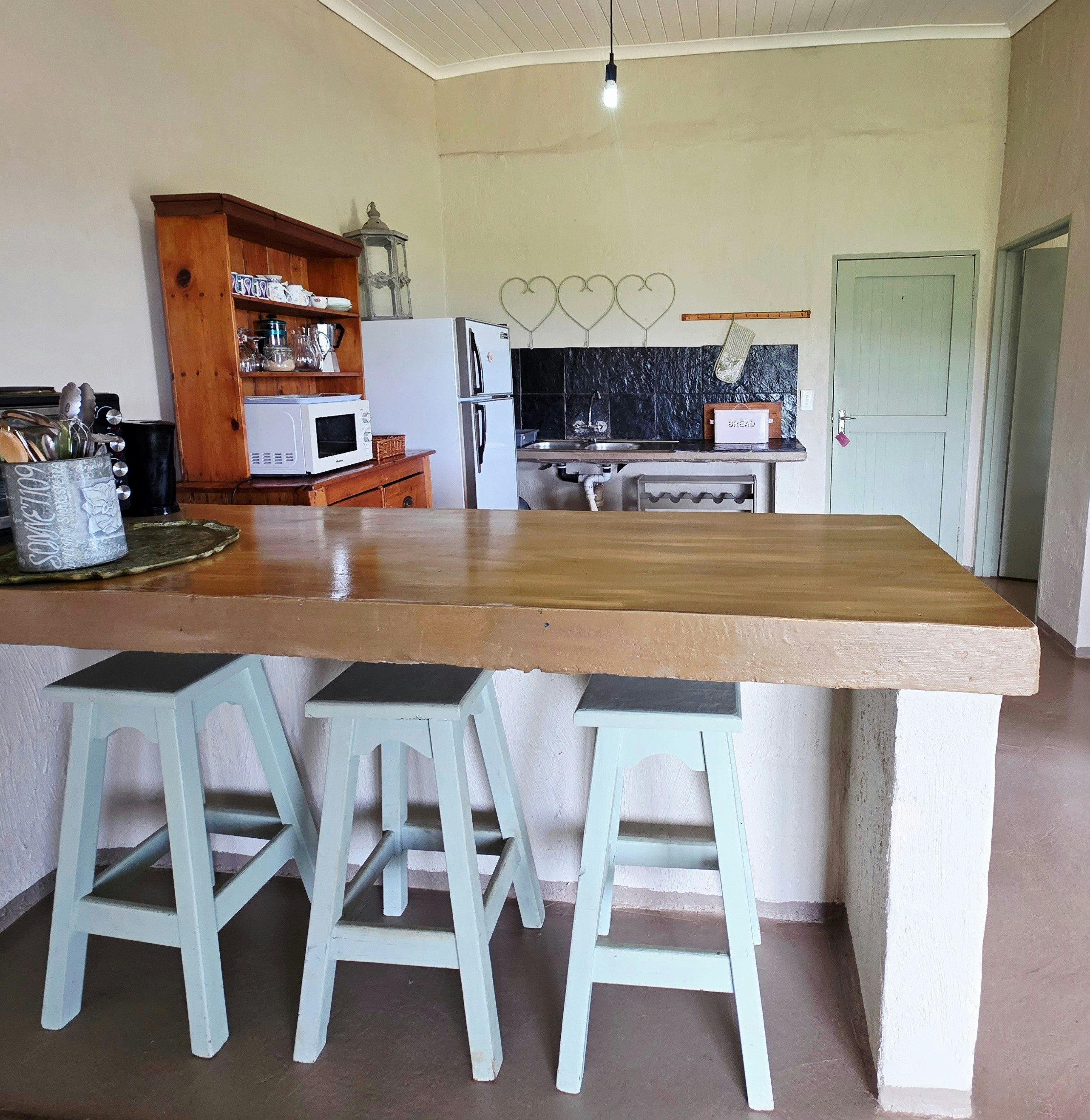 Die kothuis bestaan uit 'n ruim slaapkamer met twee koningingrootte beddens, met deure wat oopmaak na 'n patio met 'n uitsig. Die en suite-badkamer is toegerus met 'n stort, toilet en wasbak. 'n Kleiner aangrensende kamer is ingerig met 'n stapelbed, en 'n aparte gastetoilet is beskikbaar langs die leefarea.