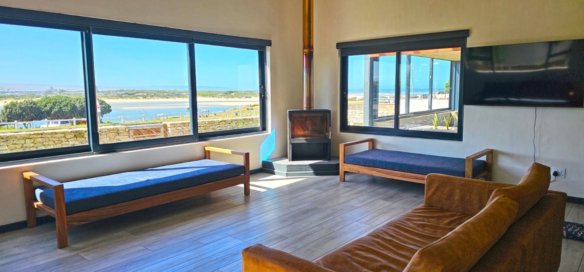 Guests can enjoy an indoor braai area with a dining table and in the front of the house, there is an undercover patio and a balcony, each with unspoiled views of the lagoon. Secure parking is available on the premises. Local amenities such as shops and restaurants are within close proximity, with Hulle ‘by die see’ situated right across the street. Skulpiesbaai Nature Reserve is approximately 2.7 km away where guests can enjoy the Ancient Fish Traps and Stilbaai Heritage Routes.