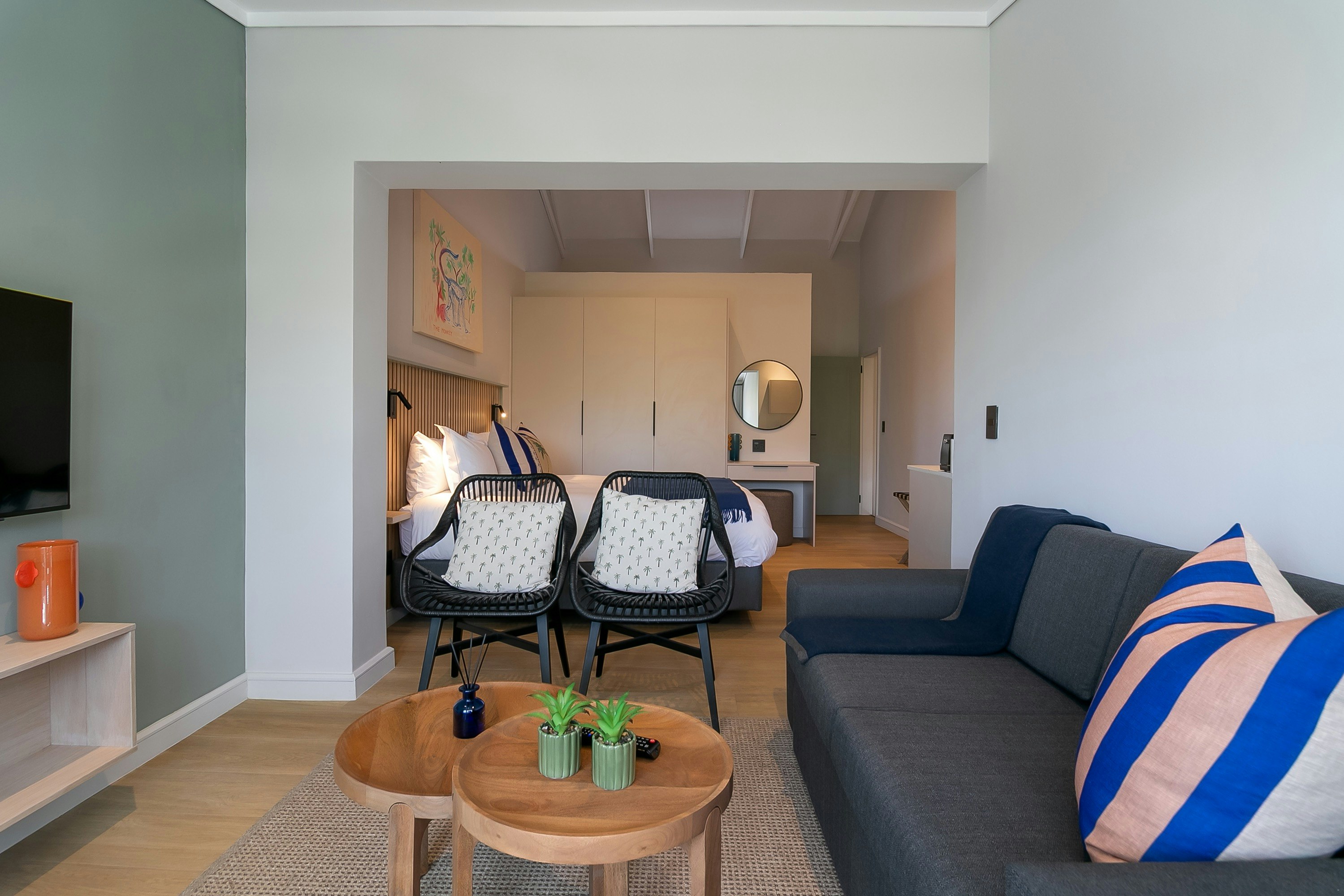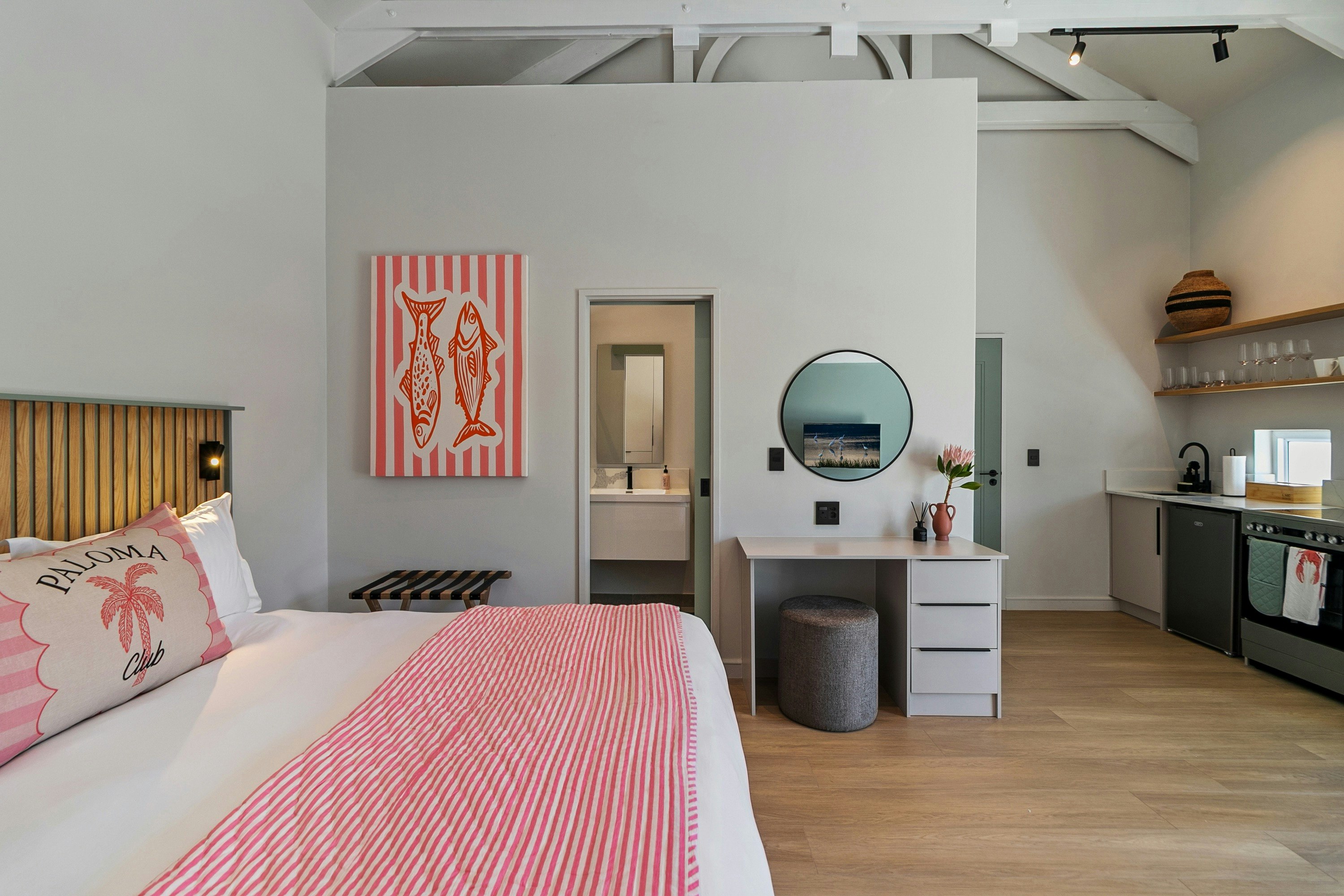 Accommodation is offered in 4 well-appointed rooms, each accommodating 2 guests. Every room features a comfortable bed, an en-suite bathroom, a private kitchenette, a TV, and free Wi-Fi. Each unit opens onto its own private balcony, allowing guests to enjoy the peaceful island surroundings.