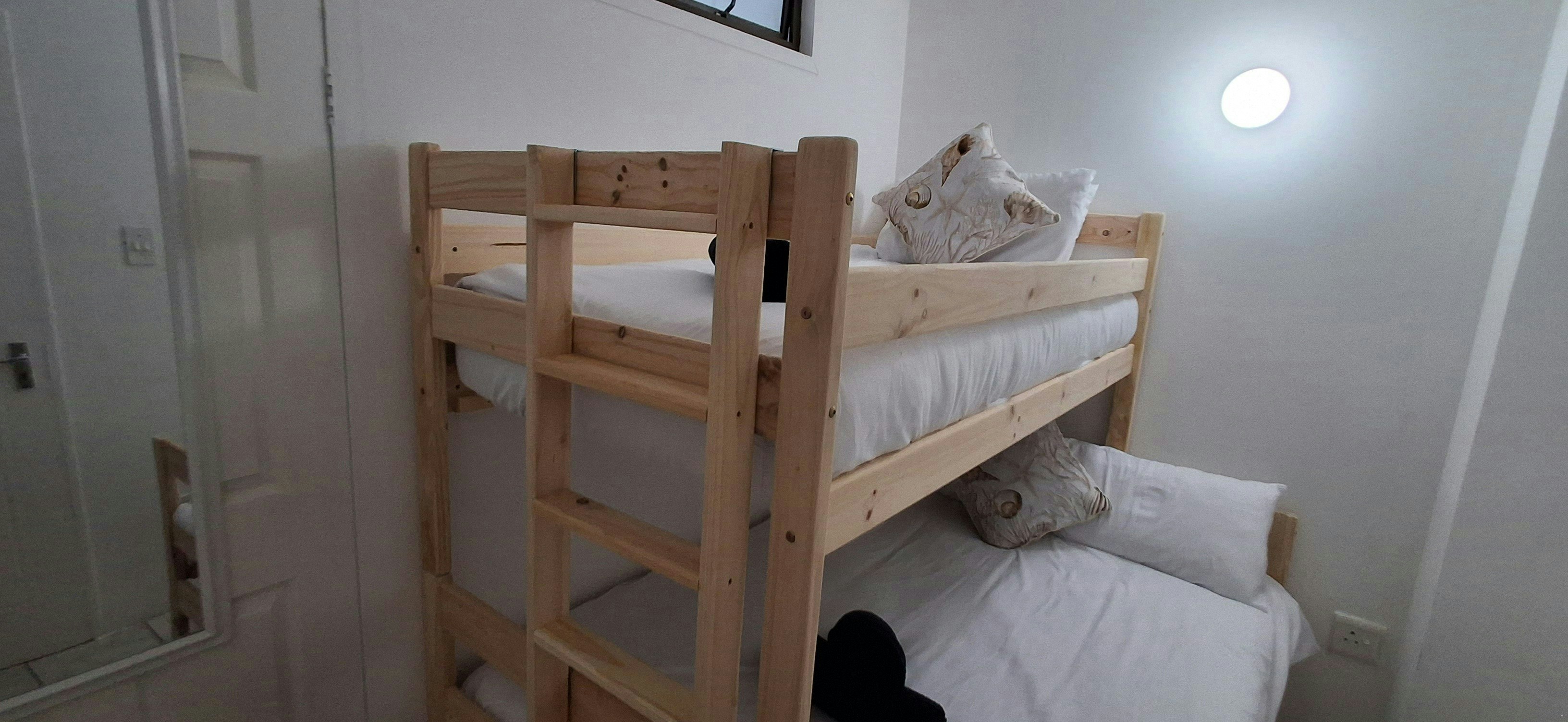 This unit can accommodate up to 5 guests and comprises 2 bedrooms and 1 bathroom. The main bedroom is furnished with a queen-size bed. The second bedroom contains a tri-bunk bed. Guests share a bathroom fitted with a shower, washbasin, and toilet.