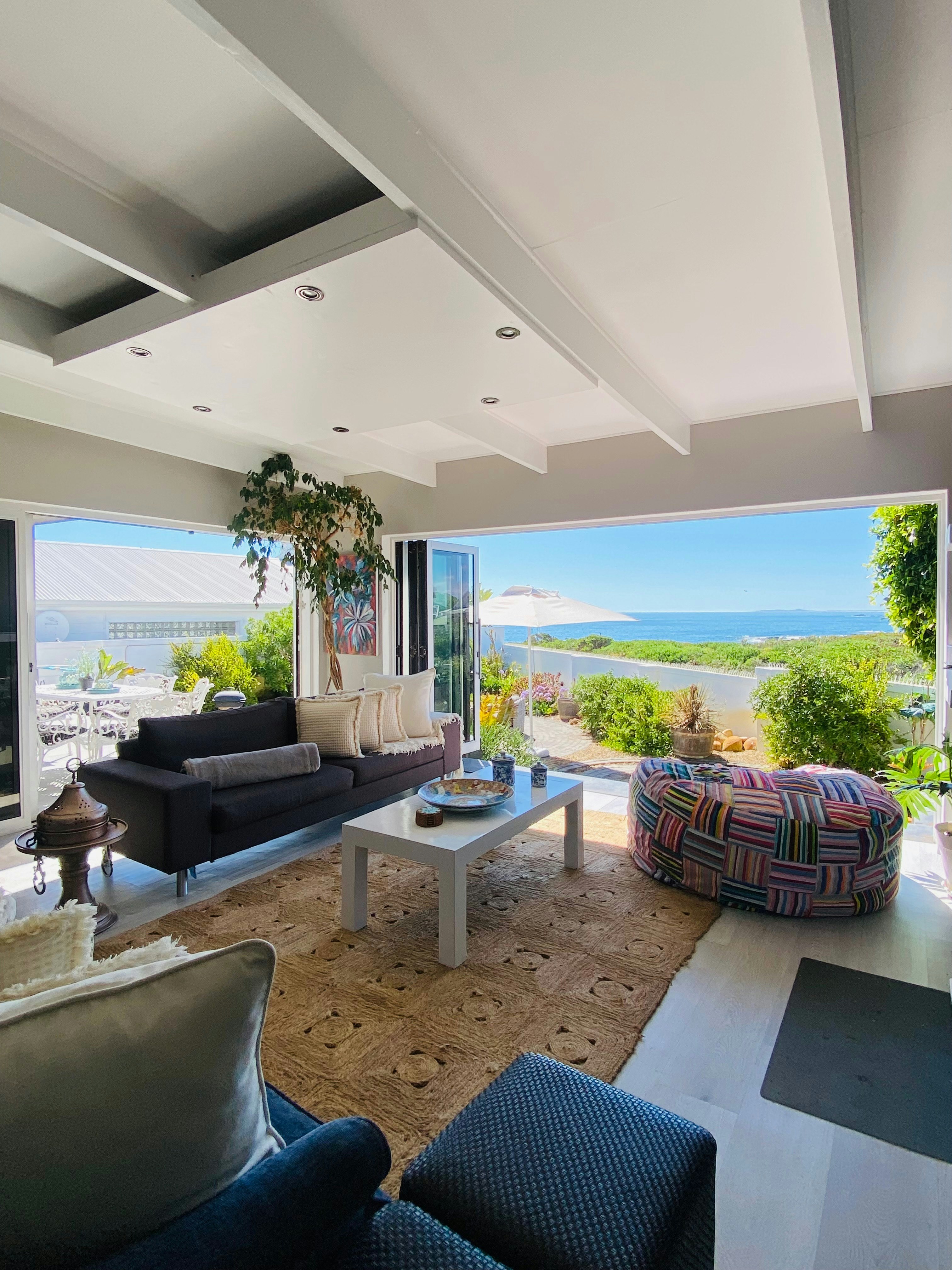 The elevated design of the home enhances the sense of openness, allowing for panoramic coastal views that stretch all the way to Yzerfontein. This strategic positioning maximises the natural light and breeze and also ensures that the indoor braai/BBQ area seamlessly connects to both the sheltered courtyard and adjacent greenbelt, offering uninterrupted vistas and a true sense of tranquillity