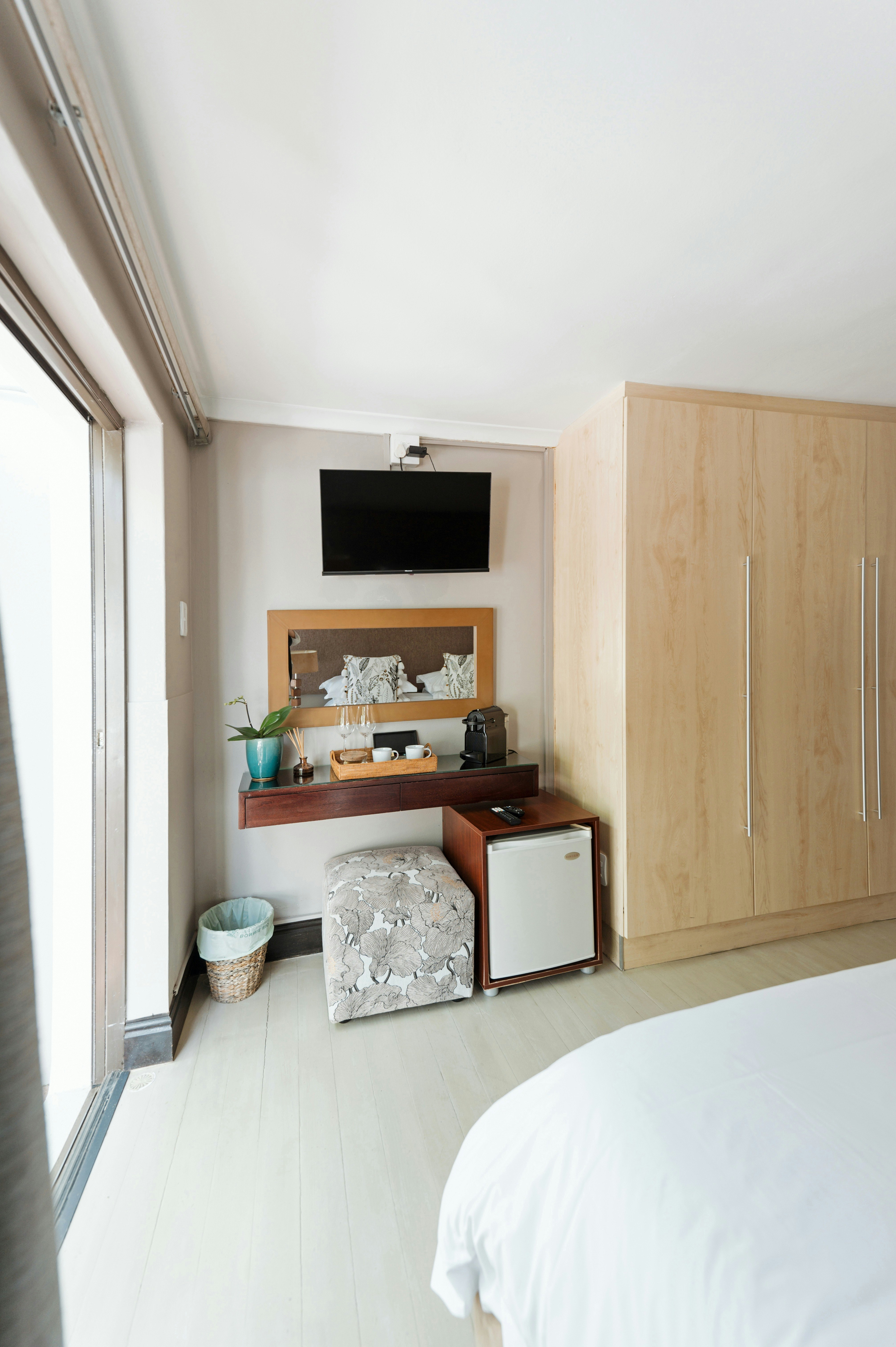 The guest house features five stylish, air-conditioned rooms, each with a private bathroom, balcony or terrace, and select rooms offering sea views and bathtubs. All rooms include a flat-screen TV, Nespresso machine, kettle, fridge, minibar, safe, bed linen, and towels (including for the pool).