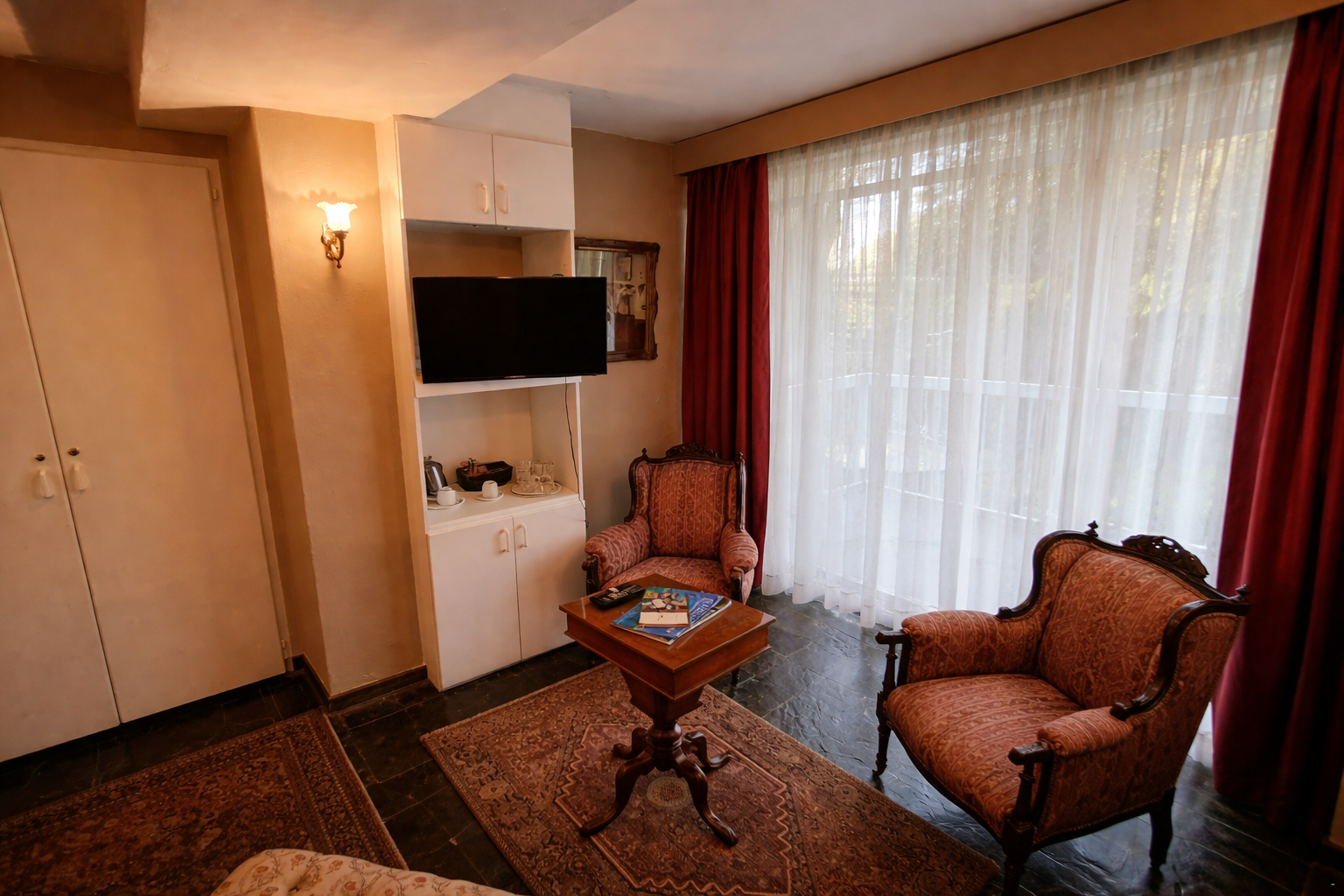 Accommodation is offered in 12 luxuriously spacious Victorian-style en-suite guest rooms. Each room features a comfortable bed and an en-suite bathroom. Linen and bath towels are provided. Each room also includes a seating area, a smart TV with streaming channels, complimentary Wi-Fi, and tea-and-coffee-making facilities.