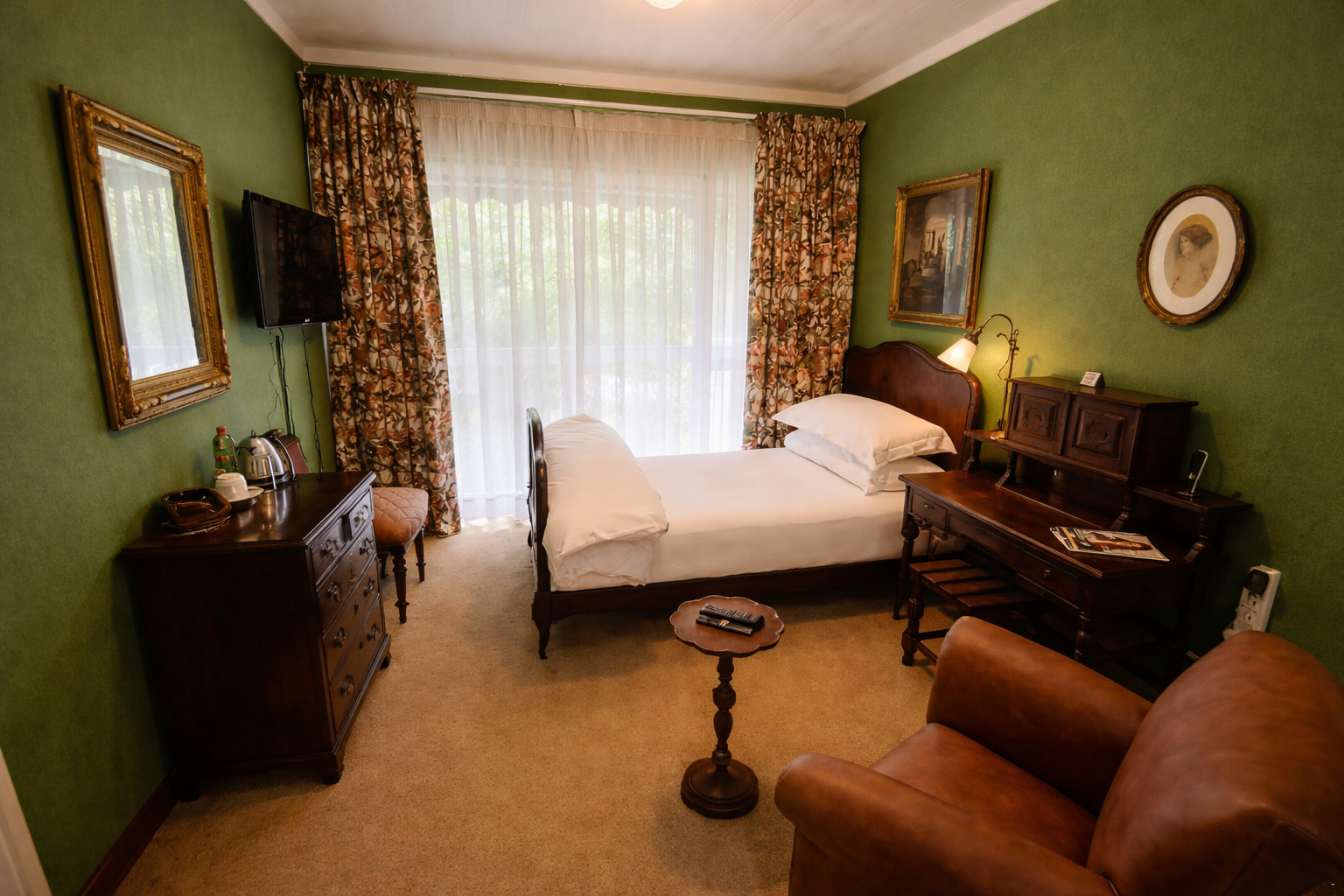 Accommodation is offered in 12 luxuriously spacious Victorian-style en-suite guest rooms. Each room features a comfortable bed and an en-suite bathroom. Linen and bath towels are provided. Each room also includes a sitting area, a smart TV with streaming channels, free Wi-Fi, and tea-and-coffee-making facilities.