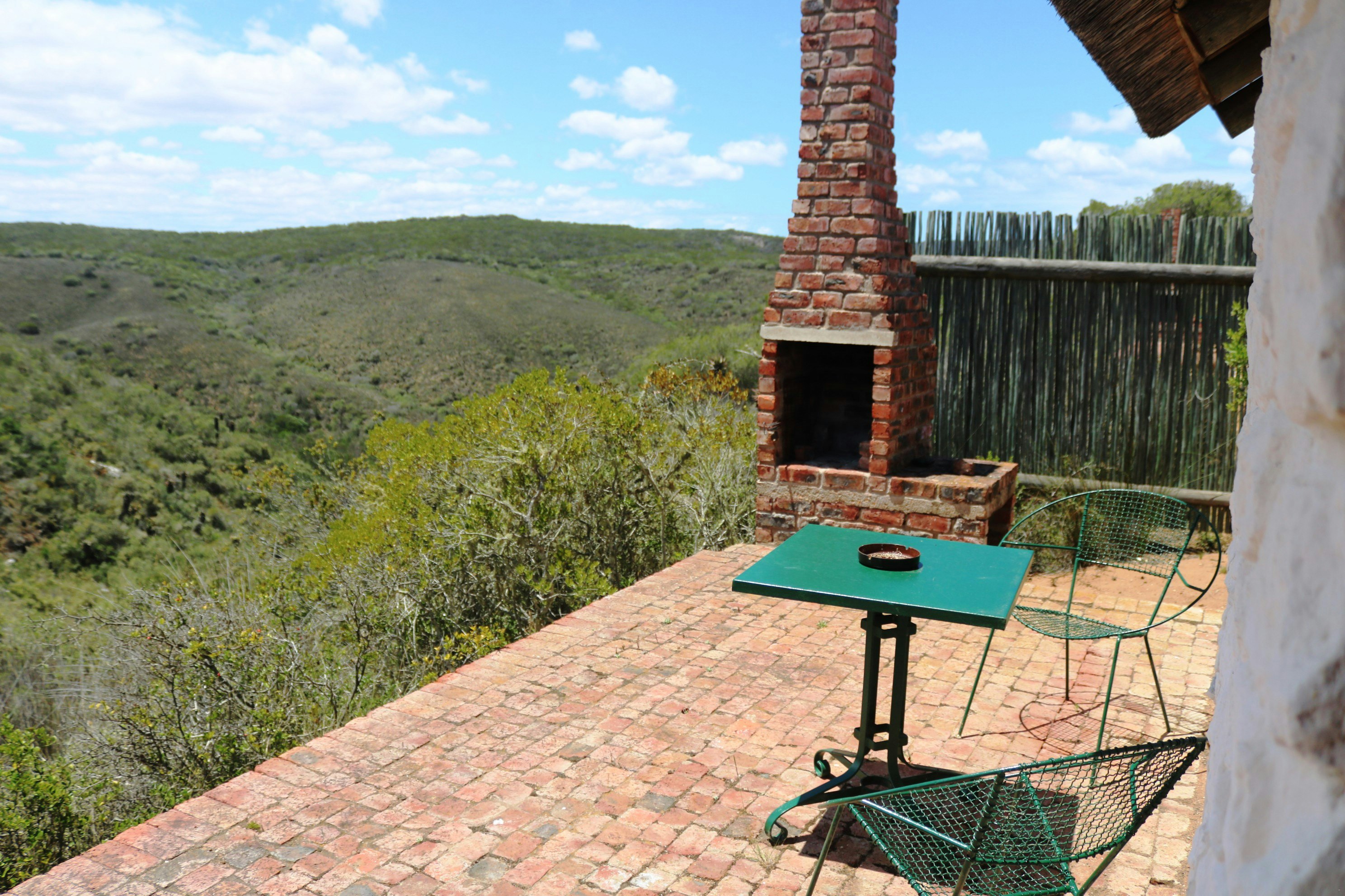 The Charming Cottage is furnished with 2 single beds and the en-suite bathroom is fitted with a shower. The kitchen is equipped with a gas hob as well as tea-and-cofee-making facilities. There is an electric fridge nearby. Please note that there is no electricity, however, oil lamps and candles are provided for lighting. This cottage features an indoor fireplace and outdoor braai facilities. The cottage has lovely views over the valley.