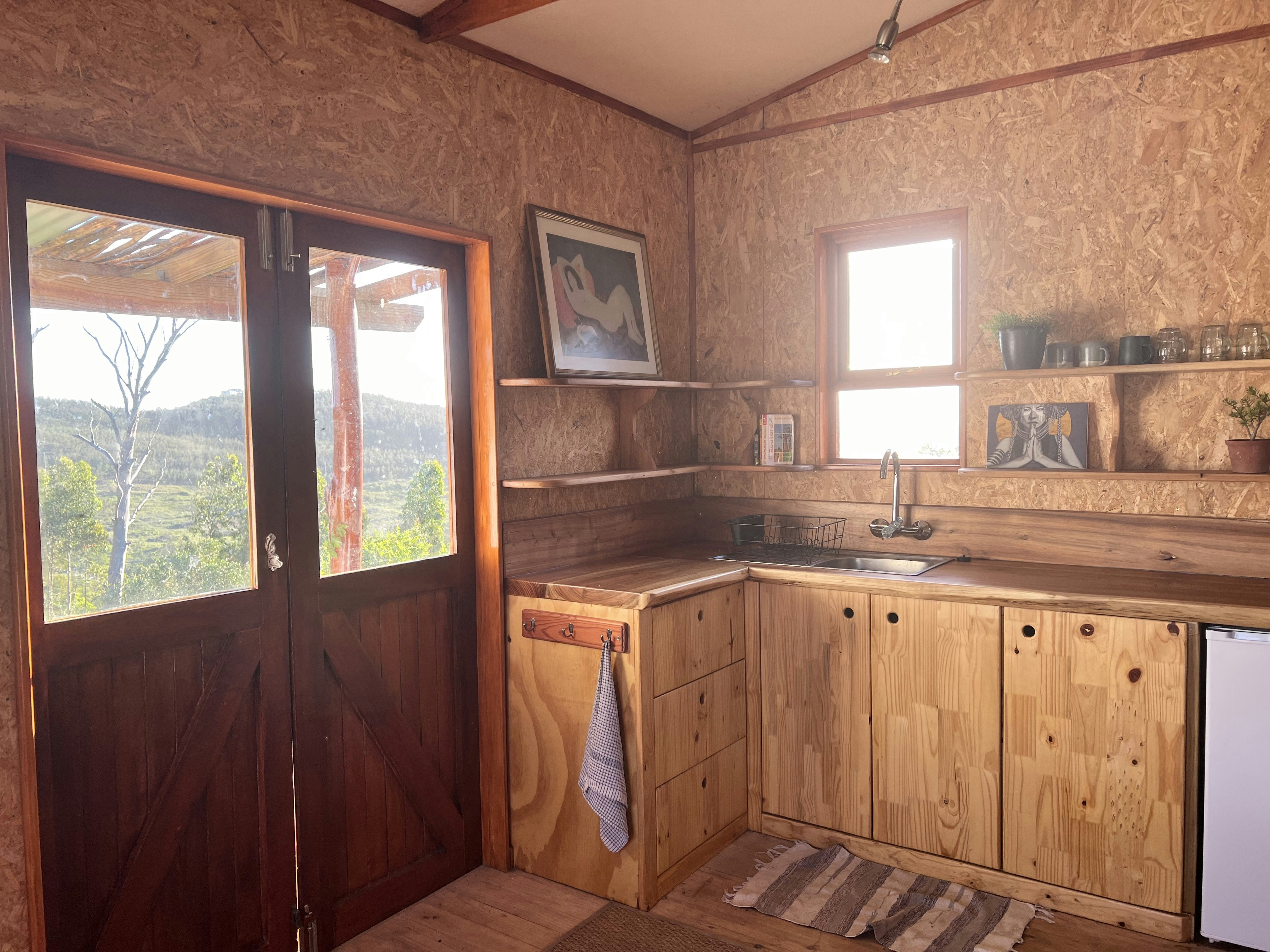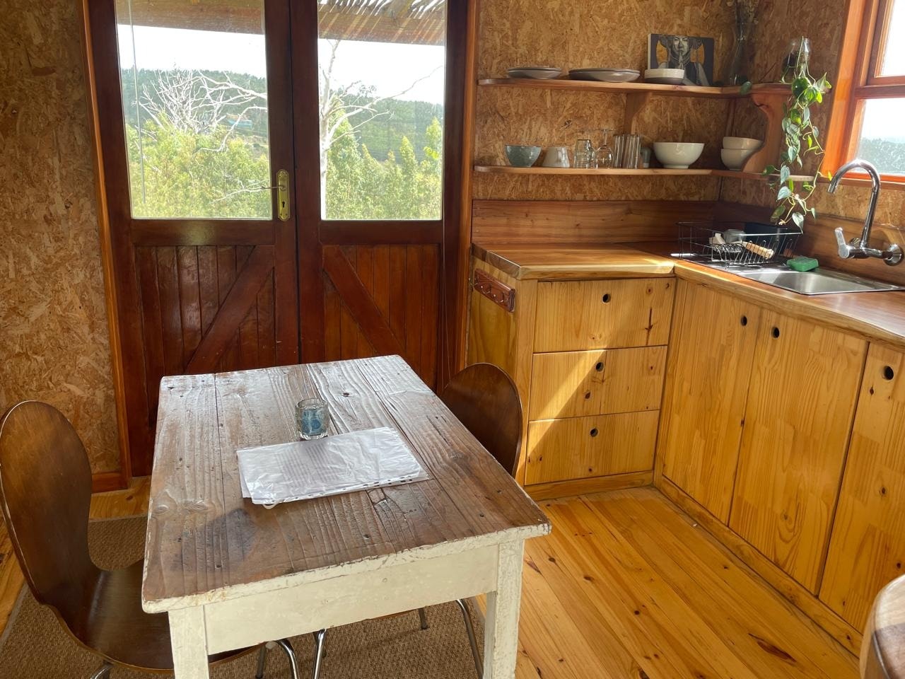 Die eenheid het slaapplek vir 2 gaste en is ingerig met 'n dubbelbed met plek vir 'n ekstra enkelbed. Die buitebadkamer het 'n stort, wasbak en kompostoilet. Die kombuisie is toegerus met 'n yskassie, 'n tweeplaatstoof, eetgerei, breekware en 'n ketel. Gratis WiFi is ook beskikbaar. Die eenheid bied toegang tot 'n balkon wat oor die tuin uitkyk. Daar is 'n dam langs die eenheid, omring deur vrugtebome. Gaste het toegang tot braaigeriewe en veilige parkeerplek. Doendinge sluit voetslaan, bergfietsry en swem in die dam in.