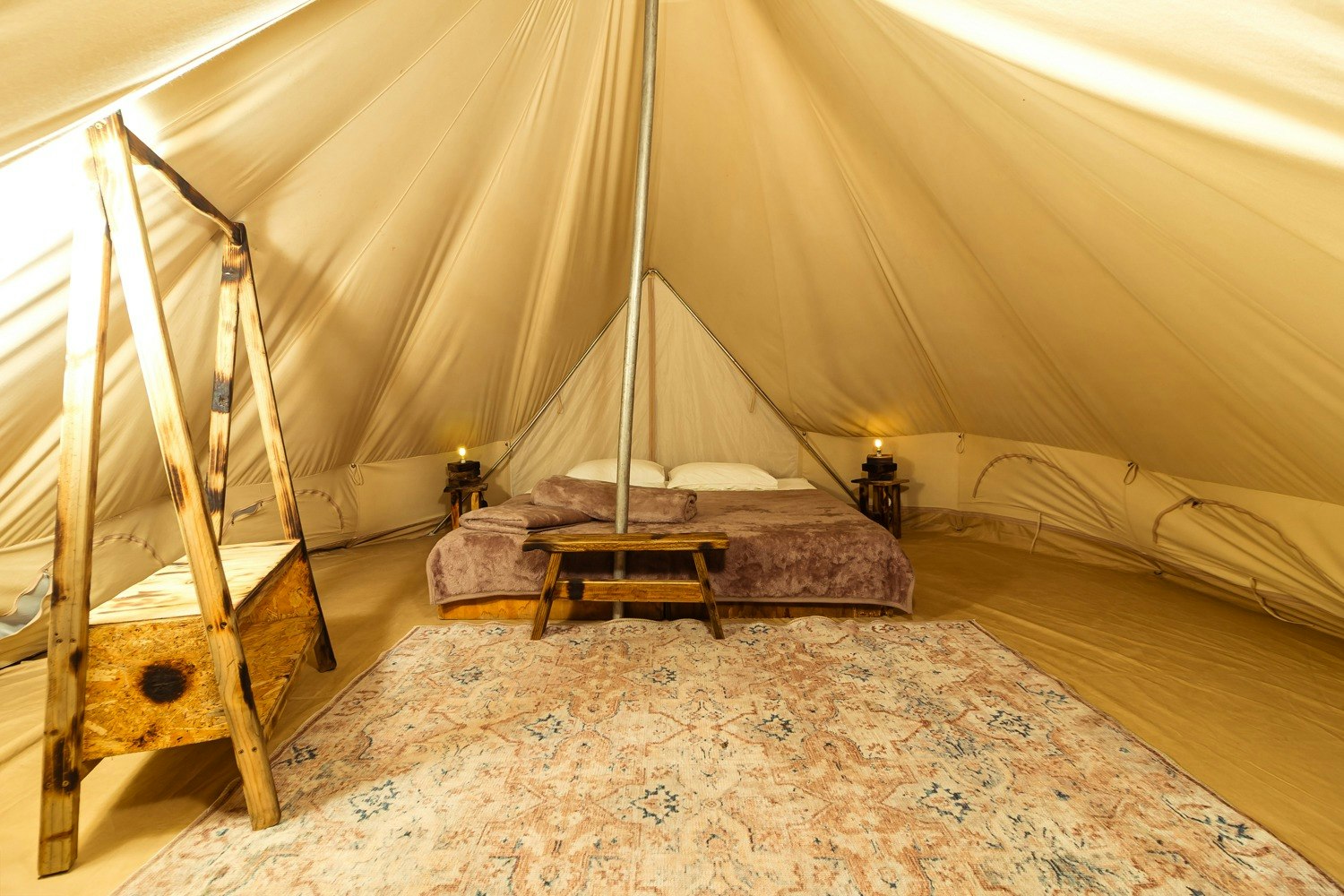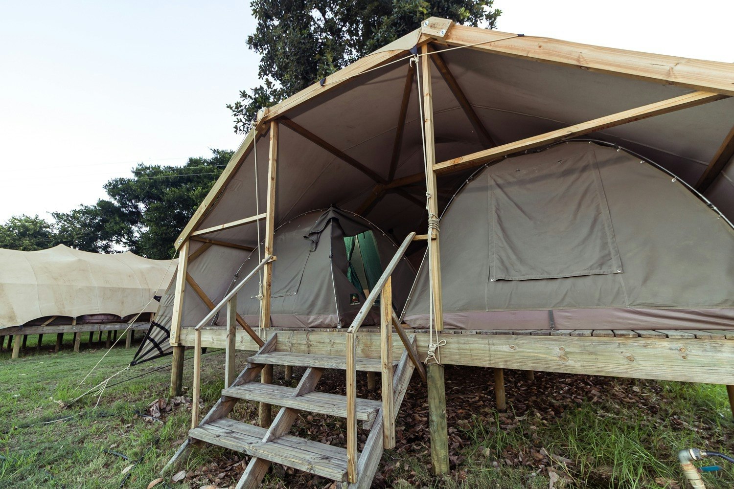 Die kampterrein beskik oor 8 ruim tente wat elk tot 6 gaste akkommodeer. Elke tent sluit 'n leef- en eetarea in, asook 'n kombuisie wat toegerus is met 'n yskas-vrieskas, tweeplaatstoof, ketel en broodrooster.