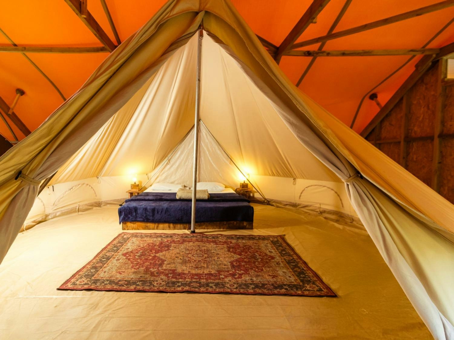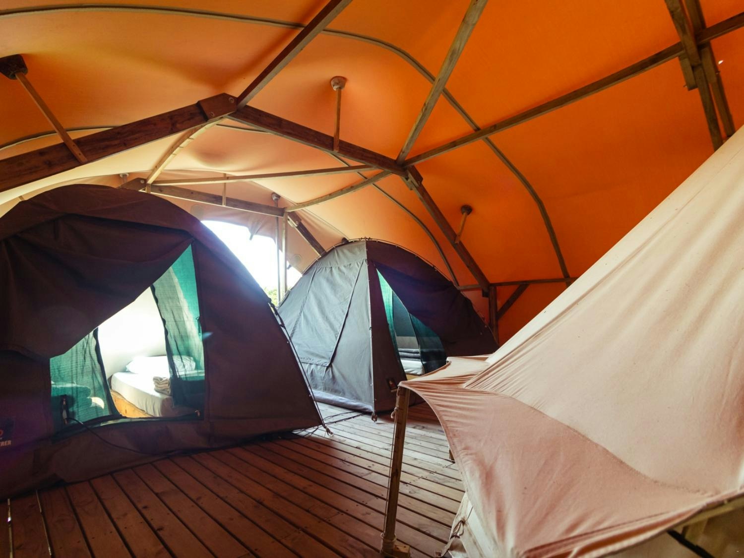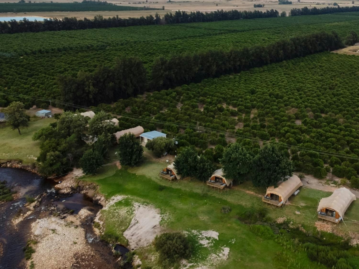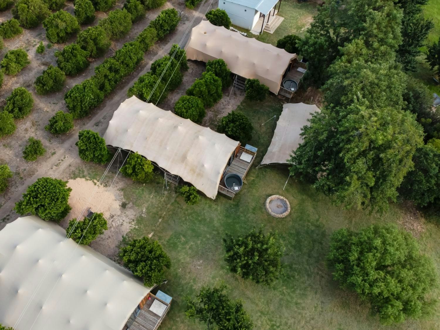 Die kampterrein beskik oor 8 ruim tente wat elk tot 6 gaste akkommodeer. Elke tent sluit 'n leef- en eetarea in, asook 'n kombuisie wat toegerus is met 'n yskas-vrieskas, tweeplaatstoof, ketel en broodrooster.