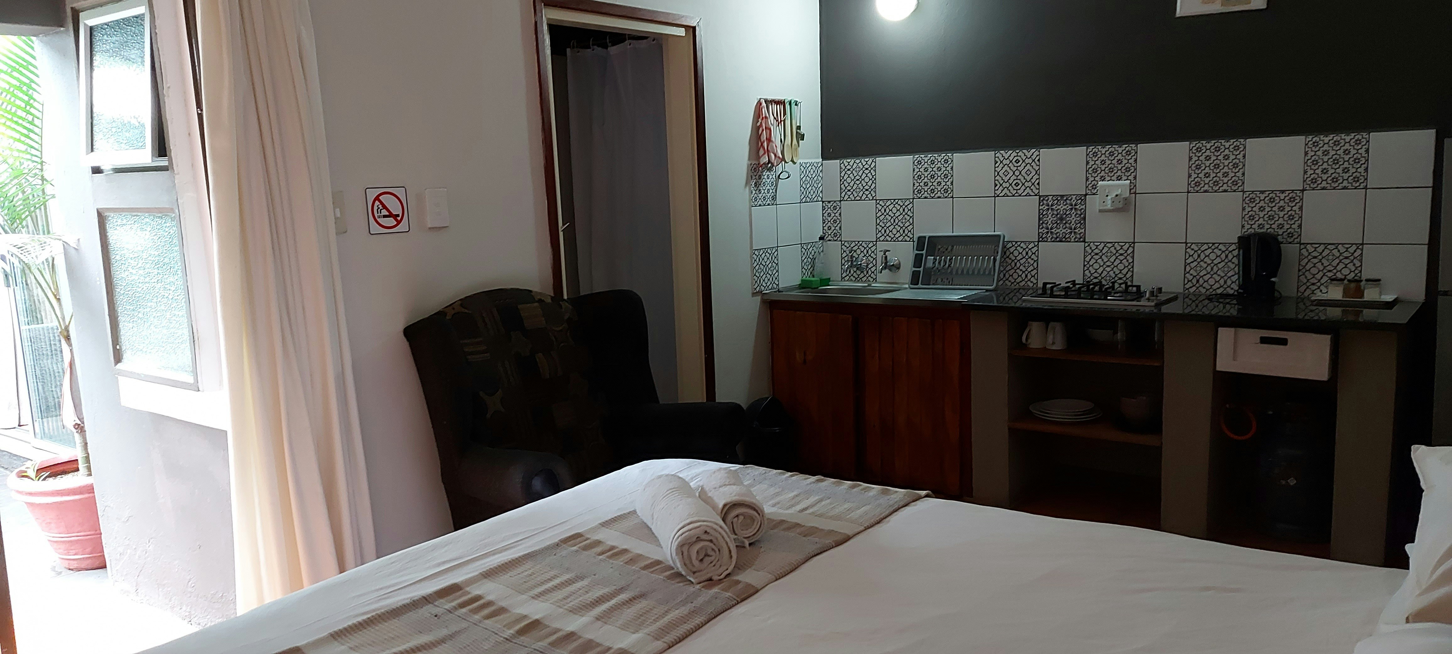 The basic self-catering units are furnished with either double beds or single beds. The bathrooms are fitted with a toilet, shower, and washbasin. The kitchenettes are equipped with microwaves, fridge-freezers, mini-ovens with 2-plate stoves, and tea- and coffee-making facilities.