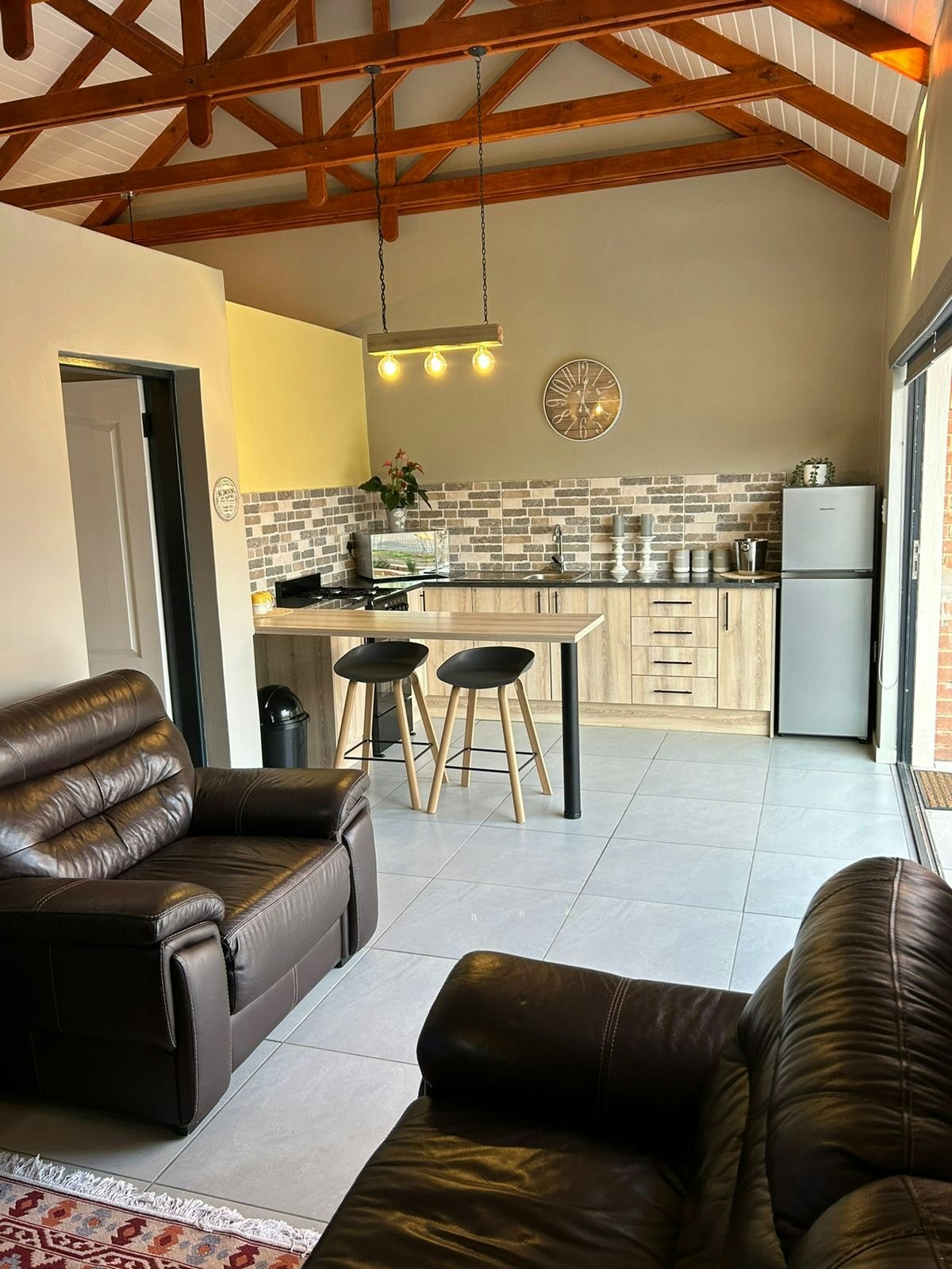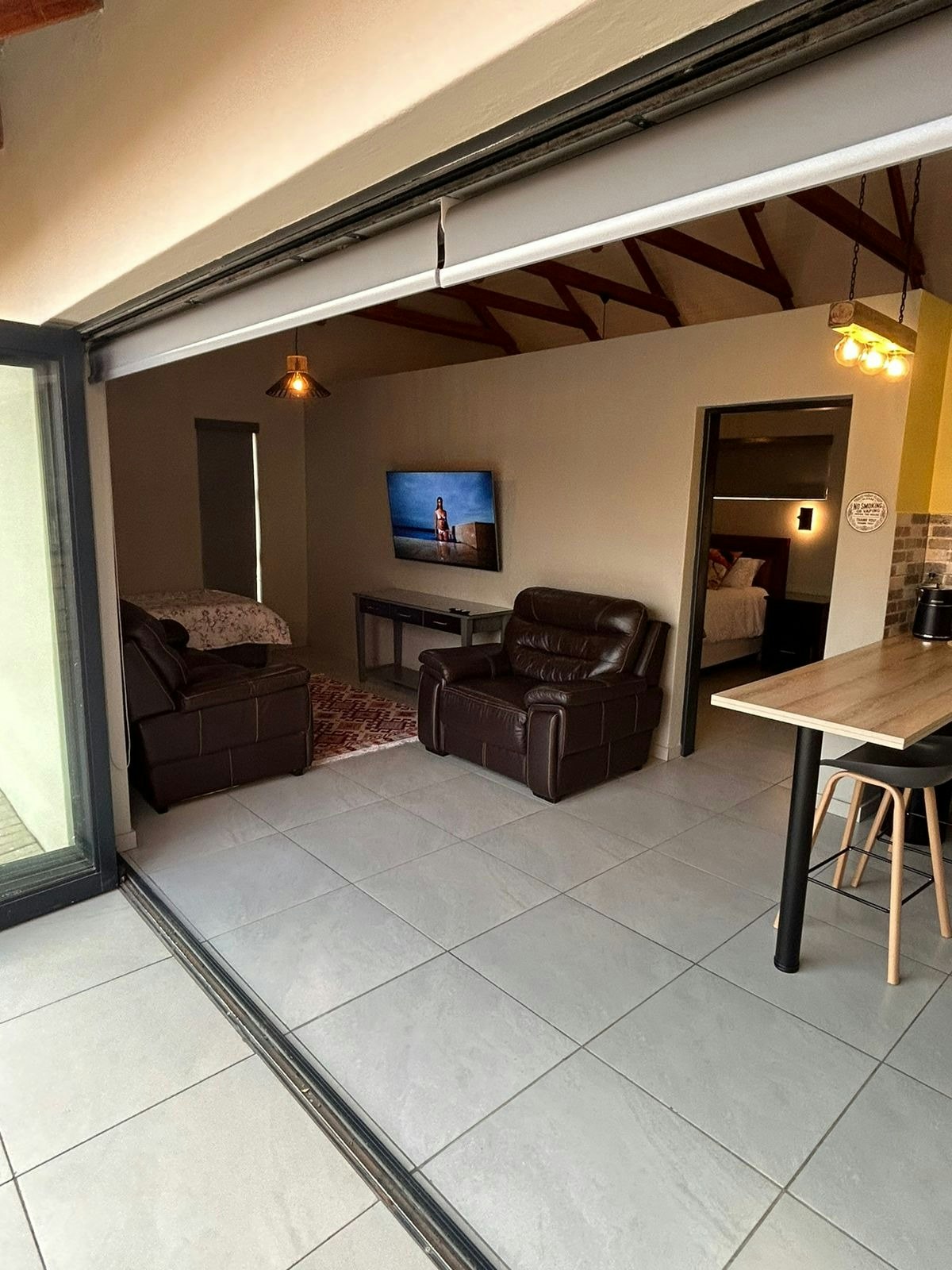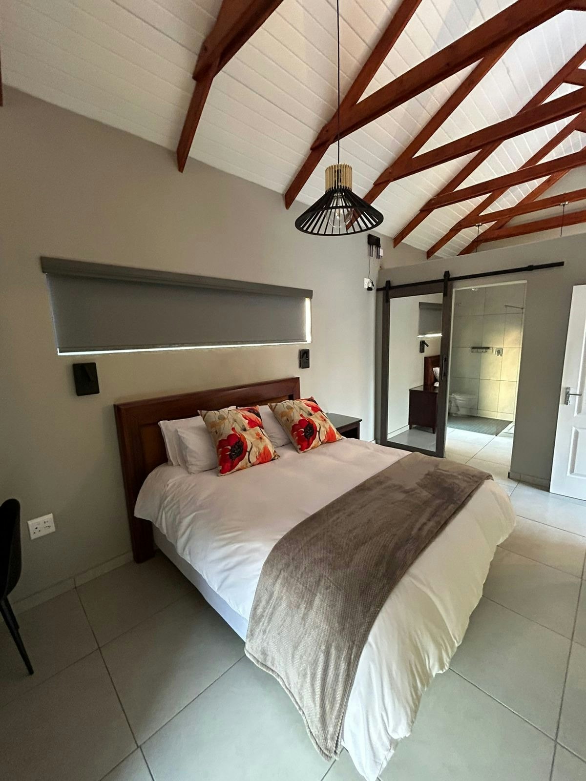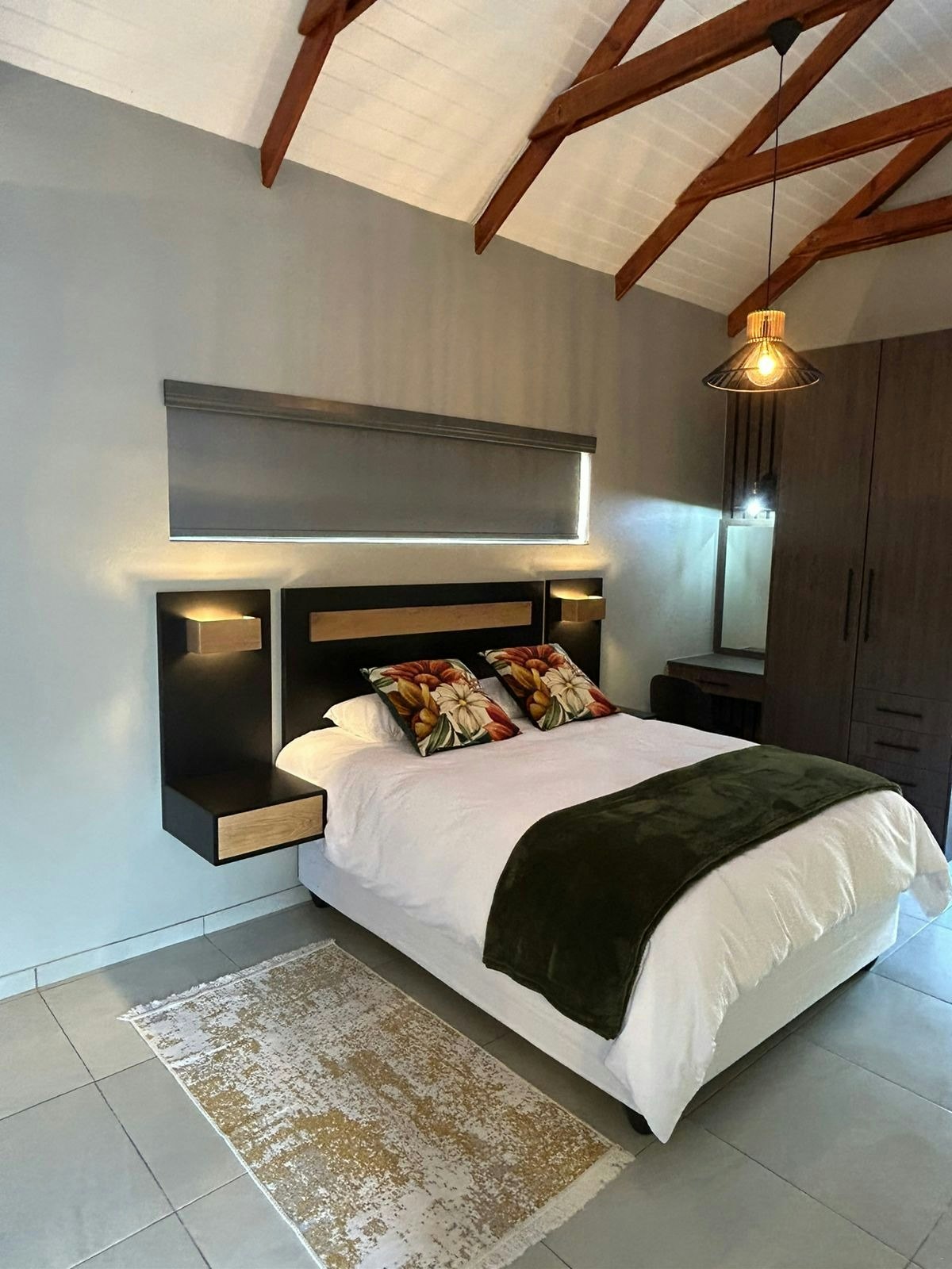 Die ruim slaapkamer is gemeubileer met 'n koningingrootte bed, terwyl die leefarea op versoek met 2 enkelbeddens toegerus kan word om 'n ekstra 2 gaste te akkommodeer. Die badkamer is toegerus met 'n stort, toilet en wasbak.