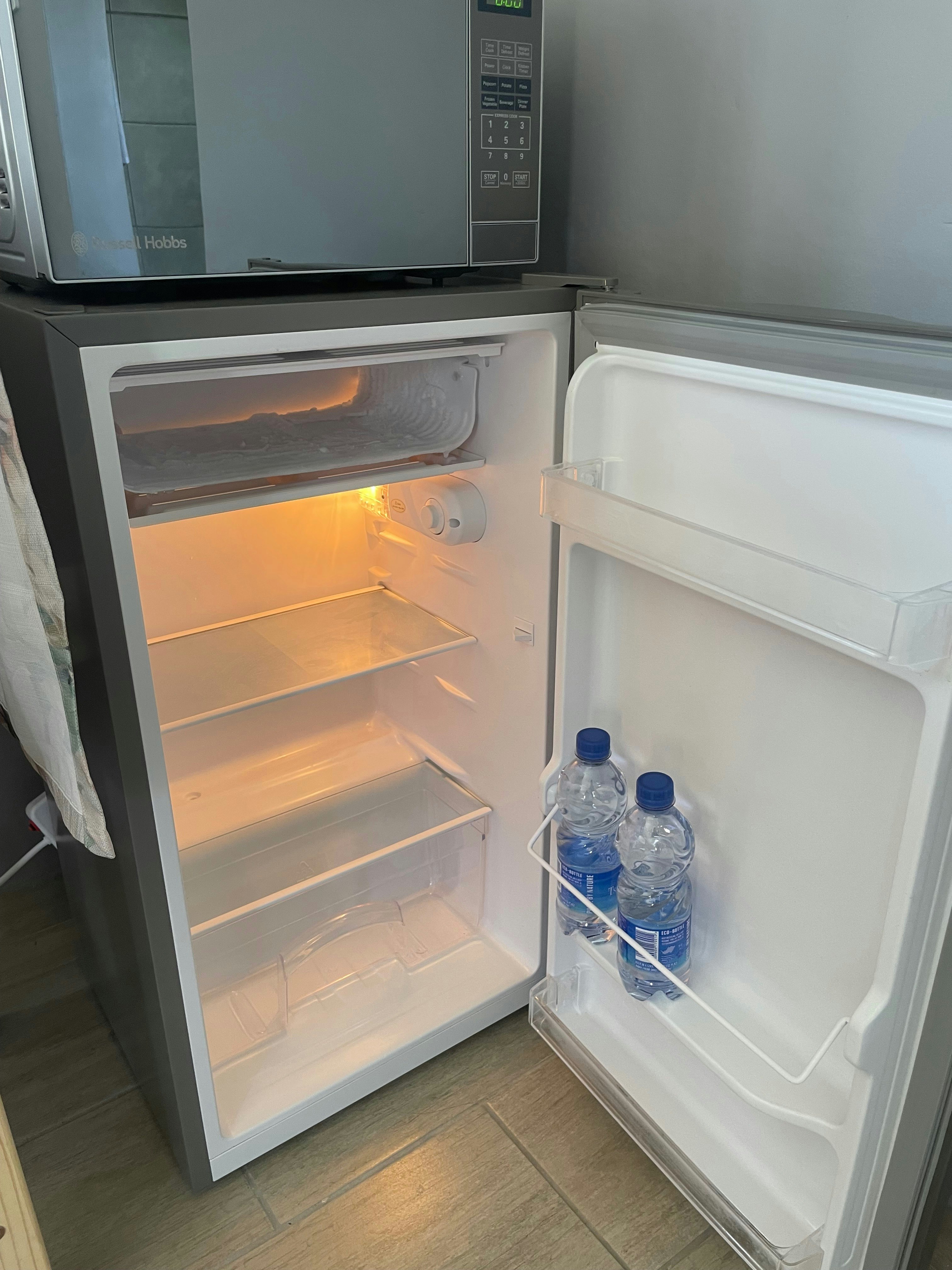 The room is equipped with a bar fridge, microwave, cutlery and crockery and tea- and coffee-making facilities. The room also features a TV, dining table and Wi-Fi.