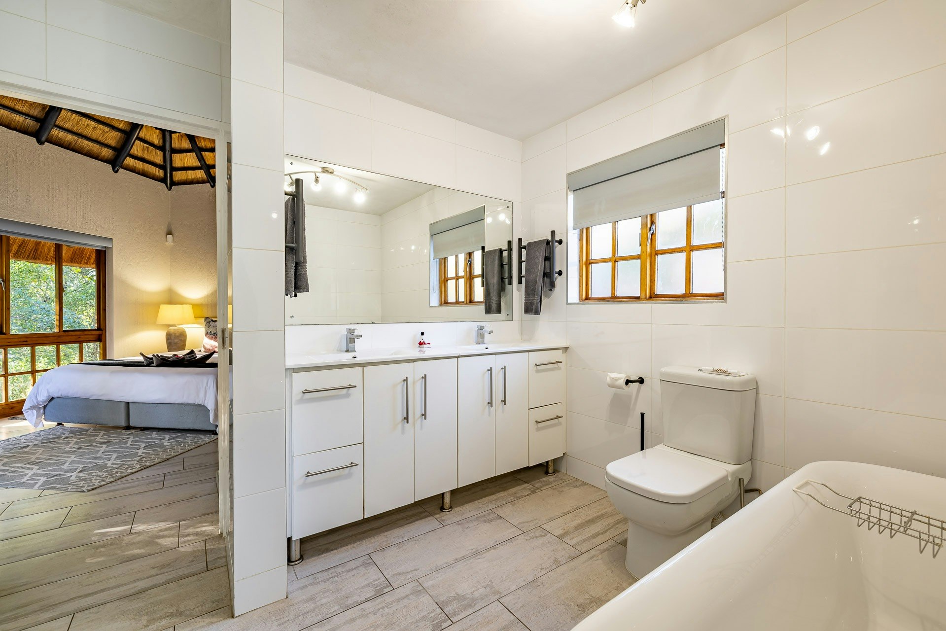 Guests have access to all of the estate’s facilities such as swimming pools, tennis and volleyball courts, and walking trails along the Sabie River, as well as the golf course. There are many water features and, in addition to the prolific birdlife, there are hippos, crocodiles, monkeys, impalas and other small game on the estate.