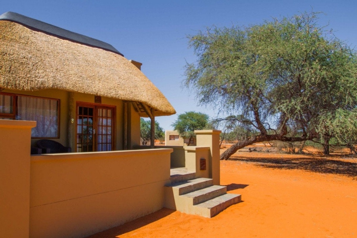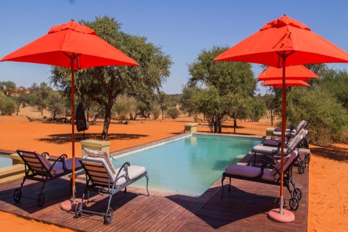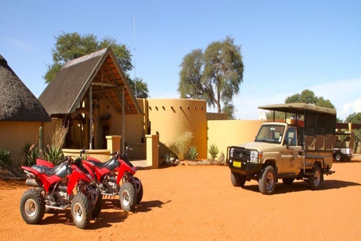 Die lodge meng klip- en houtargitektuur met natuurlike skoonheid en beskik oor rustige visdamme, 'n sitkamer wat uitkyk oor 'n bedrywige watergat, en 'n sprankelende swembad, perfek om te ontspan terwyl jy kyk hoe die wild verbygaan. Avontuurlustige gaste kan die Kalahari verken op oop 4x4-wildritte of opwindende vierwielmotorfiets-uitstappies. Vir 'n werklik meeslepende ervaring bied begeleide staptogte met ervare Boesman-spoorsnyers en kundige gidse 'n diep duik in die gebied se ryk kulturele en natuurlike erfenis.