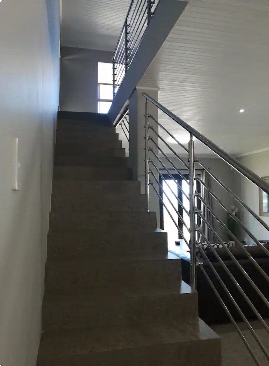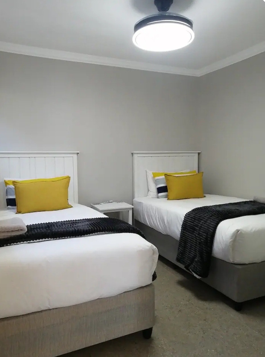Hierdie dubbelverdiepinghuis bied slaapplek vir tot 8 volwassenes en 2 kinders en bestaan uit 4 slaapkamers, 3 badkamers en 'n gastetoilet. Die eerste slaapkamer is ingerig met 'n koningingrootte-bed en het 'n en suite-badkamer met 'n bad, stort, dubbelwasbakke en 'n toilet. Die tweede slaapkamer is ingerig met 'n dubbelbed, terwyl die derde en vierde slaapkamers elk 2 enkelbeddens het. Die eerste gedeelde badkamer is slegs ingerig met 'n stort, terwyl die tweede gedeelde badkamer 'n stort, wasbak en toilet het. Linne en badhanddoeke word voorsien.