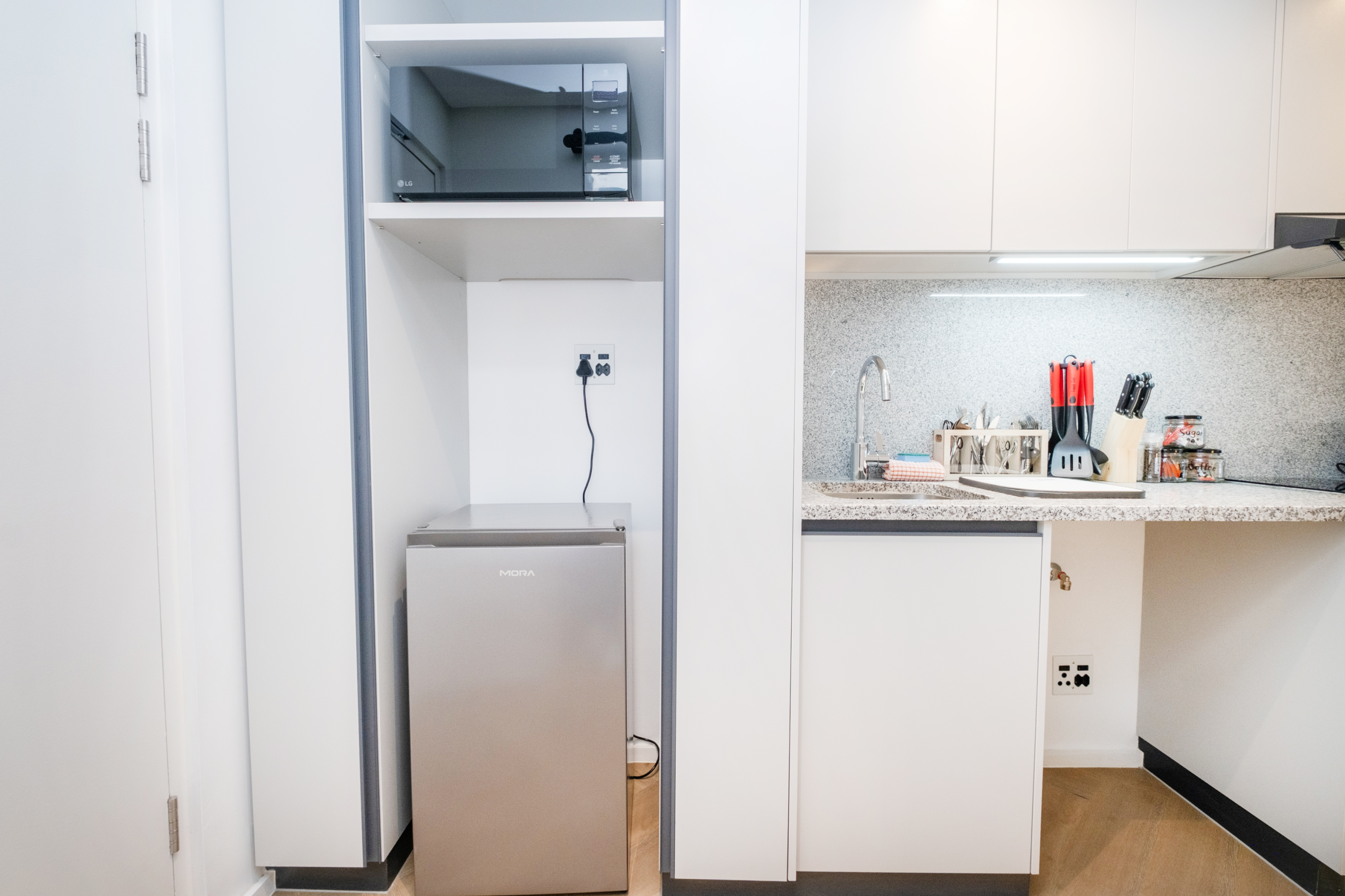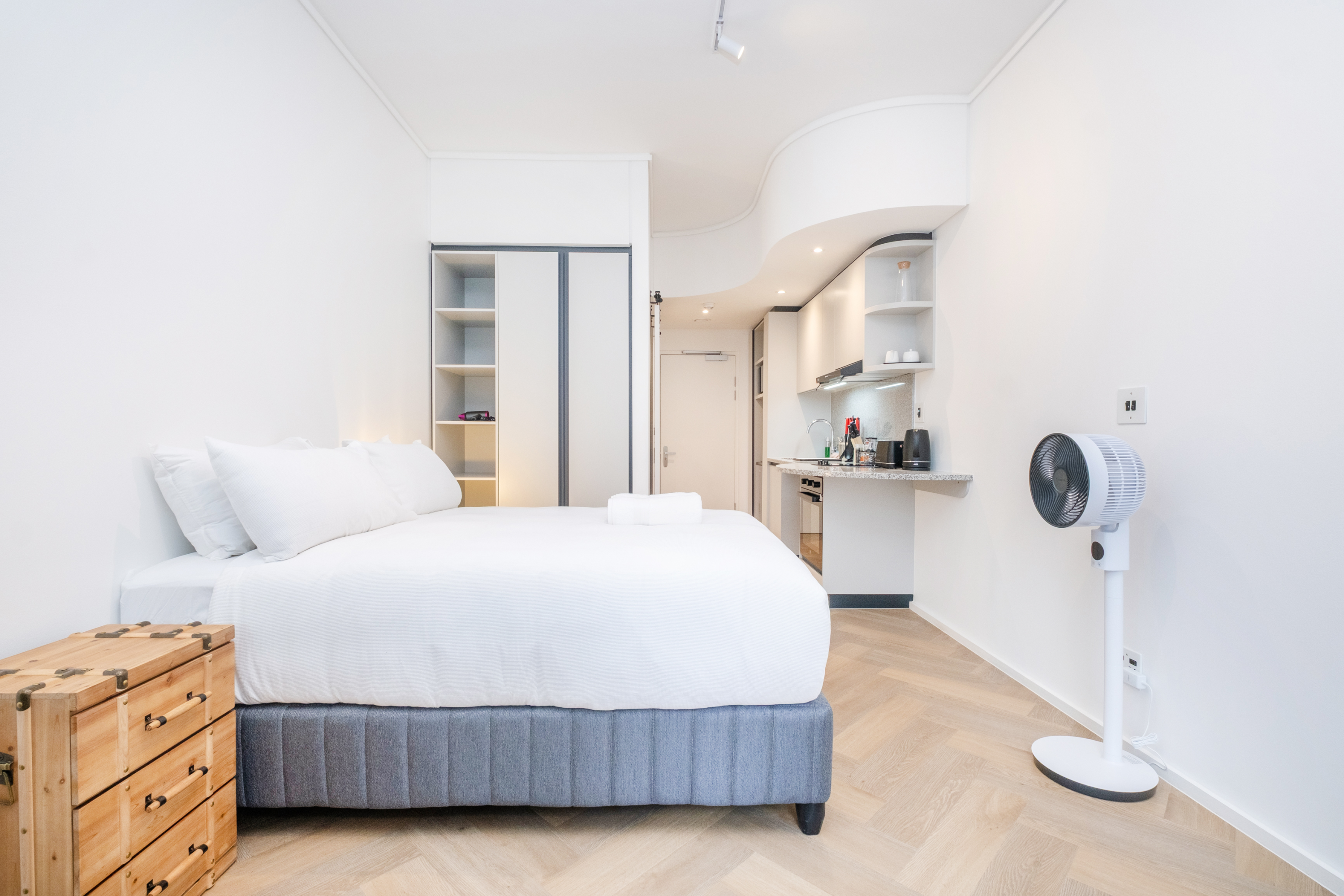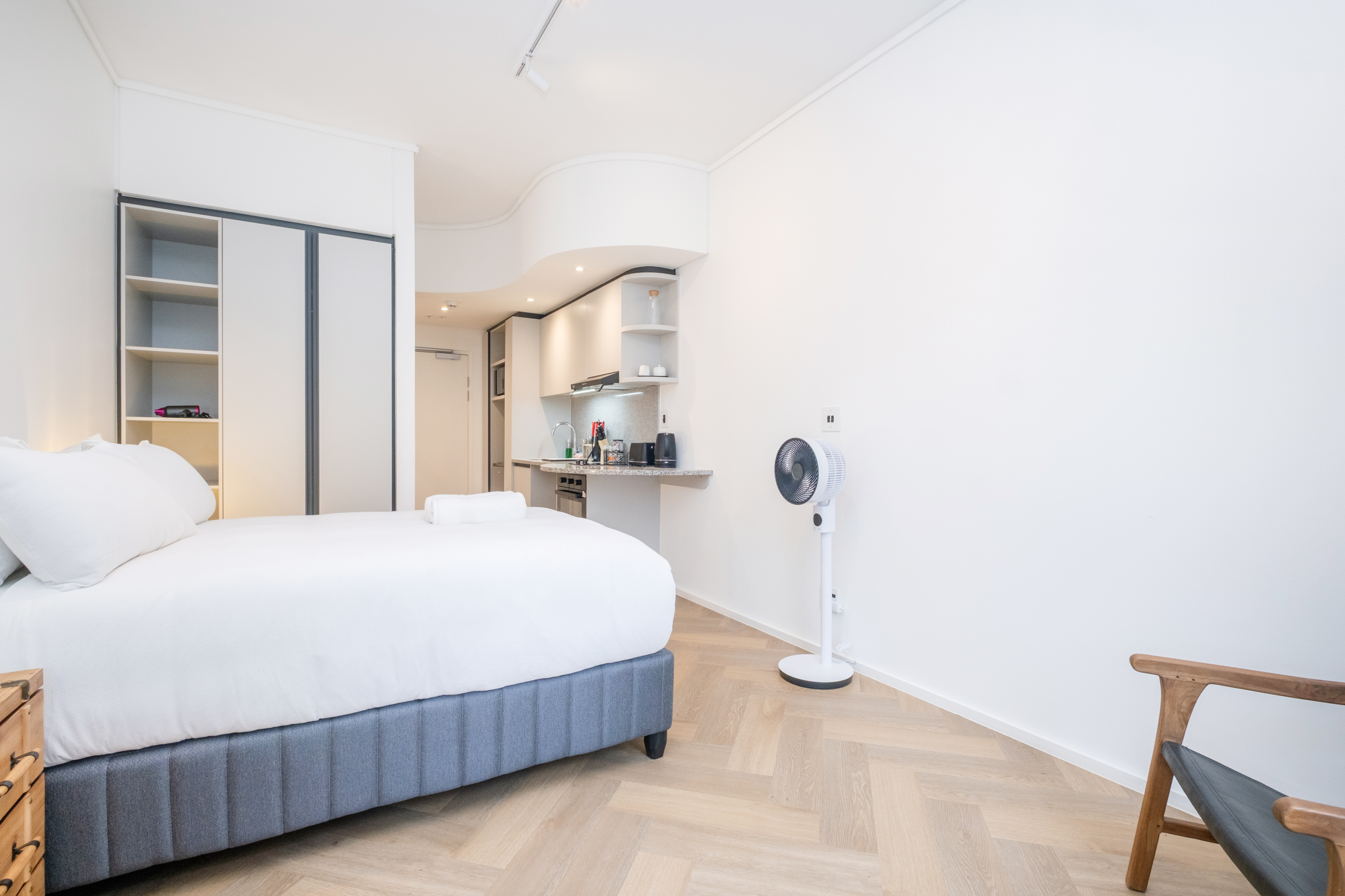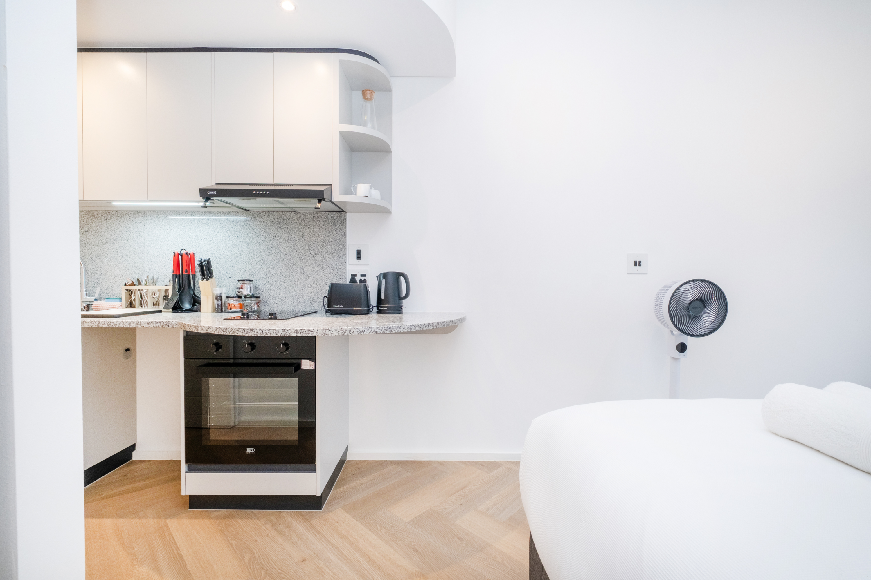 Die eenheid bied ook 'n gemaklike sitarea, 'n slim-TV teen die muur met stromingsdienste, en 'n toegewyde werkruimte met gratis WiFi. Die kombuis is toegerus met 'n yskas-vrieskas, tweeplaatstoof, oond, mikrogolfoond, eetgerei en breekware, sowel as tee- en koffiemaakgeriewe.