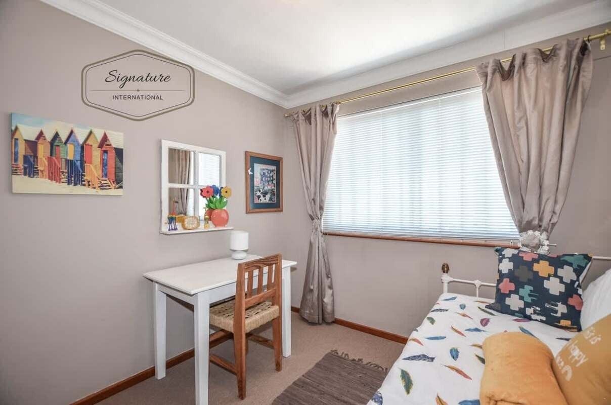 The complex provides guests with a communal swimming pool, braai facilities, and secure parking. This apartment is conveniently located within walking distance to the beach, local restaurants, and bars. It is also approximately a 20 km drive from the V&A Waterfront and 27 km from Cape Town International Airport.