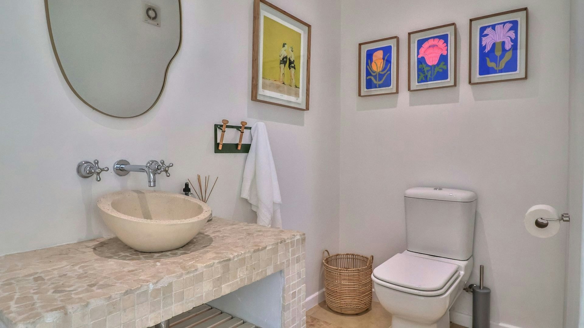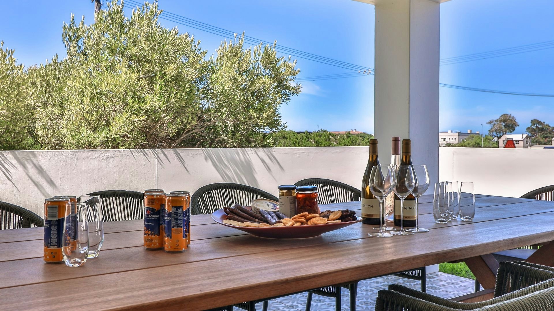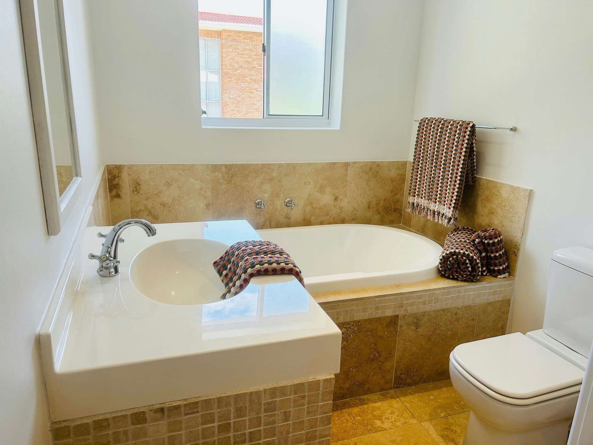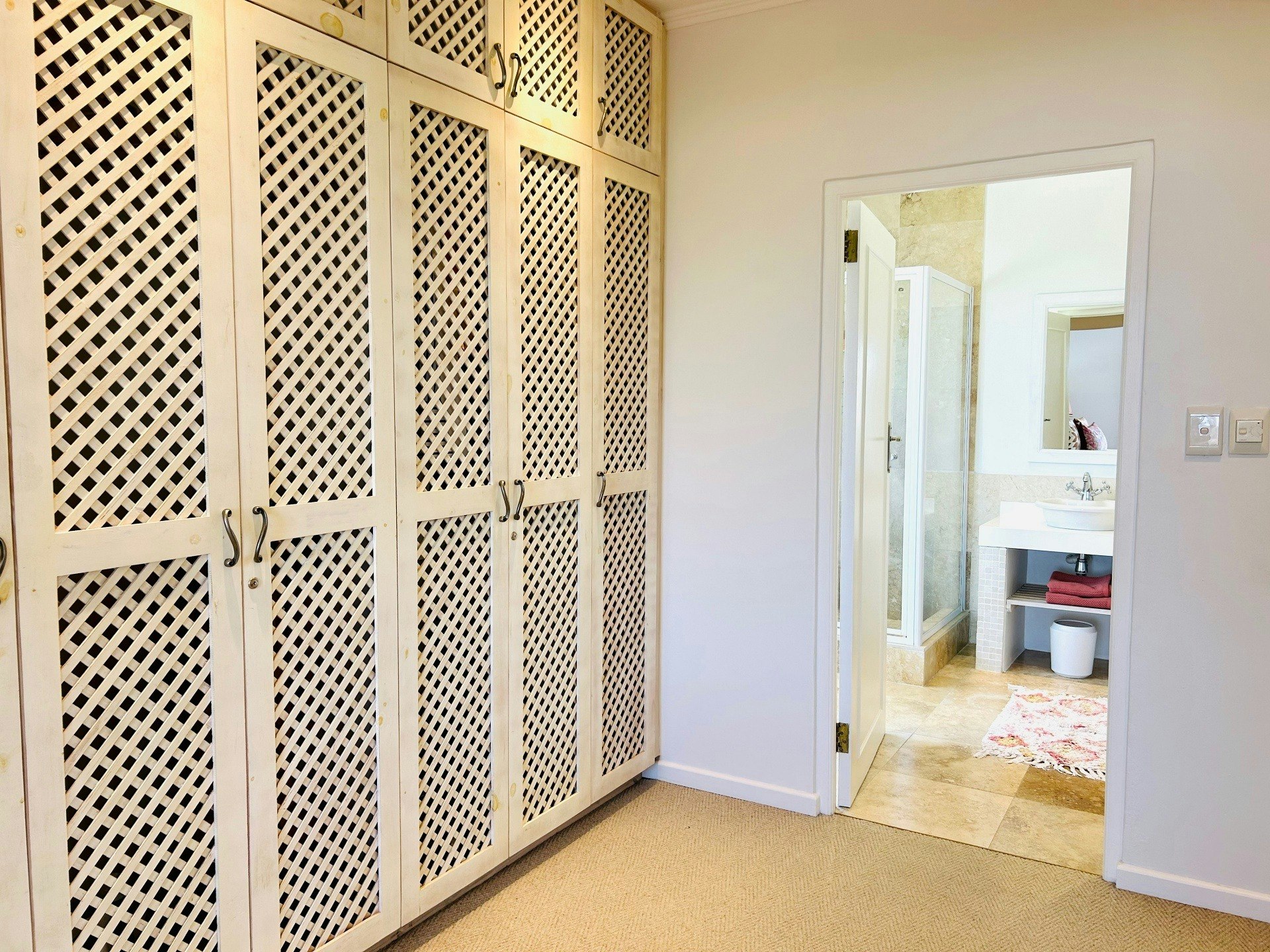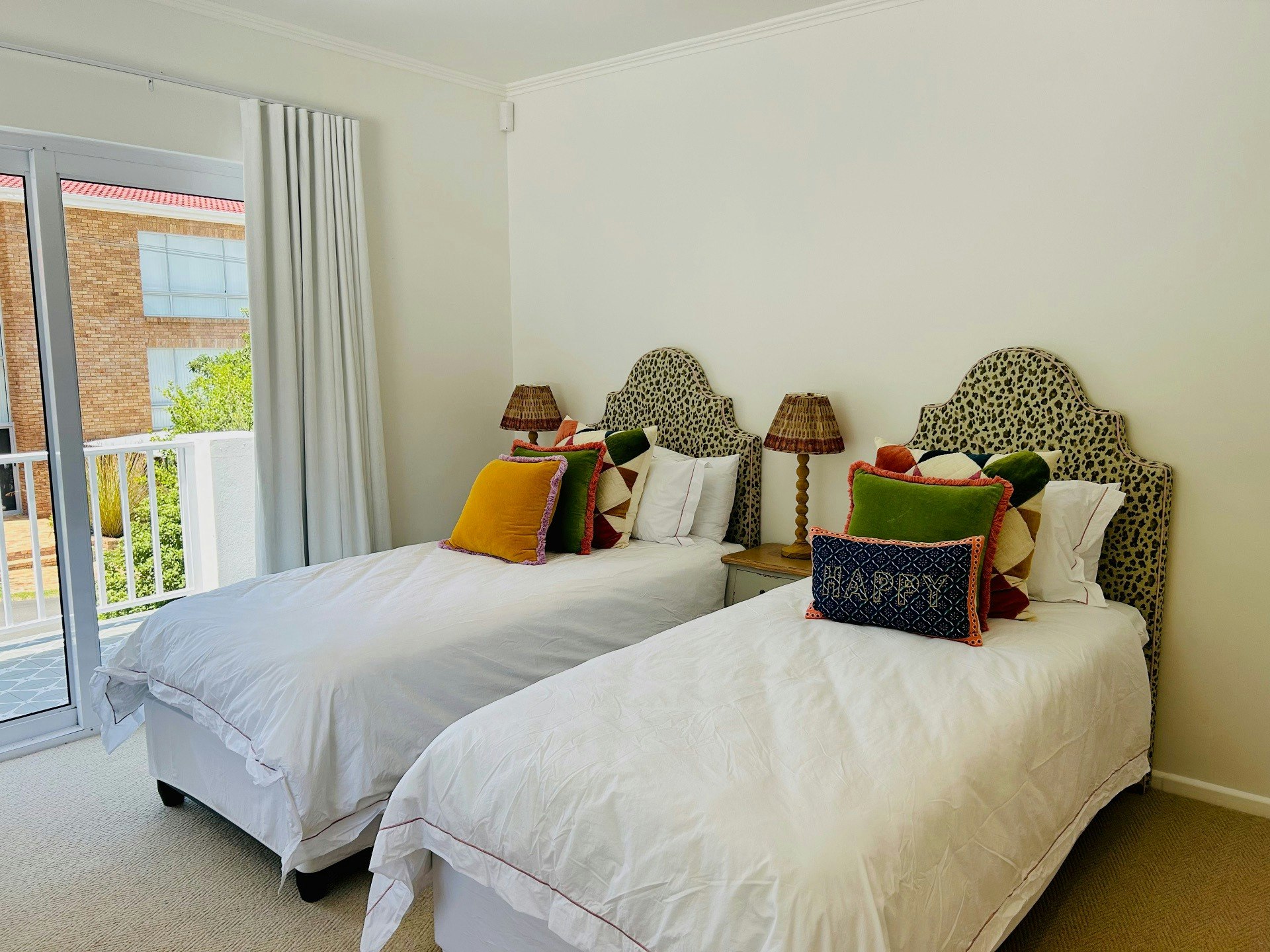 This home has a sleeping capacity of 8 guests and comprises 4 tastefully furnished bedrooms. The main bedroom on the ground floor is furnished with a king-size bed, ample cupboard space, and a sizeable bathroom fitted with a bath, shower, basin, and toilet. It opens up to an outdoor entertainment area. Upstairs, the second en-suite bedroom has a king-size bed and also features a spacious bathroom with a bath and shower. The third and fourth bedrooms are located opposite the TV room, both furnished with twin beds and have an adjoining bathroom fitted with a bath, shower, basin, and toilet. A guest bathroom is located downstairs fitted with a shower, basin, and toilet. Linen and towels are provided.