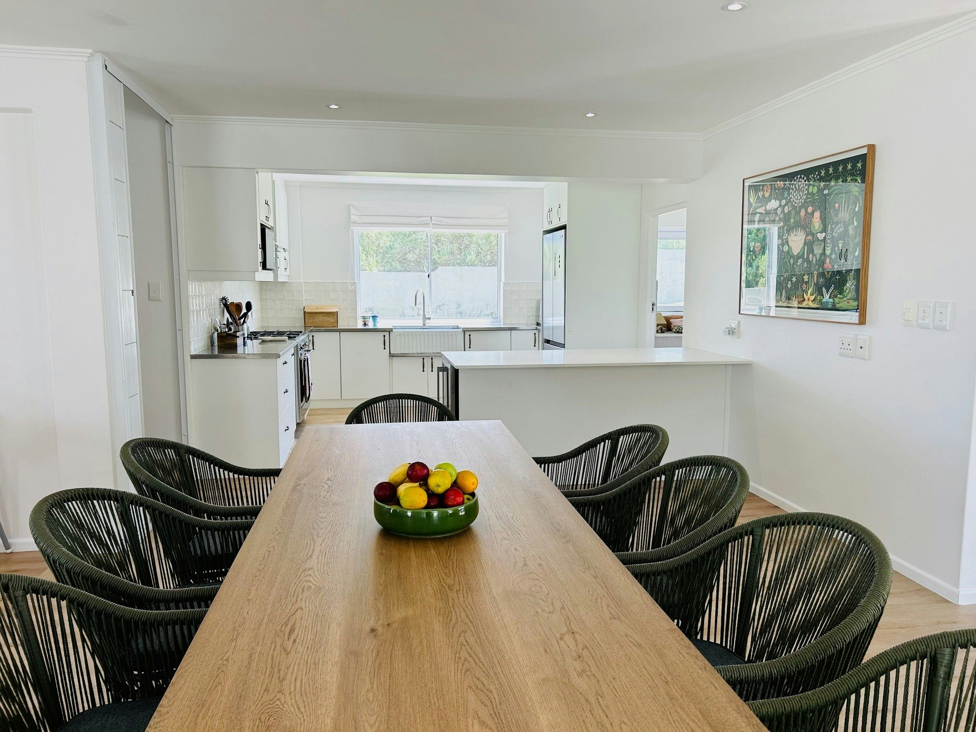 The house comprises an open-plan kitchen, dining, and lounge area. The kitchen is equipped with a high-end fridge-freezer, a gas hob and electric oven, a microwave, cutlery, crockery, a toaster, and tea- and coffee-making facilities. Additionally, it features a dishwasher, washing machine, tumble dryer, and cleaning materials for guests’ convenience.