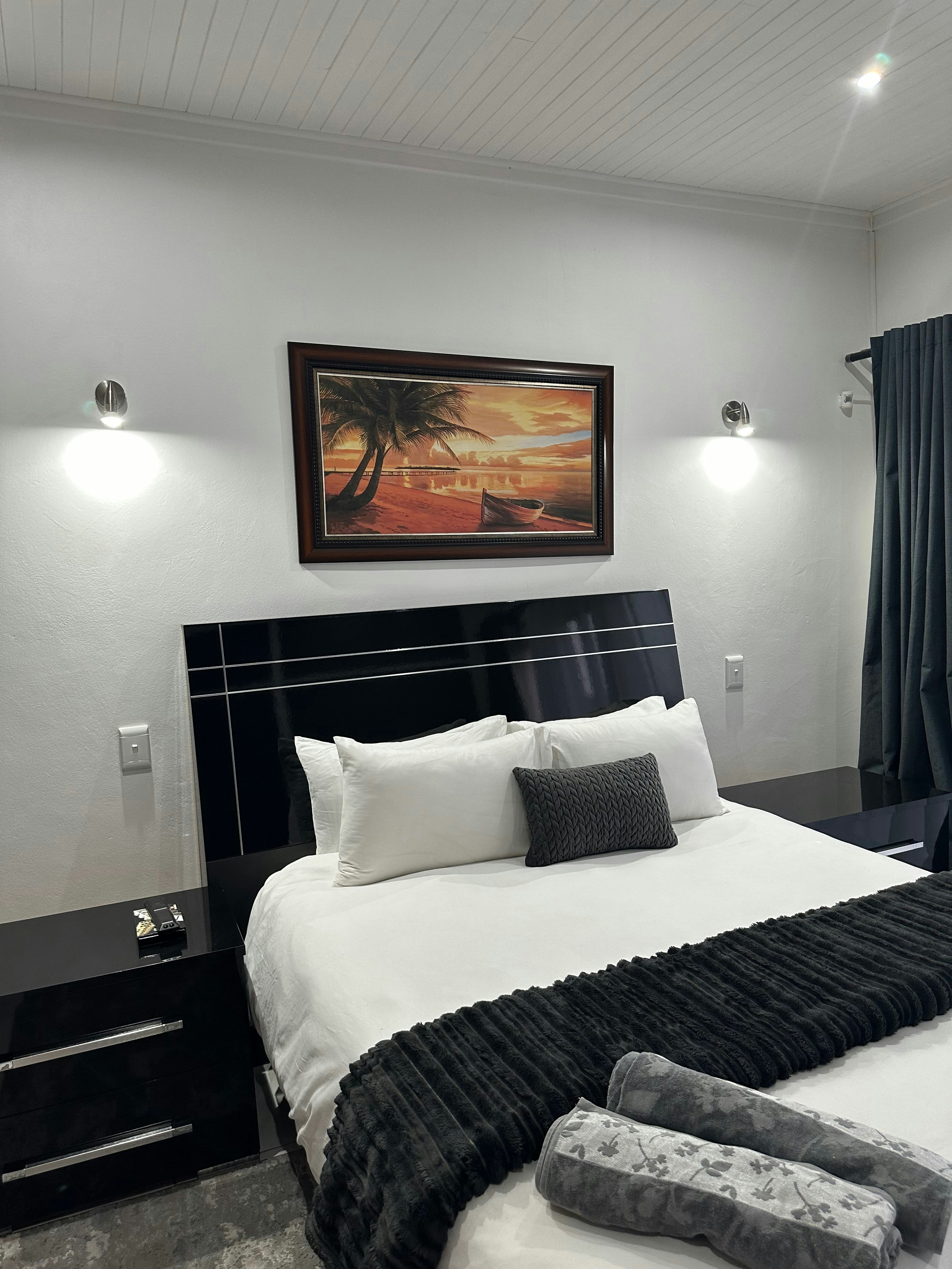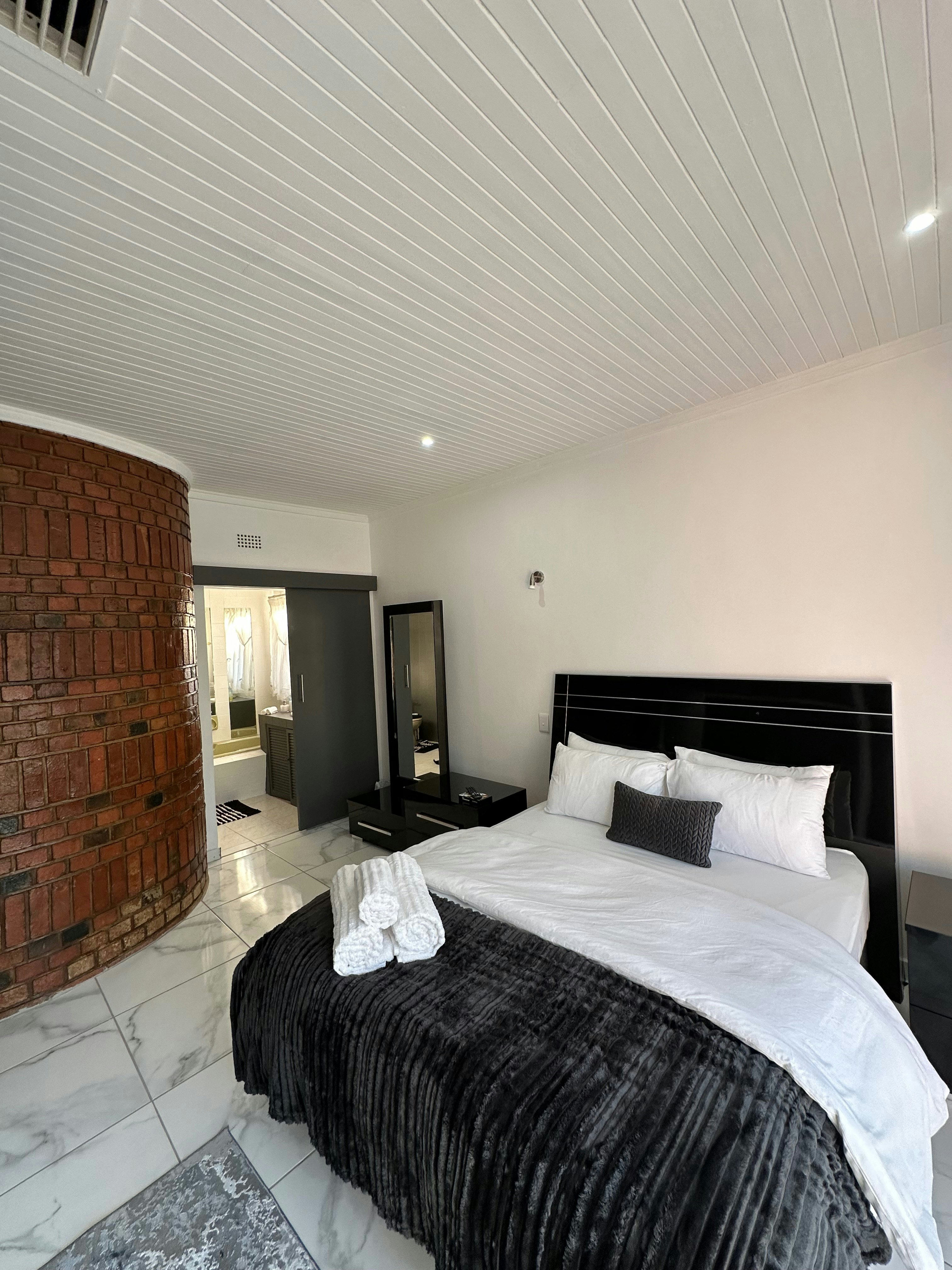Die huis bestaan uit 2 kamers. Die eerste slaapkamer is gemeubileer met 'n koningingrootte-bed en het 'n en suite-badkamer met 'n bad, stort, toilet en wasbak. Die tweede slaapkamer het 2 enkelbeddens en 'n stort en 'n klein kombuisie met 'n yskassie, mikrogolfoond en tee- en koffiemaakgeriewe.