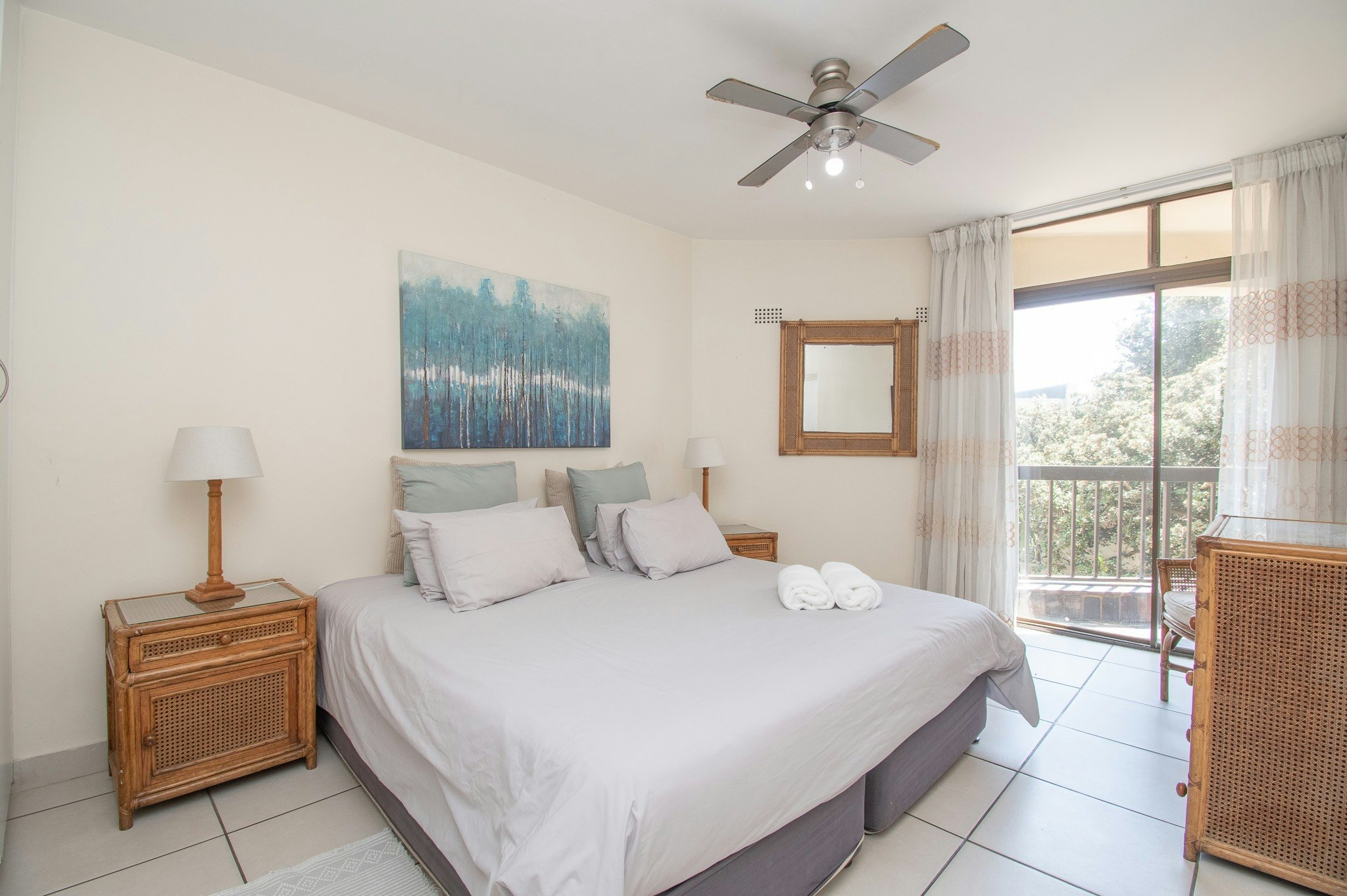 Dié woonstel beskik oor 3 slaapkamers en het 'n groot balkon met stoepmeubels en braaigeriewe. Die hoofslaapkamer en die tweede slaapkamer lei albei na die balkon. Die hoofslaapkamer het 'n dubbelbed en 'n en suite-badkamer met 'n stort, bad en 'n toilet. Die tweede en derde slaapkamer het elk 2 enkelbeddens en die ander badkamer het 'n stort en 'n toilet.