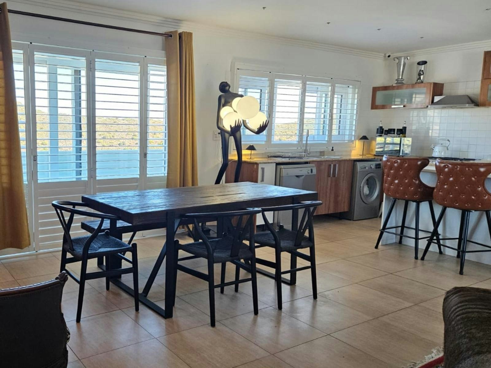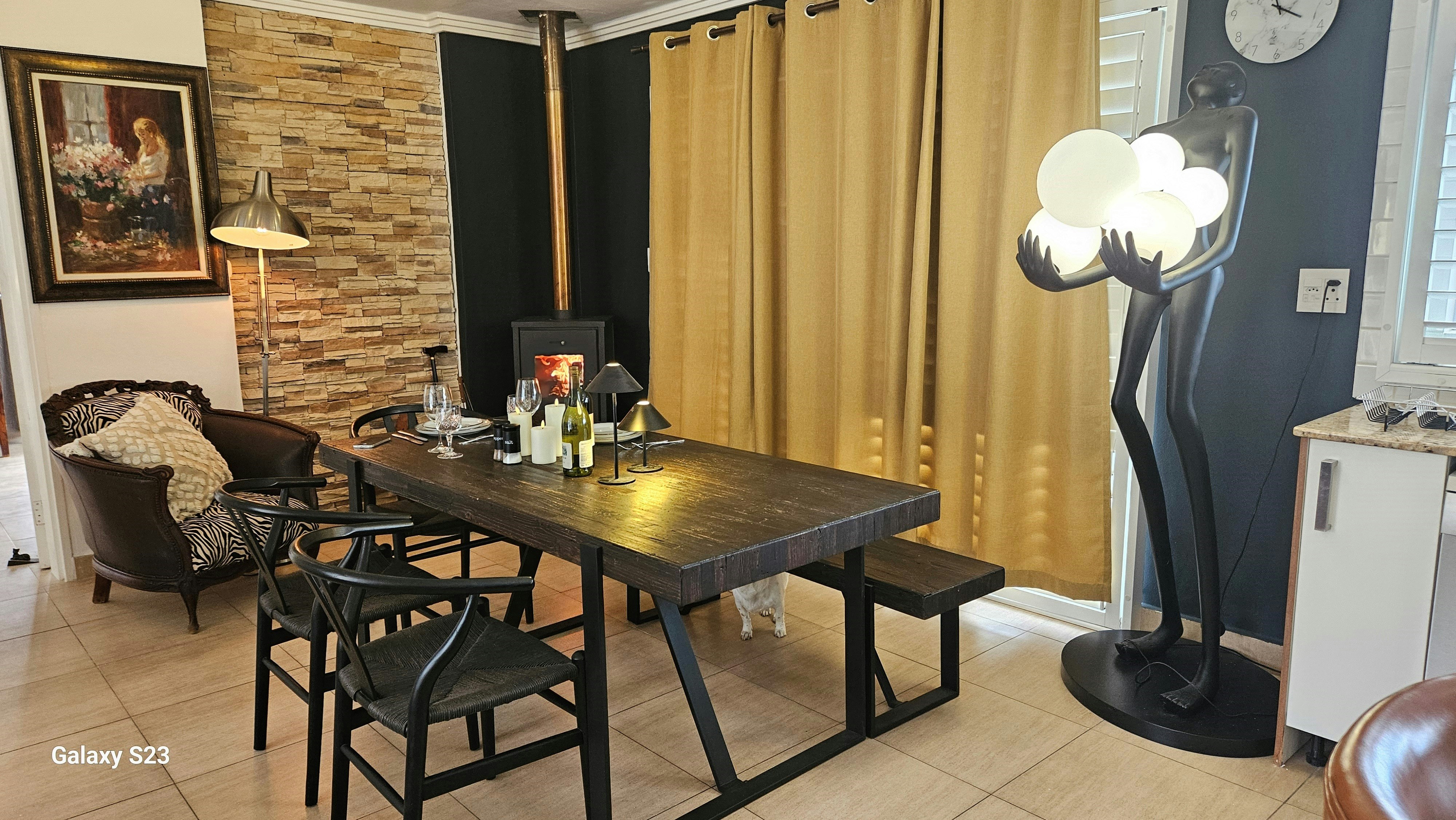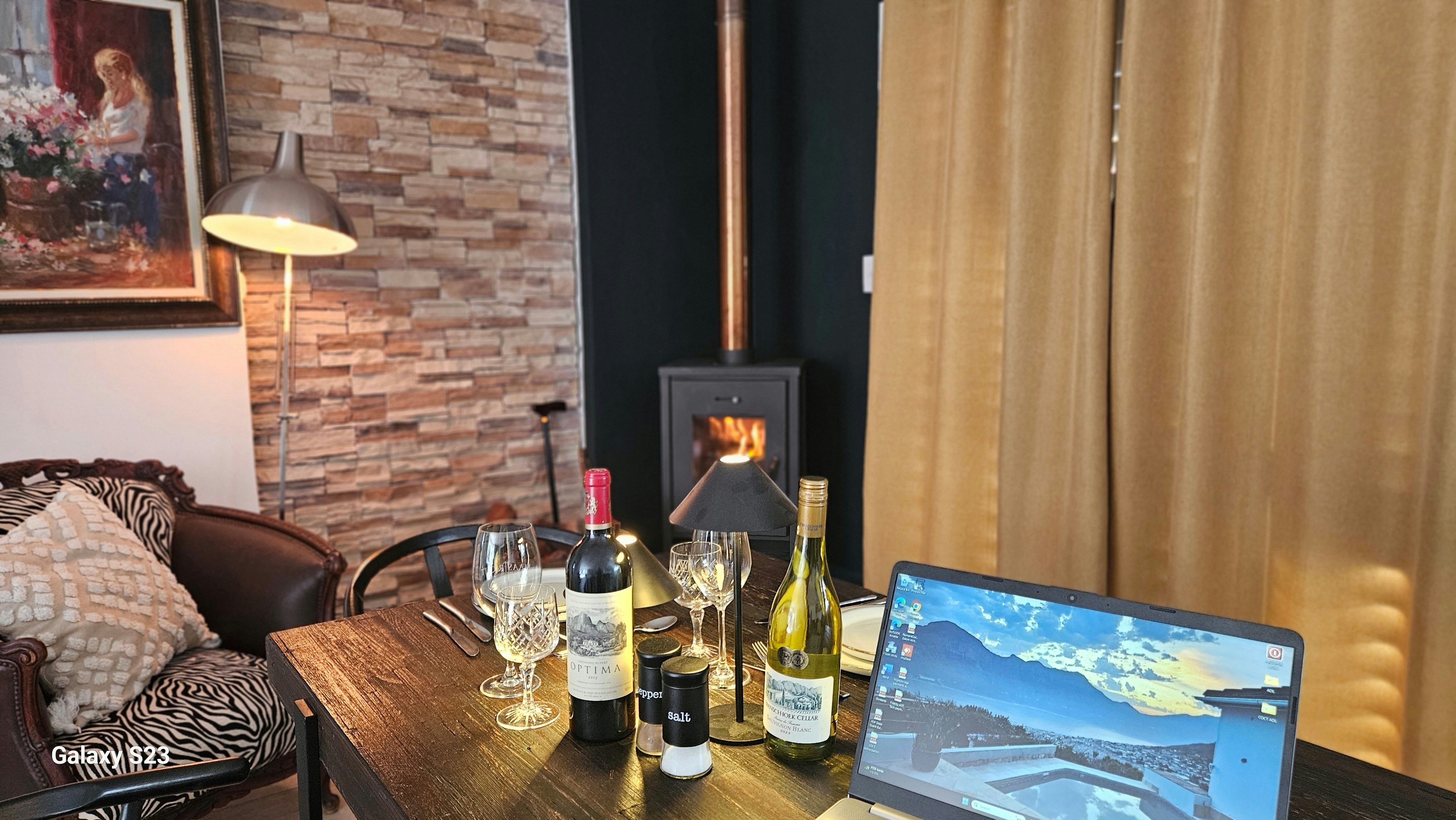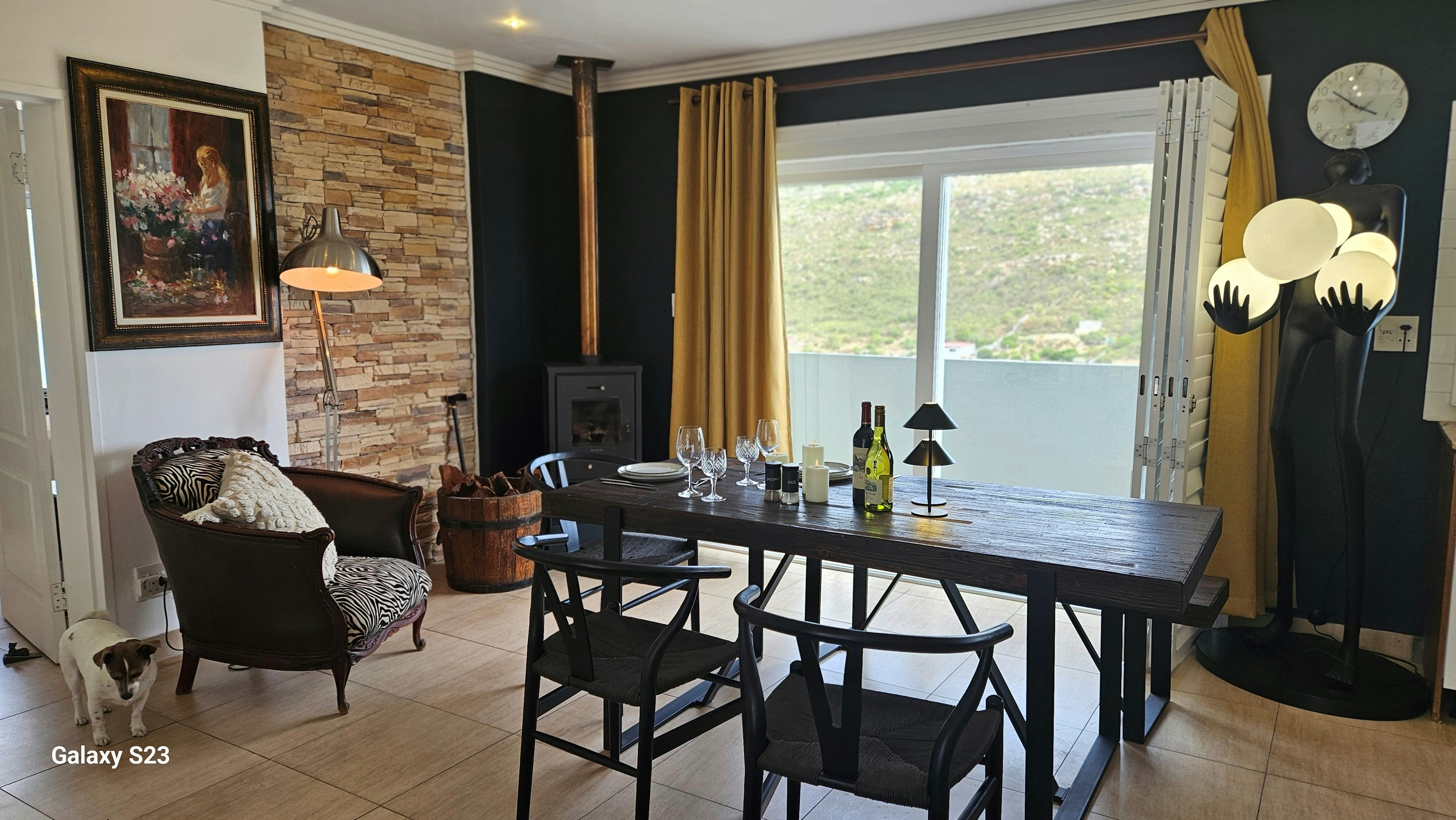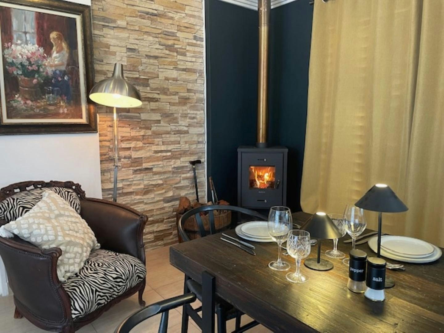 Die ruim sitkamer spog met 'n eet- en kombuisarea. Die kombuis is met 'n yskas-vrieskas, gasstoof, oond, mikrogolf, basiese eetgerei, breekware en tee- en koffiemaakgeriewe toegerus. Daar is ook 'n skottelgoedwasser en wasmasjien. Die kombuis lei na 'n eetarea waar gaste hul maaltye kan geniet en na die sitkamer met gemaklike rusbanke en 'n slim-TV met Netflix, Showmax en DStv. Gratis WiFi is beskikbaar. Daar is ook 'n kaggel vir koue winteraande.