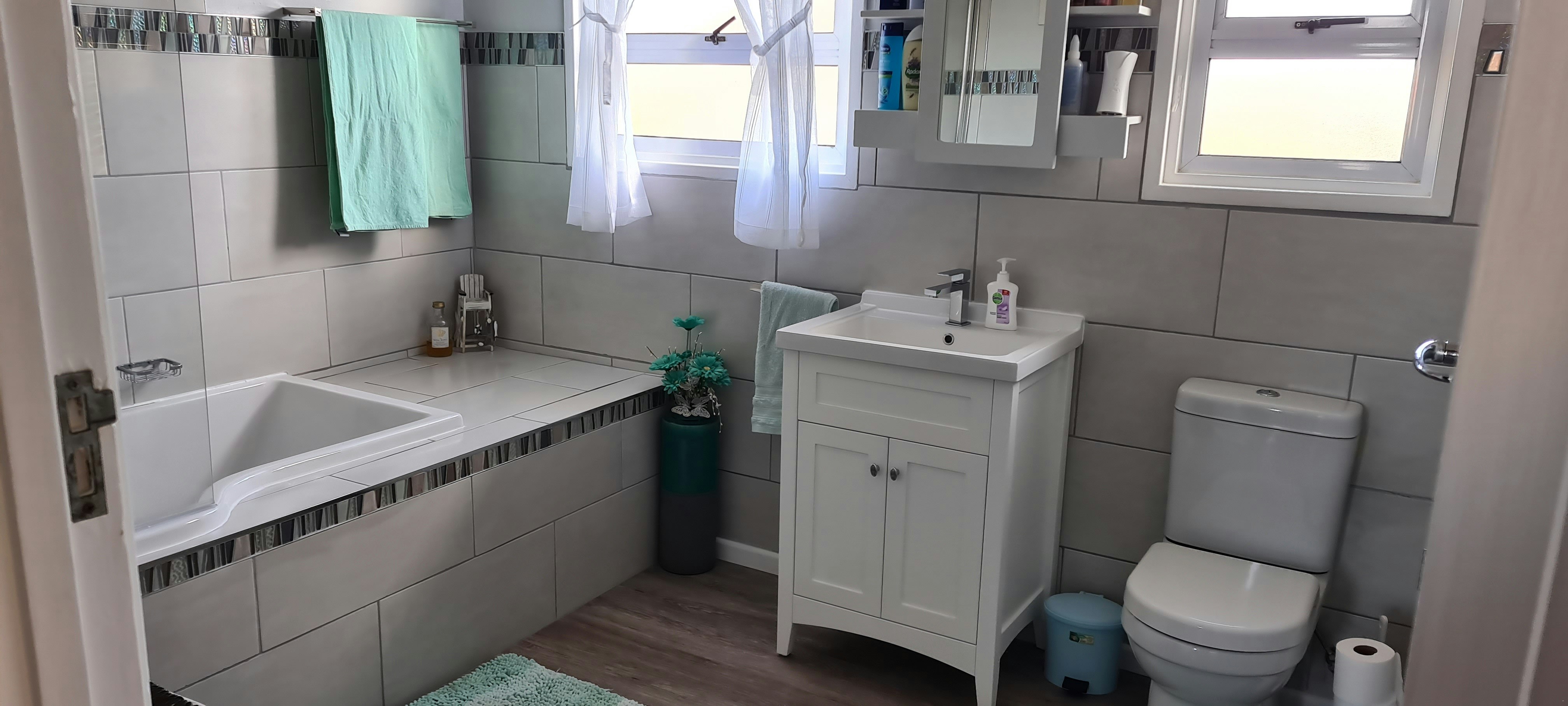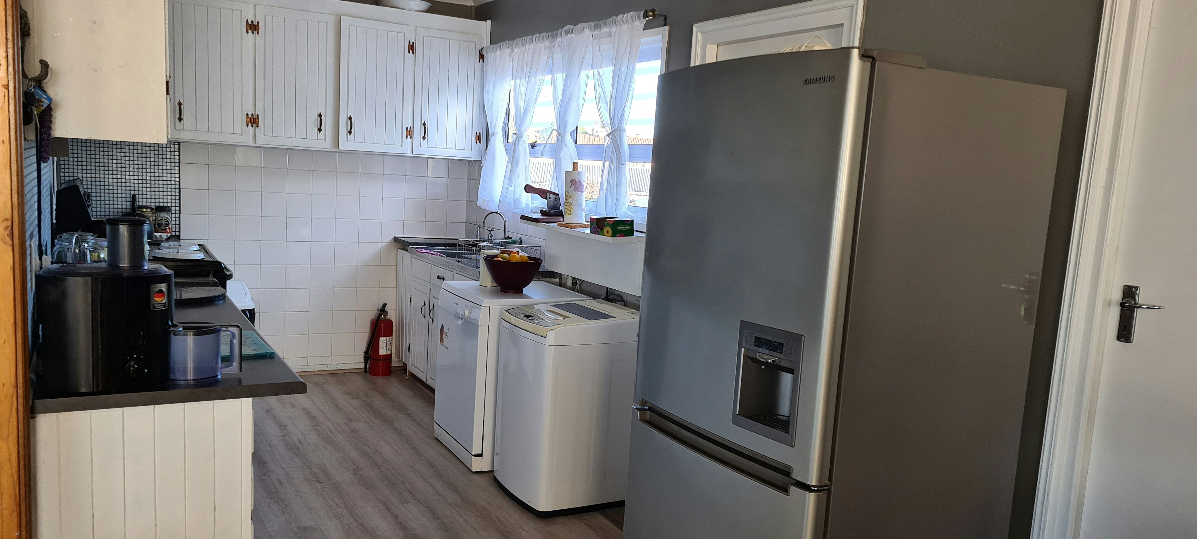 Ideaal vir 'n groot gesin of twee kleiner gesinne, bied die huis slaapplek vir 6 mense en bestaan uit 3 slaapkamers, 2 badkamers, 'n kombuis, 'n leefarea en 'n groot stoep. Een van die slaapkamers is ingerig met 'n dubbelbed en het 'n en suite-badkamer met 'n stort en toilet.