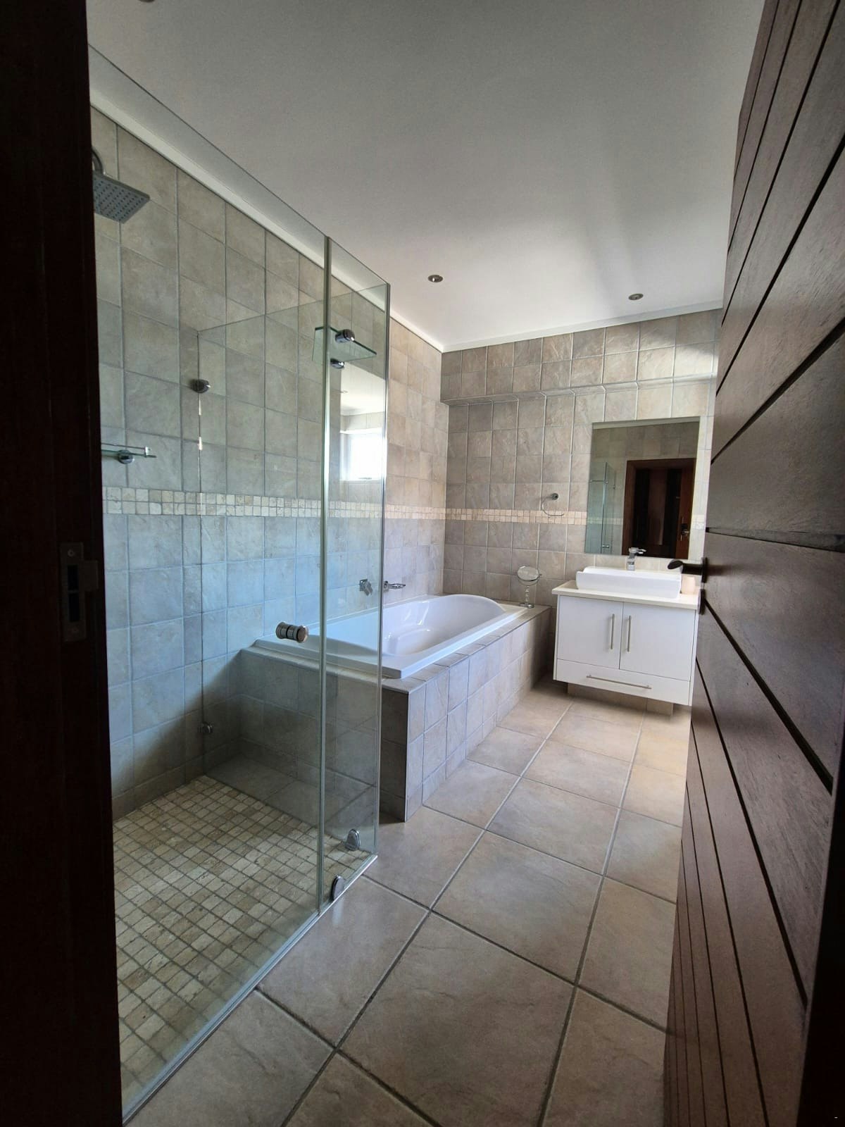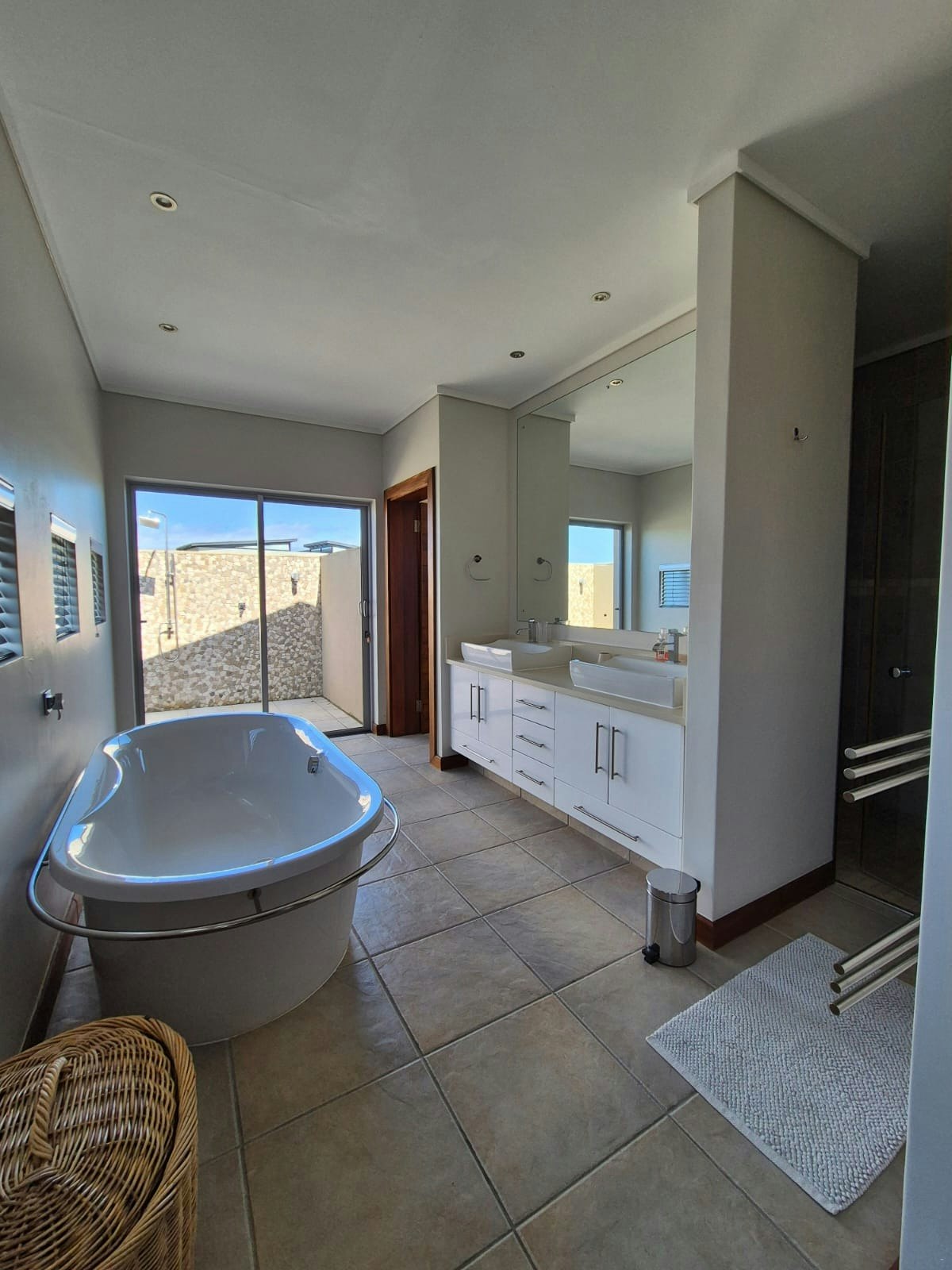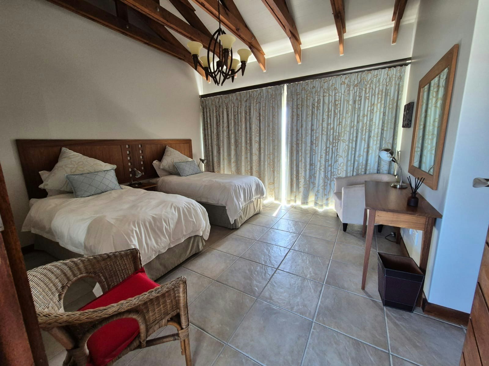 Hierdie ruim huis met 5 slaapkamers, elk met sy eie volledige en suite-badkamer, bied die perfekte omgewing vir 'n ontspannende wegbreek in die veilige Oubaai-landgoed. Die hoofslaapkamer is ingerig met 'n koninggrootte-bed en het 'n en suite-badkamer met 'n spa-bad, stort, wasbak en toilet. Die tweede slaapkamer het 'n koningingrootte-bed, terwyl die derde en vierde slaapkamers elk met 'n dubbelbed ingerig is. Die vyfde slaapkamer het 2 enkelbeddens. Hulle het en suite-badkamers met 'n bad en stort. Linne en handdoeke word voorsien.