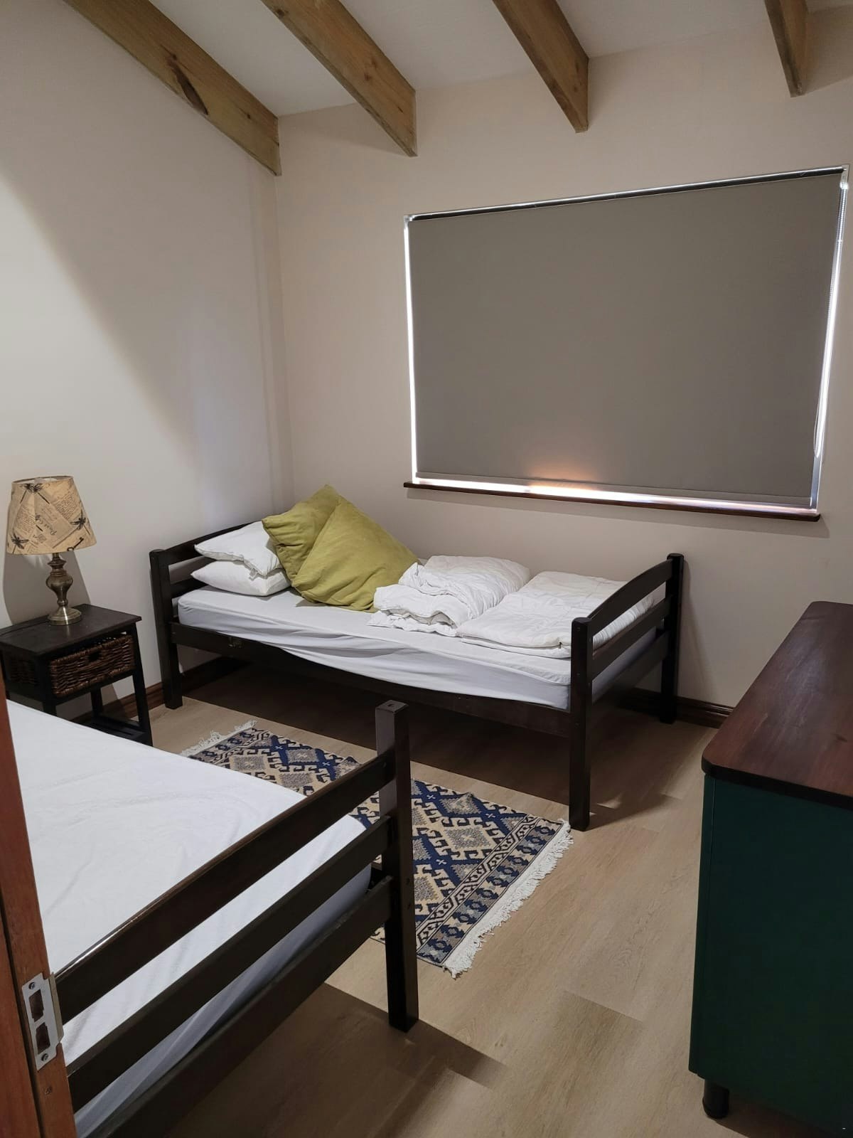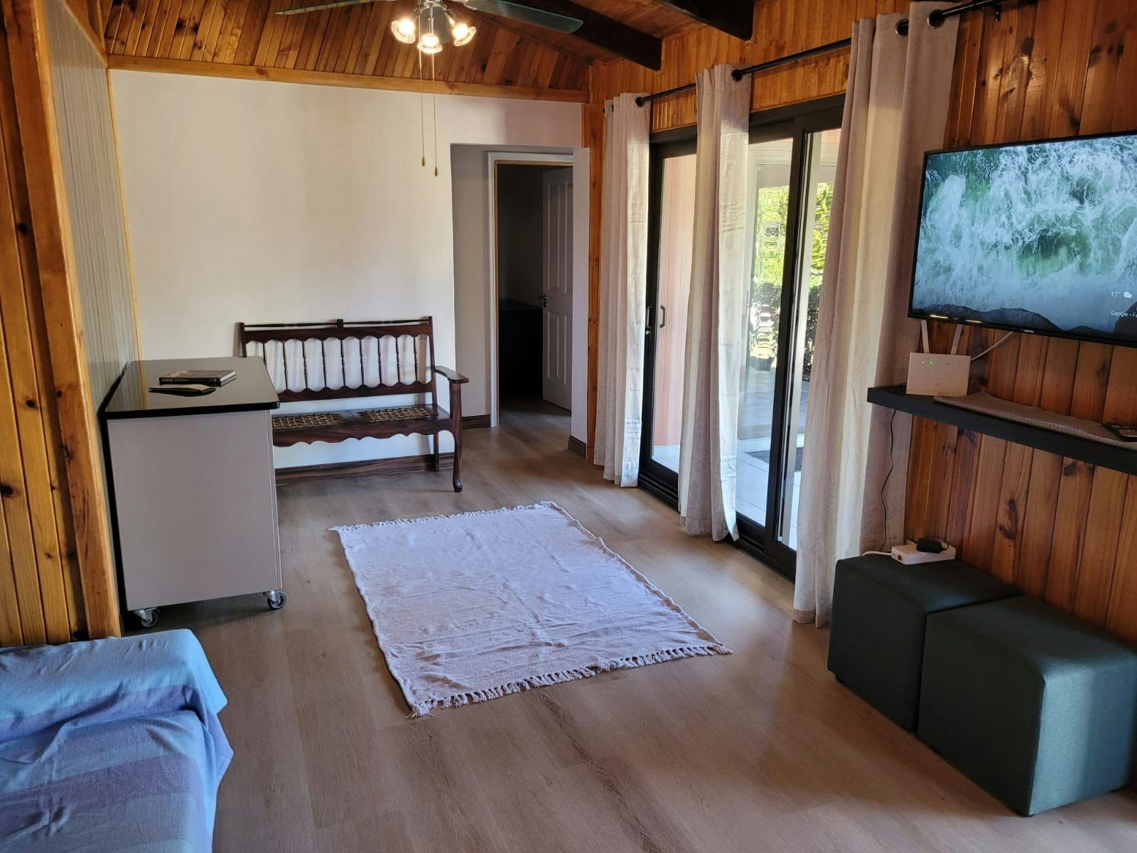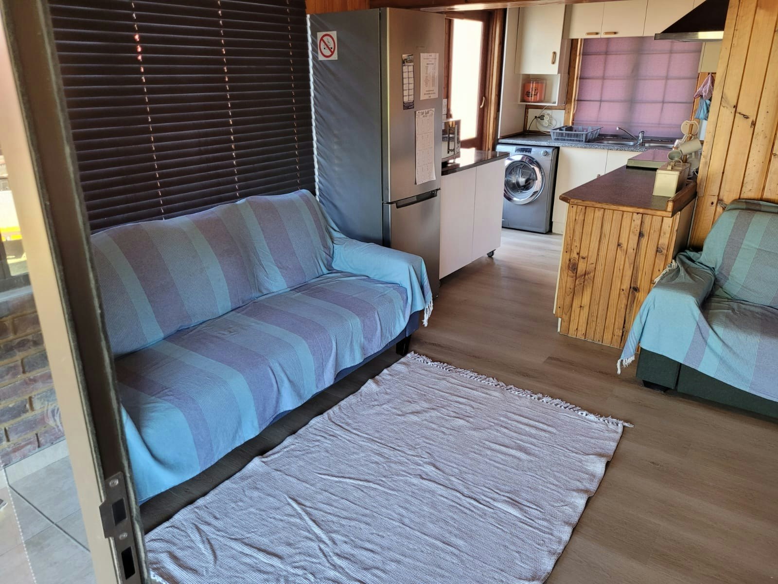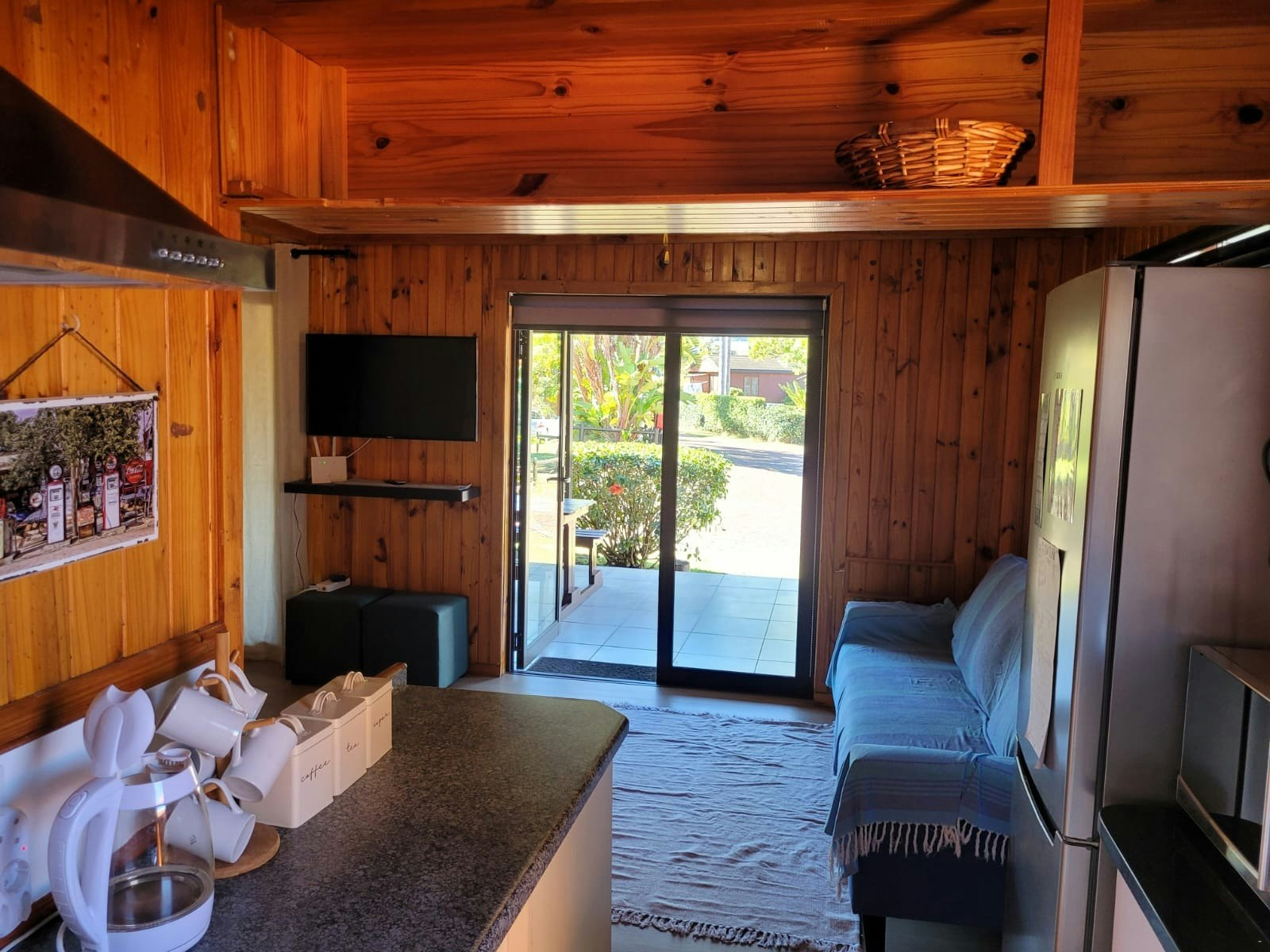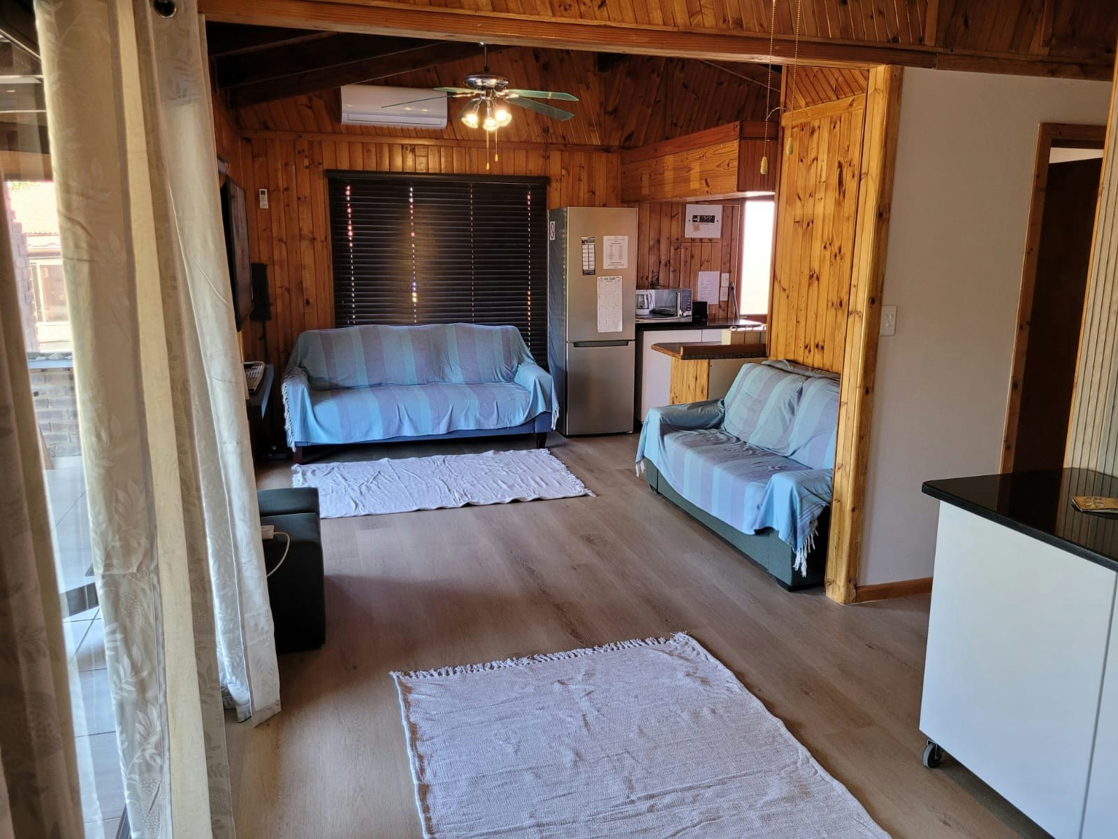 The lounge has a comfy lounge suite, as well as a single sleeper couch for 1 additional guest and a Smart TV with YouTube, use the profile: Dunes guest. WiFi is available.