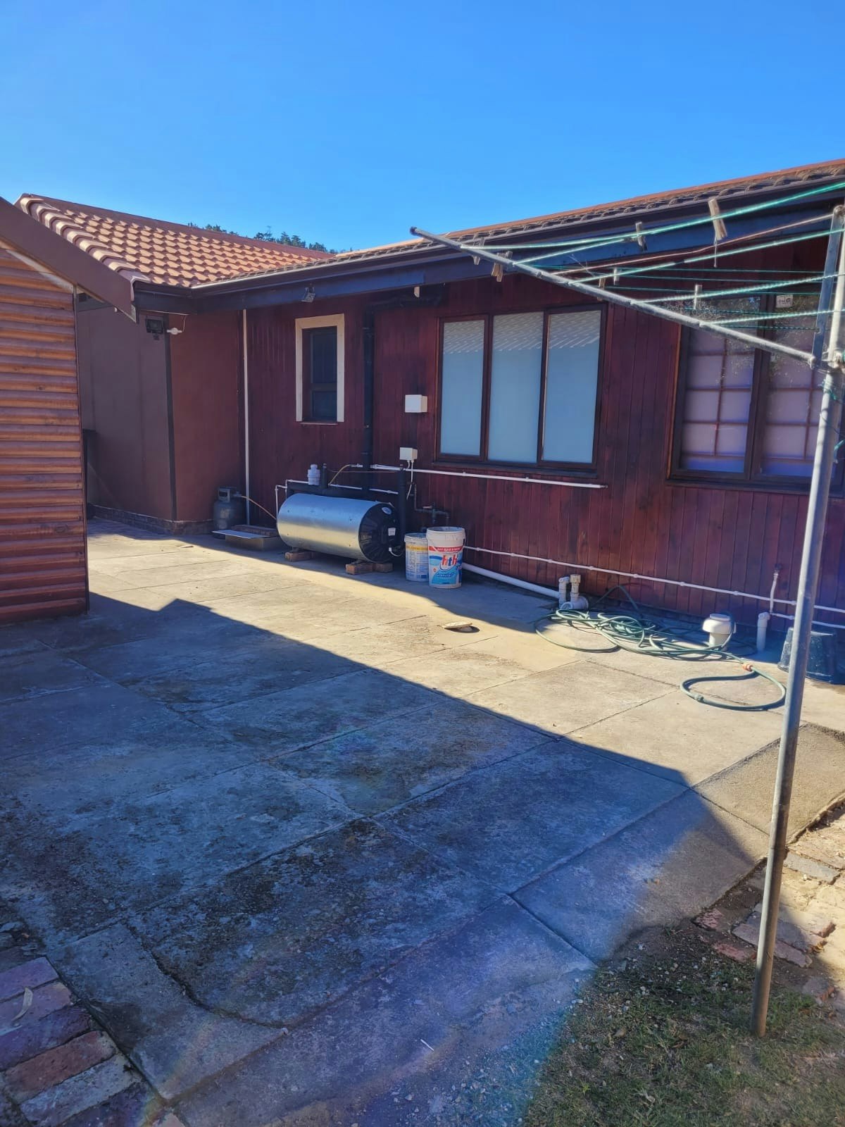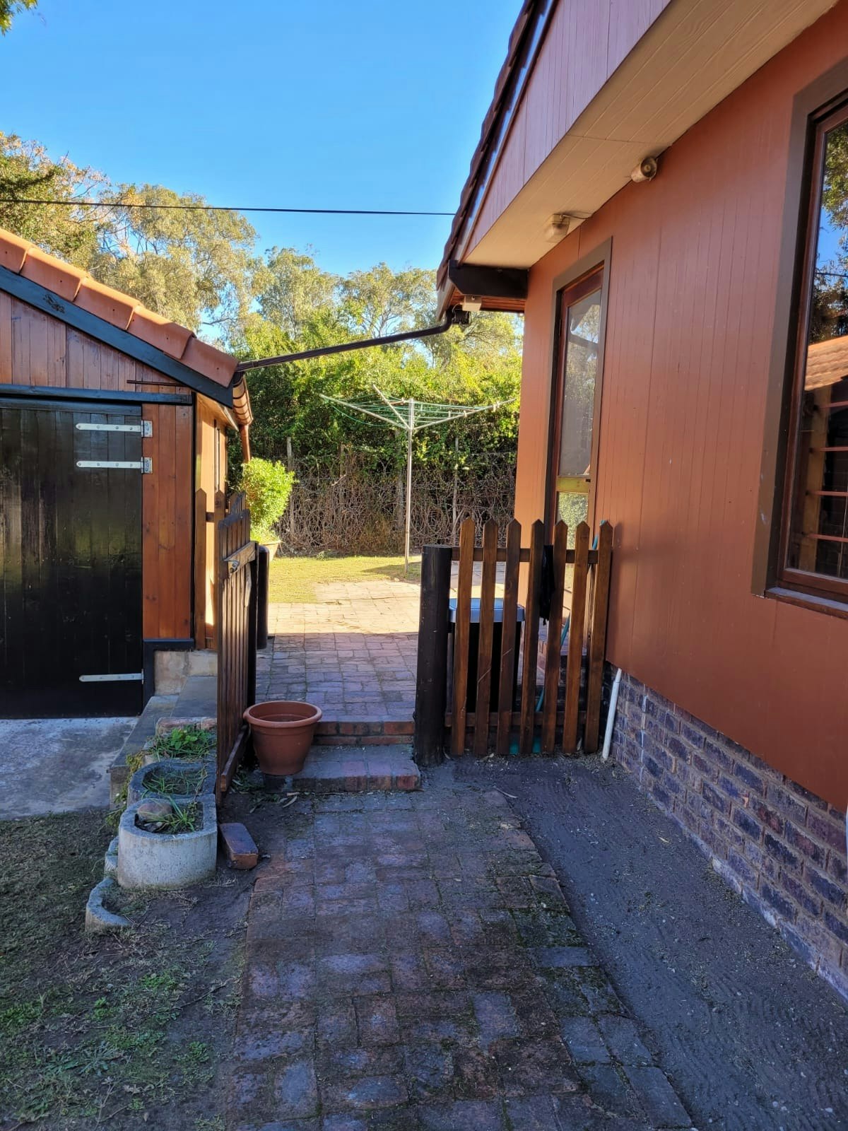 There is an area at the back of the property that is enclosed with wooden fencing for pets.