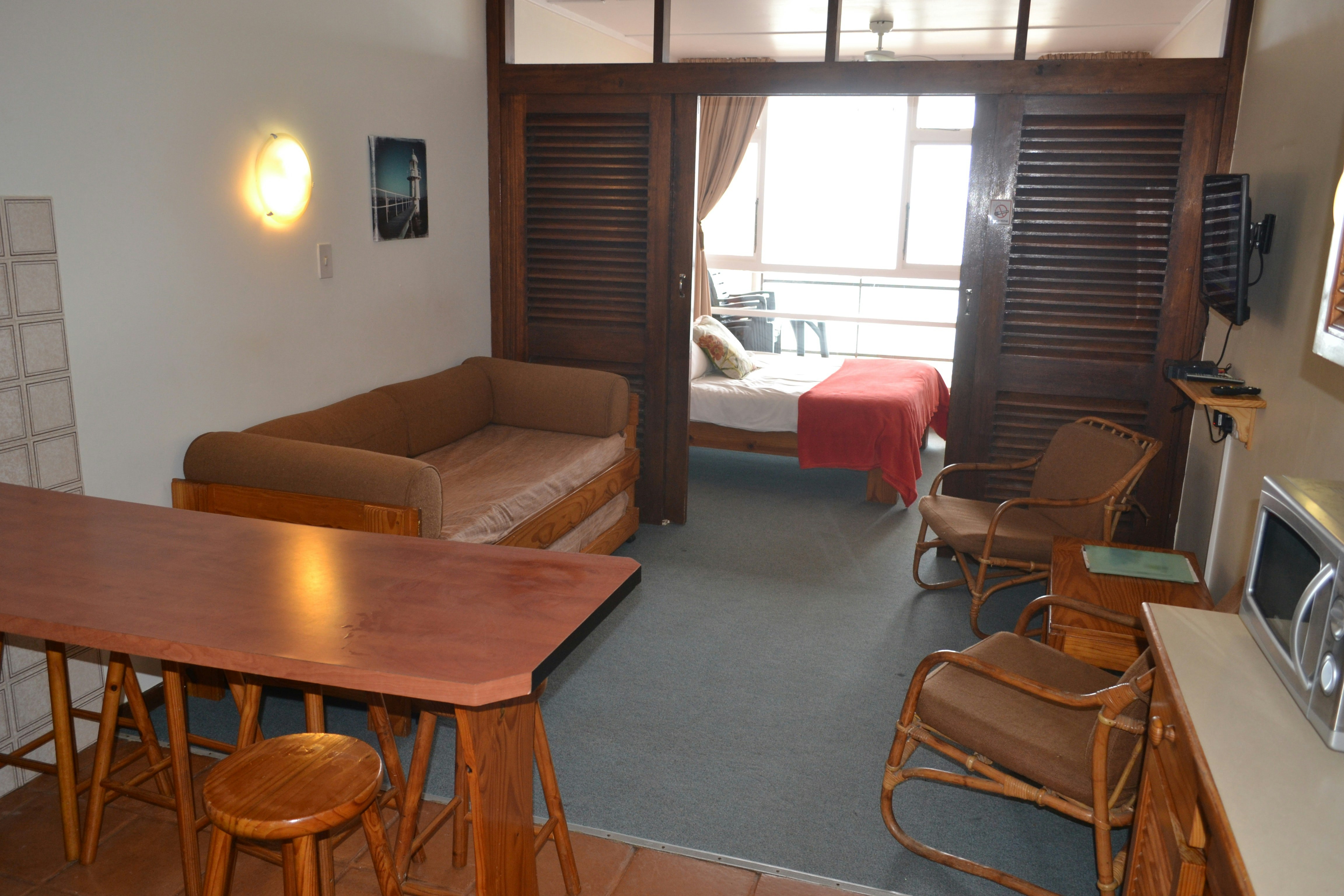 This property, with a private balcony and stunning sea views, can accommodate up to 4 adults and 2 children. The main bedroom is furnished with a double bed, and the second bedroom has 2 single beds. Both bedrooms have ceiling fans. The lounge area has 2 pull-out single beds suitable for 2 children. The bathroom is fitted with a toilet, basin and shower. The kitchen is equipped with a free-standing stove, oven, microwave, fridge, kettle and toaster. The lounge features a wall-mounted TV with the EasyView DStv bouquet included.