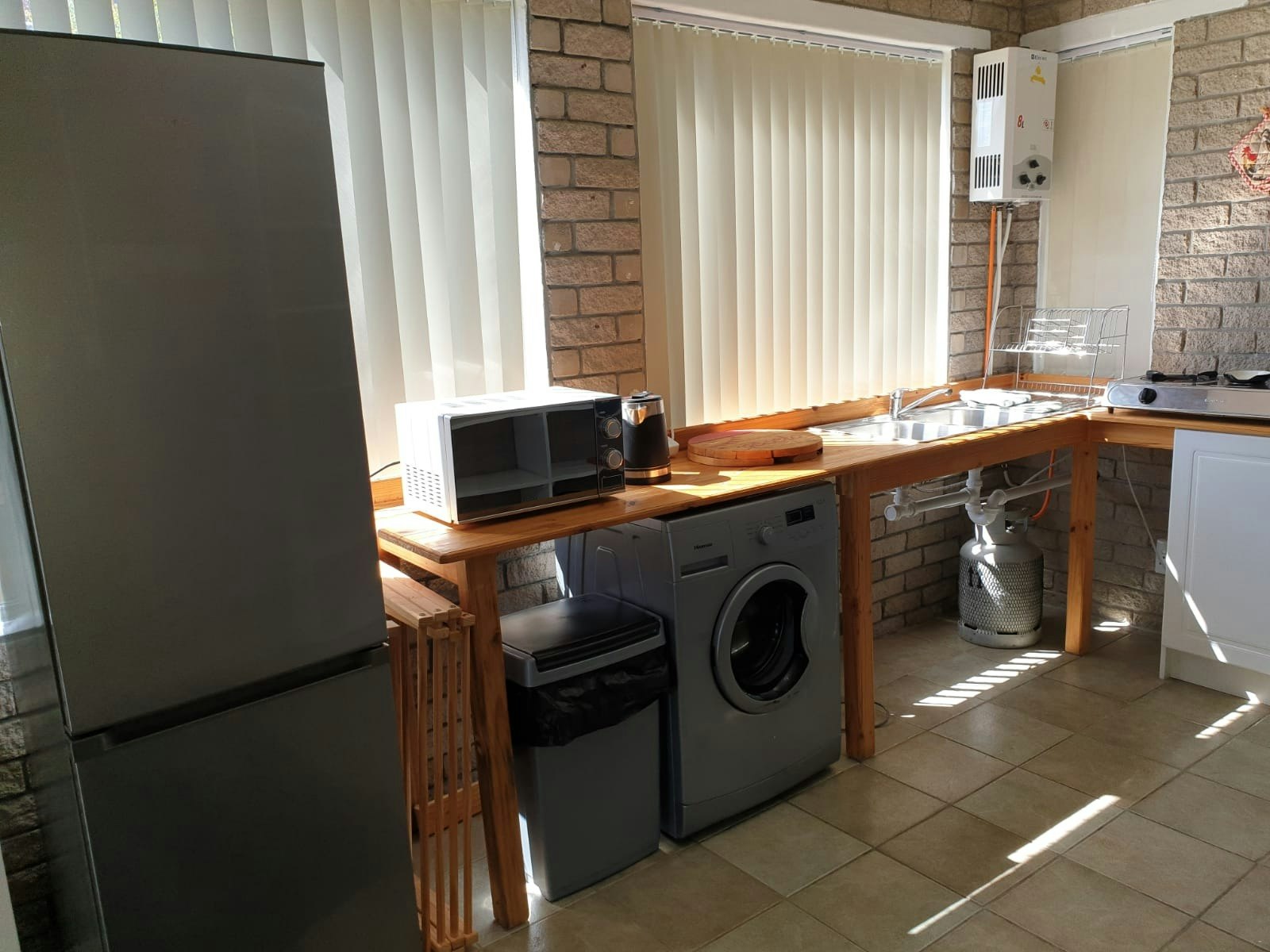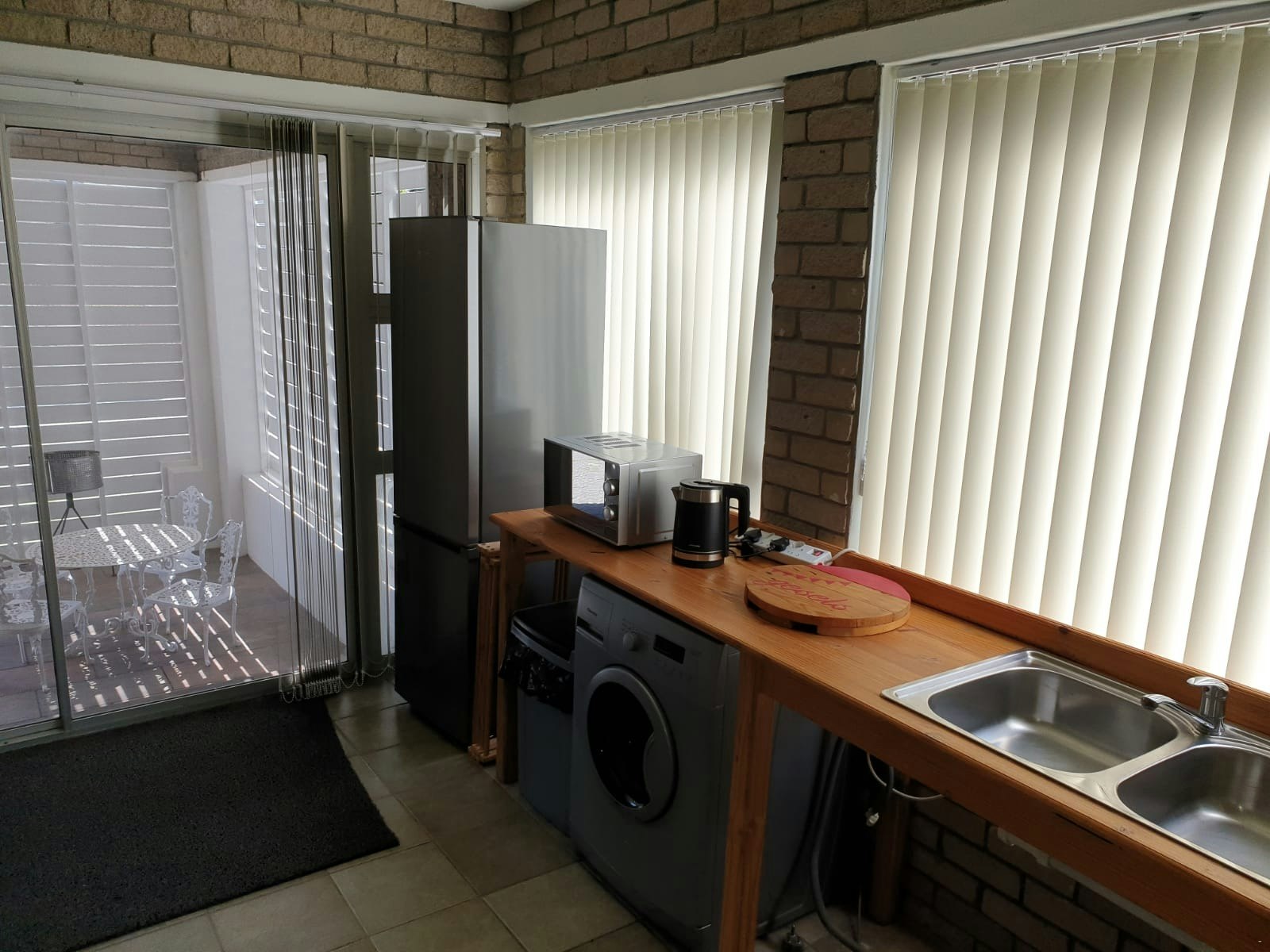 Die oopplan-leefarea sluit 'n TV met Netflix en Showmax in, en die goed toegeruste kombuis bevat 'n yskas-vrieskas, mikrogolfoond, tweeplaat-gasstoof en 'n volledige verskeidenheid breekware, eetgerei, gereedskap, potte en panne. Die eenheid maak oop na 'n patio met 'n braai-area, ideaal vir buite-etes en ontspanning. Buiteparkeerplek is op die perseel beskikbaar.