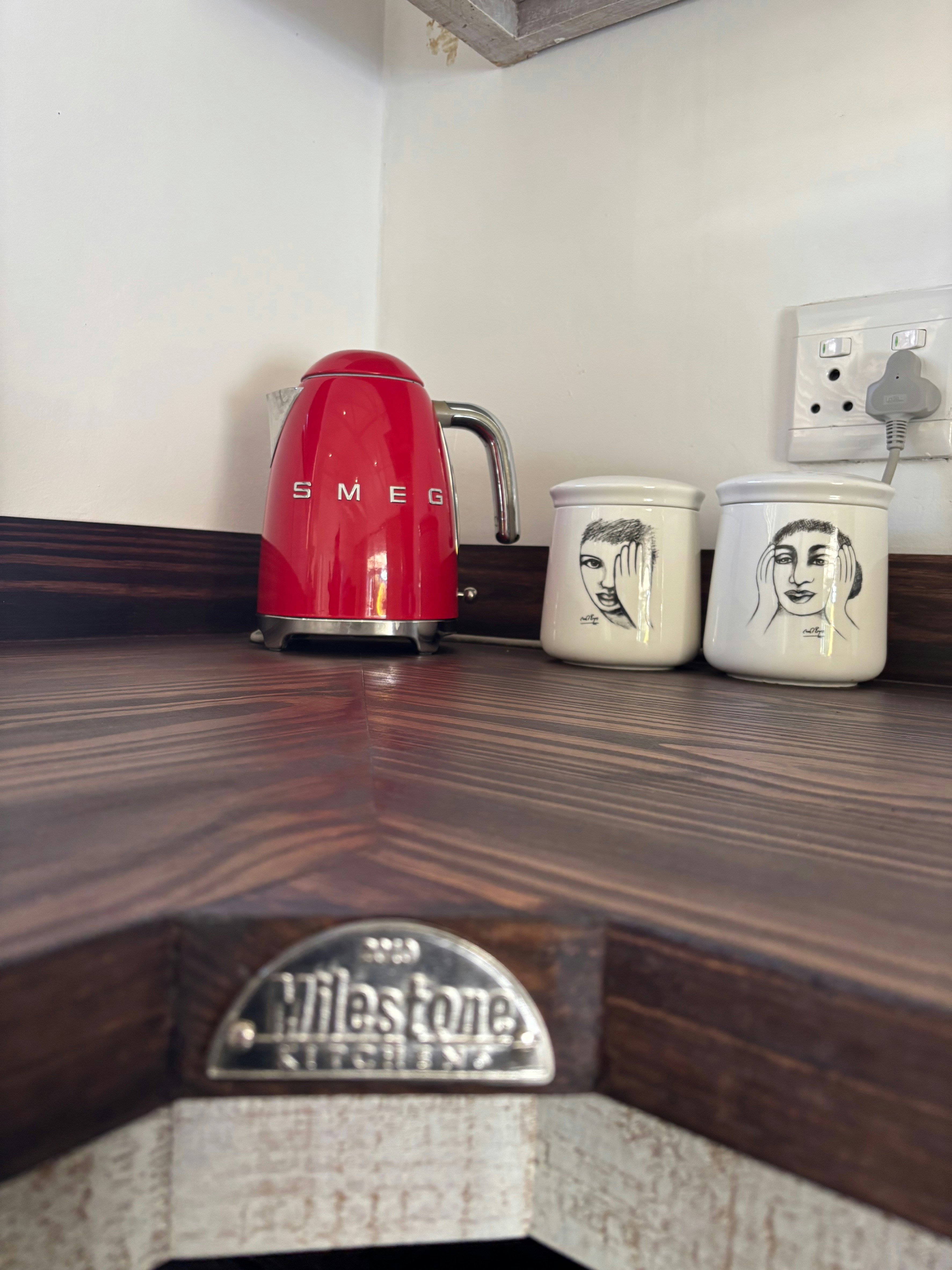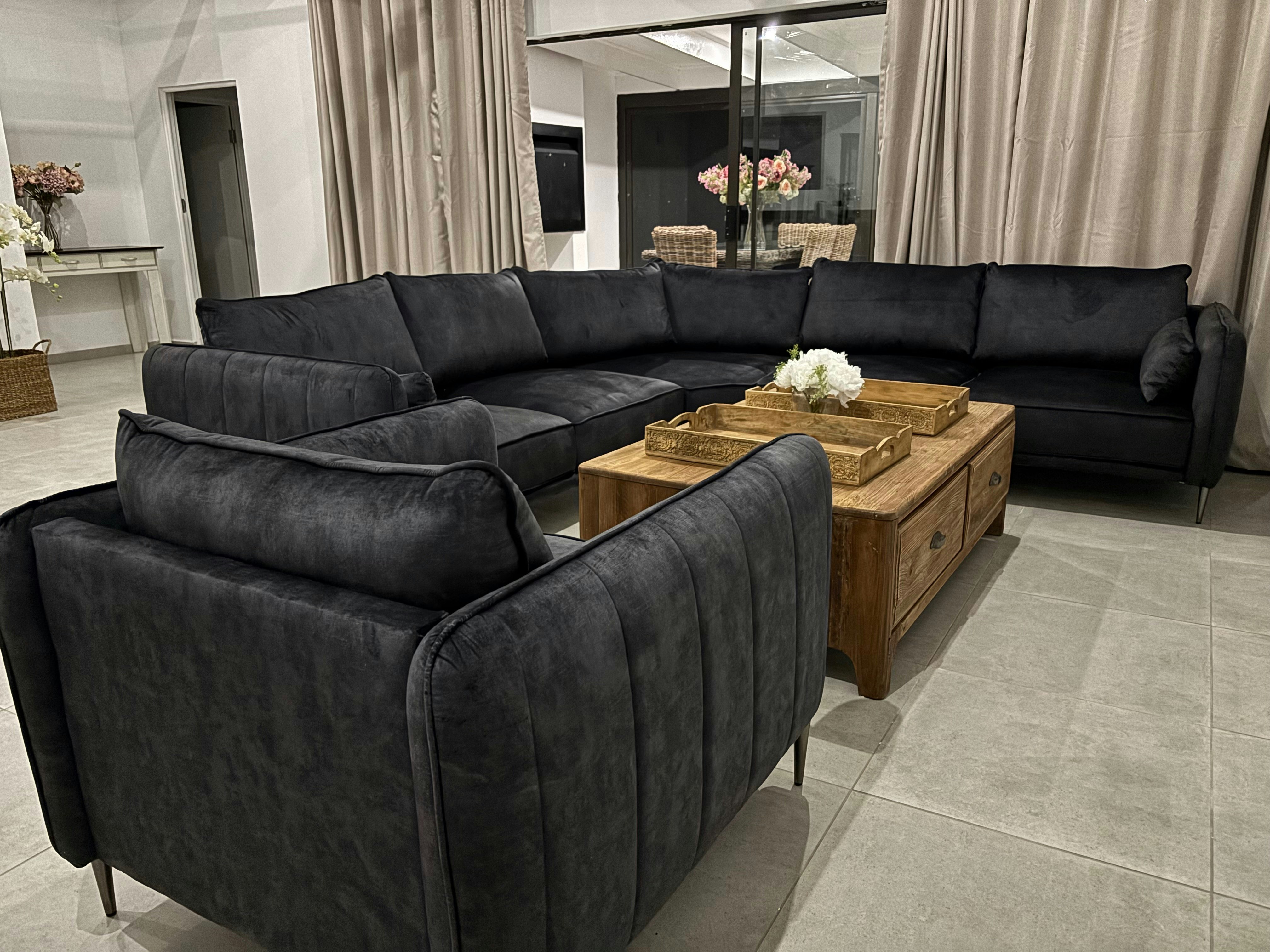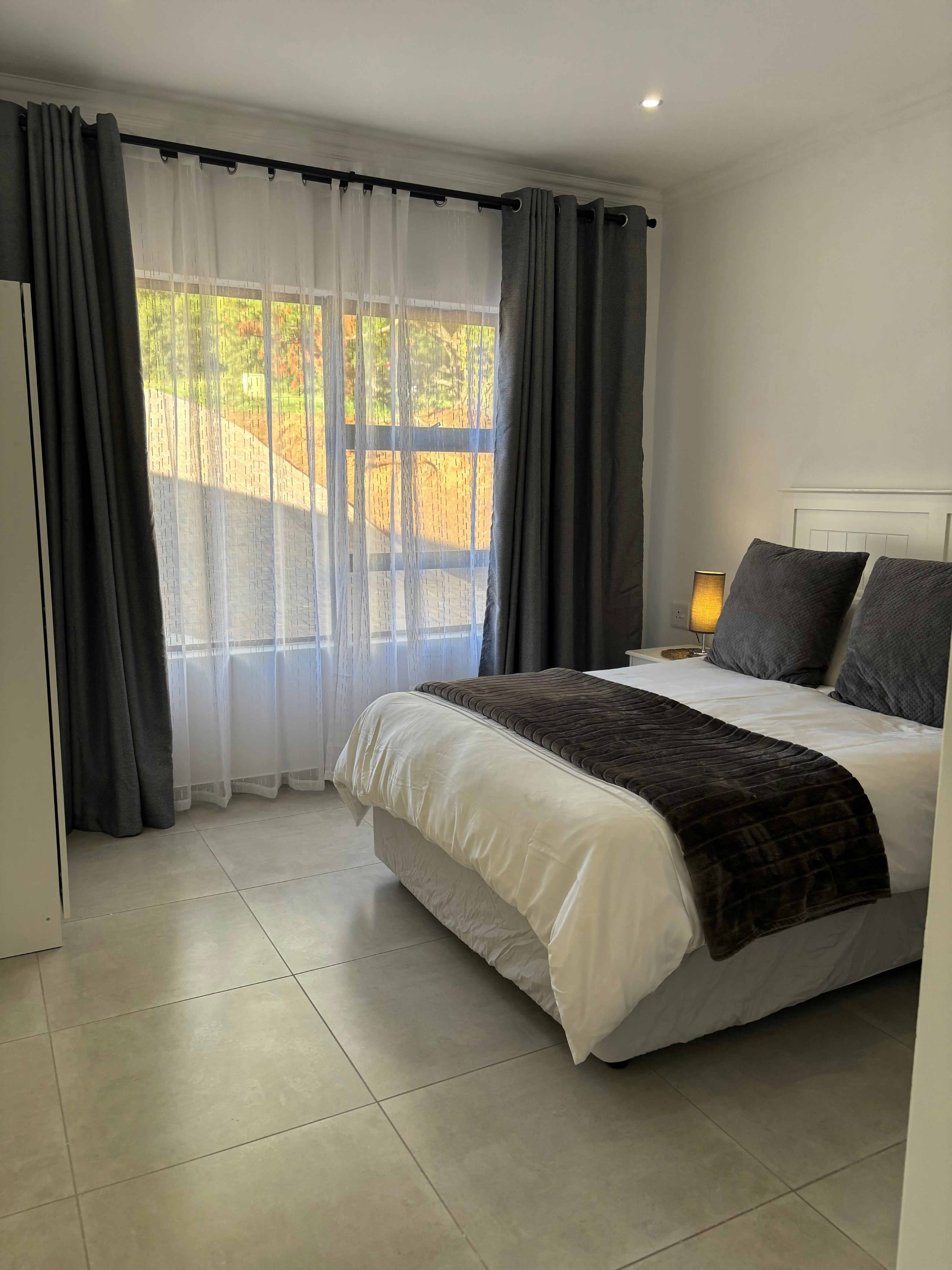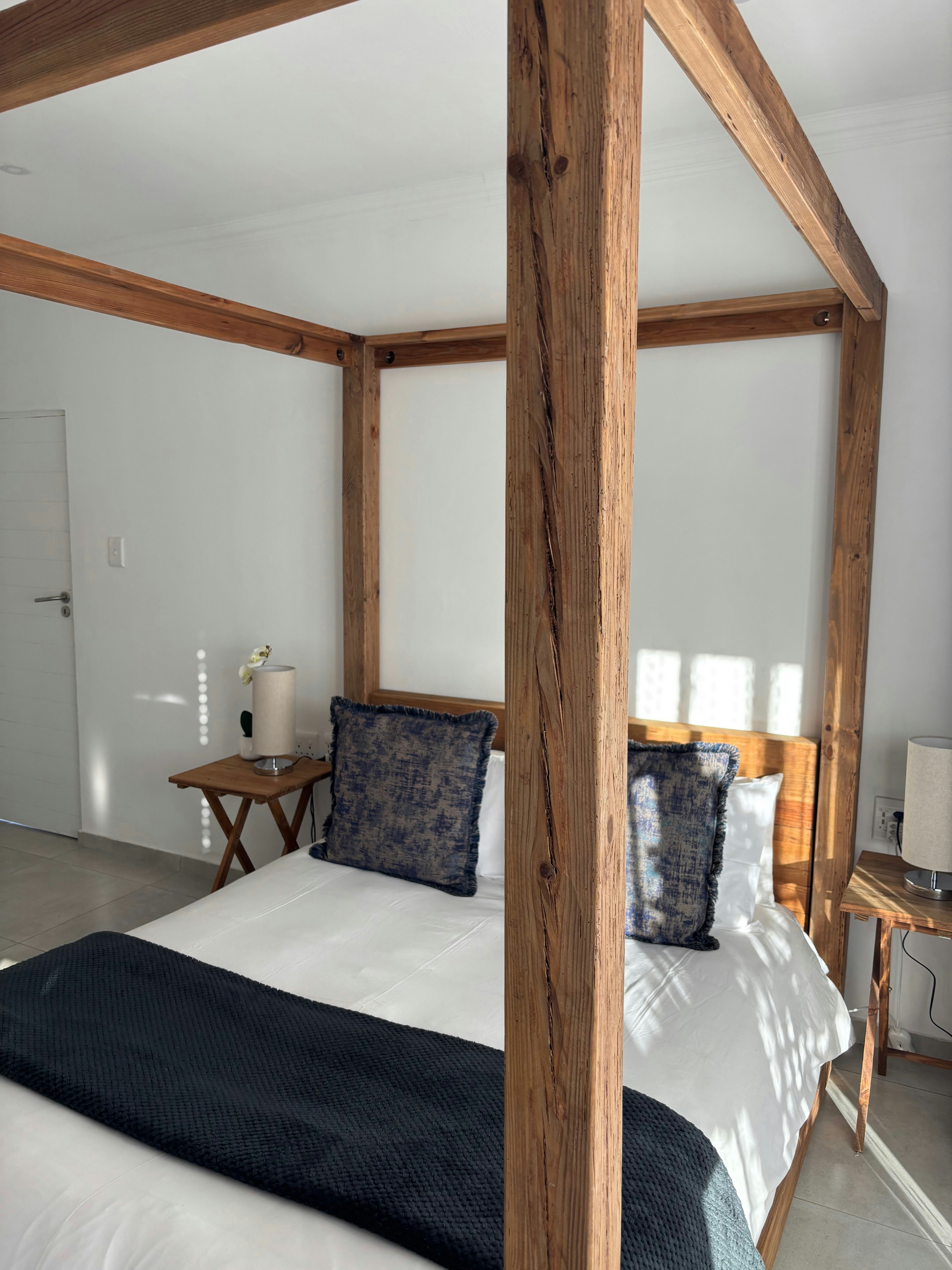 The living area features an open-plan design with a fully equipped kitchen, including a gas stove, oven, microwave, Nespresso machine, fridge-freezer, cutlery, and crockery. The lounge area is furnished with comfortable seating and offers breathtaking views from every angle, as well as a smart TV with Netflix and Showmax, along with free Wi-Fi facilities.