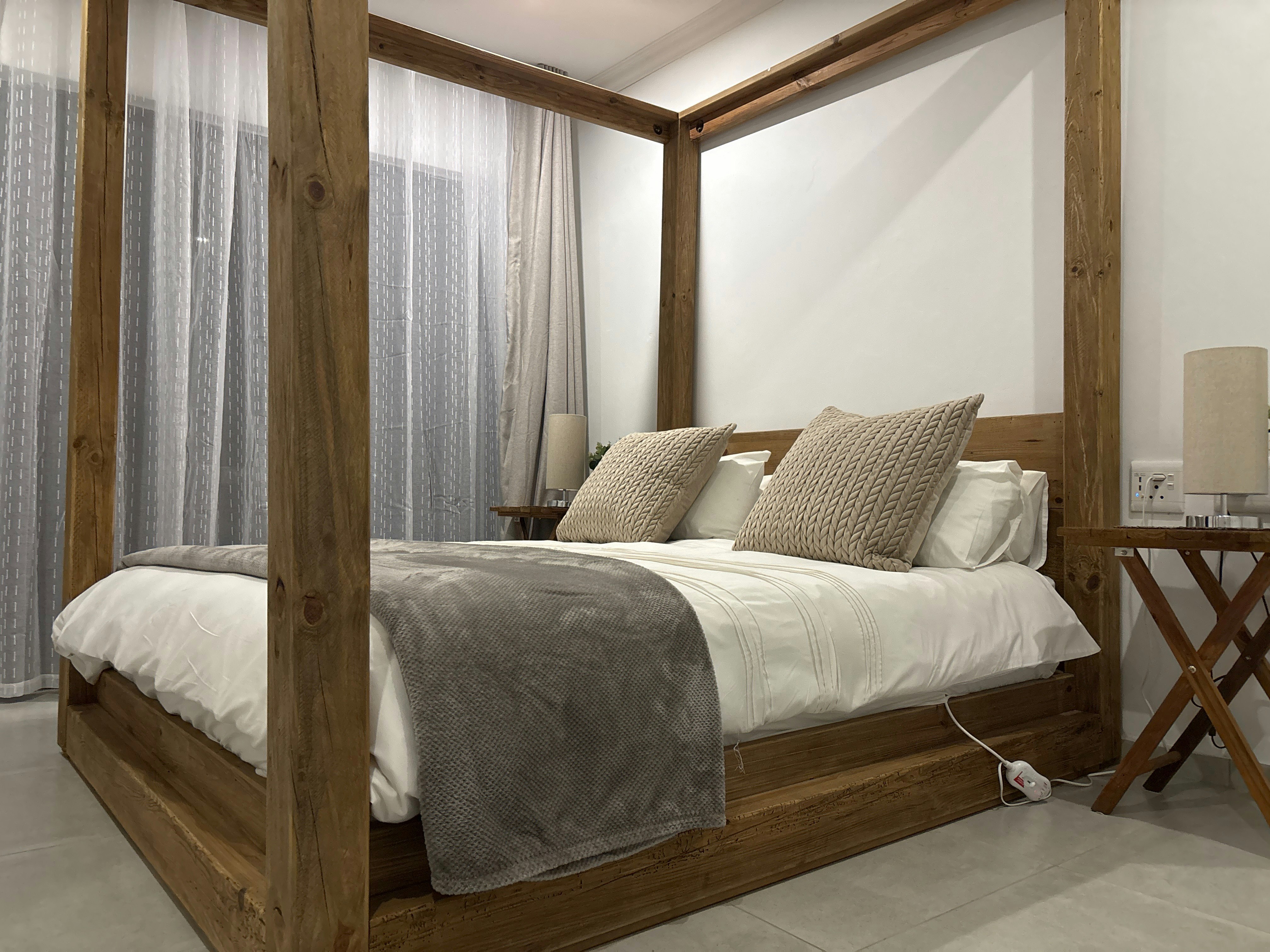 This unit can accommodate 6 guests and comprises 3 bedrooms and 3 bathrooms. All bedrooms are furnished with queen-size beds and have en-suite bathrooms fitted with a shower, washbasin, and toilet, one of which includes a bath.