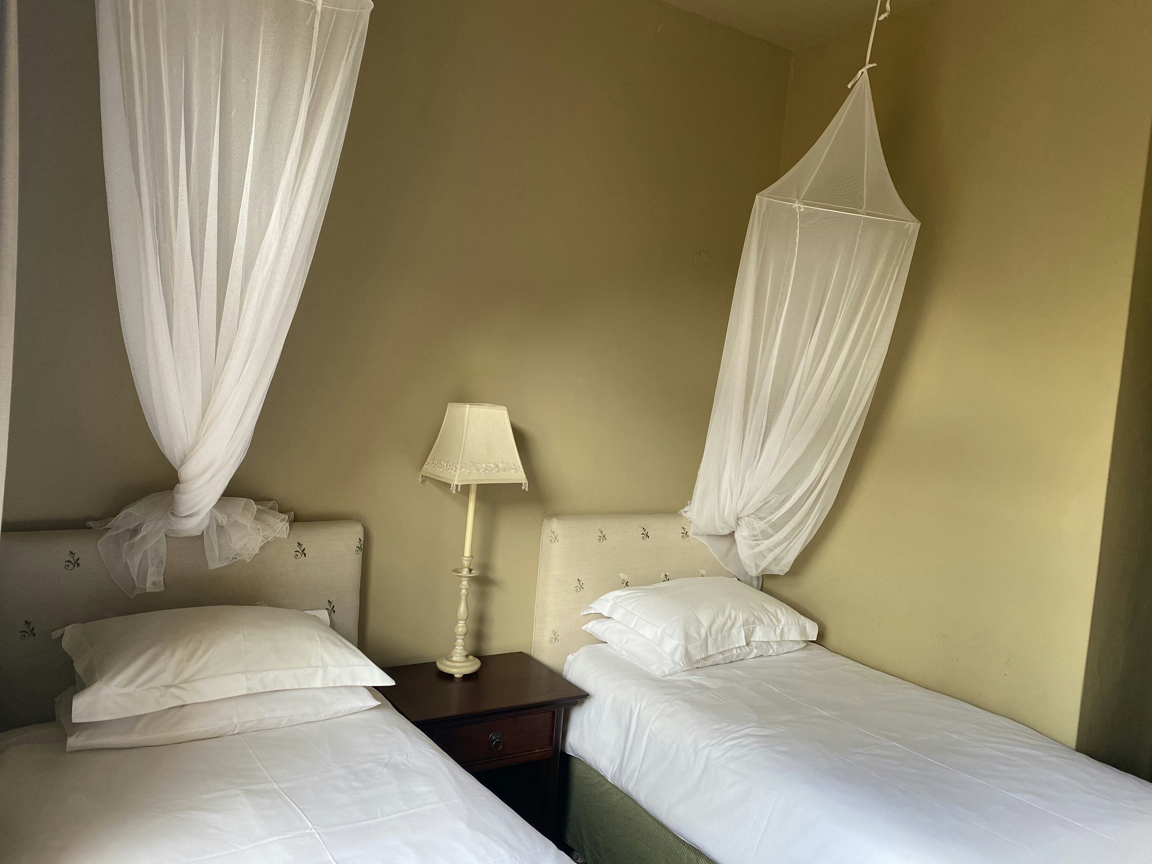 Die eerste en tweede slaapkamers bevat elk 'n koninggrootte bed en 'n en suite-badkamer met 'n gesonke bad, buitestort, binnestort en geslote toilet. Die derde slaapkamer bevat 'n dubbelbed en 'n en suite-badkamer met 'n gesonke bad, 'n toilet en 'n wasbak. Die vierde slaapkamer bevat 'n dubbelbed en 'n slaapbank. Die vyfde, sesde en sewende slaapkamers bevat elk 2 enkelbeddens. Hierdie kamers het toegang tot 'n badkamer met 'n stort, 'n toilet en 'n wasbak. 6 van die kamers het lugversorging.