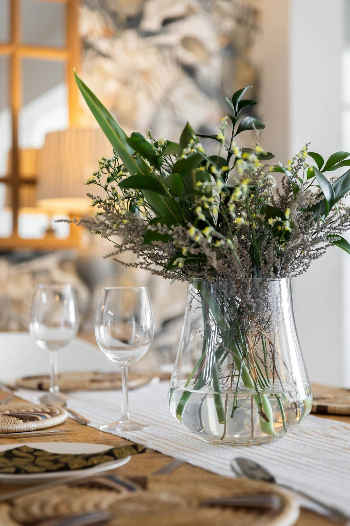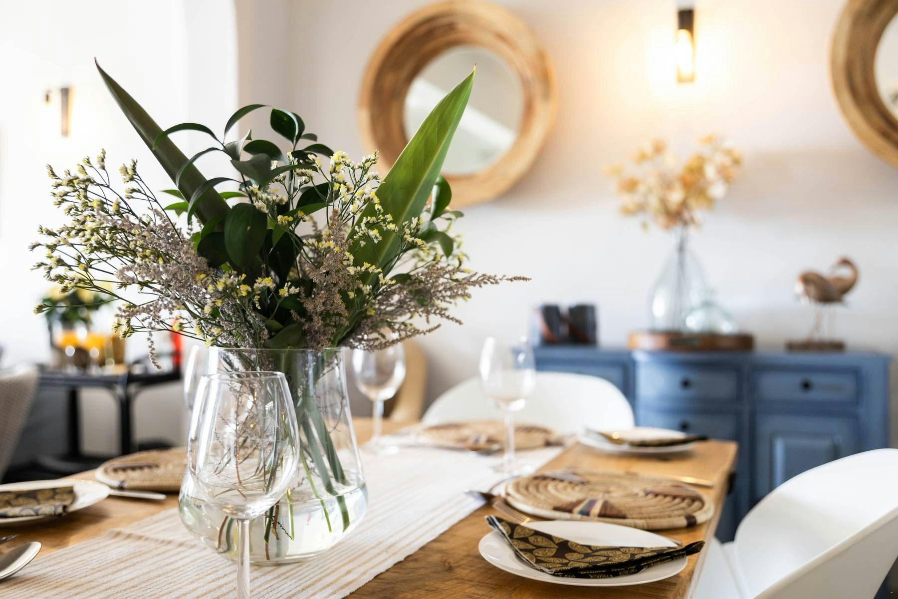 Die oopplan-leefarea met lugversorging beskik oor 'n kombuis wat volledig toegerus is met 'n stoof, oond, mikrogolfoond, yskas-vrieskas, Nespresso-masjien, eetgerei en breekware, asook 'n ontbyttoonbank met stoele. Vanuit die kombuis is 'n eetkamertafel waar gaste hul maaltye saam kan geniet. Die sitkamer het gemaklike sitplek en 'n platskerm-TV met DStv. Toegang tot gratis WiFi is beskikbaar.