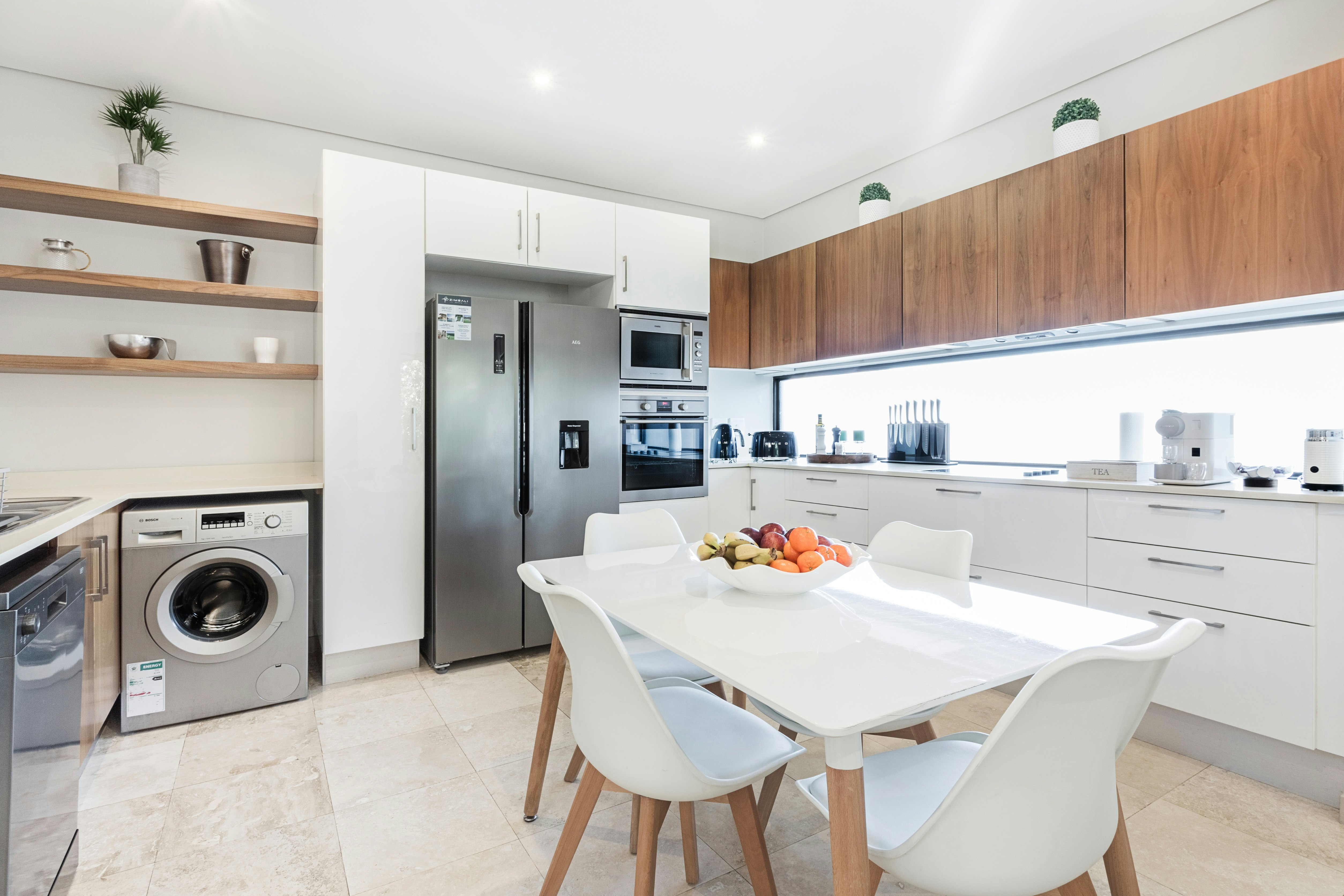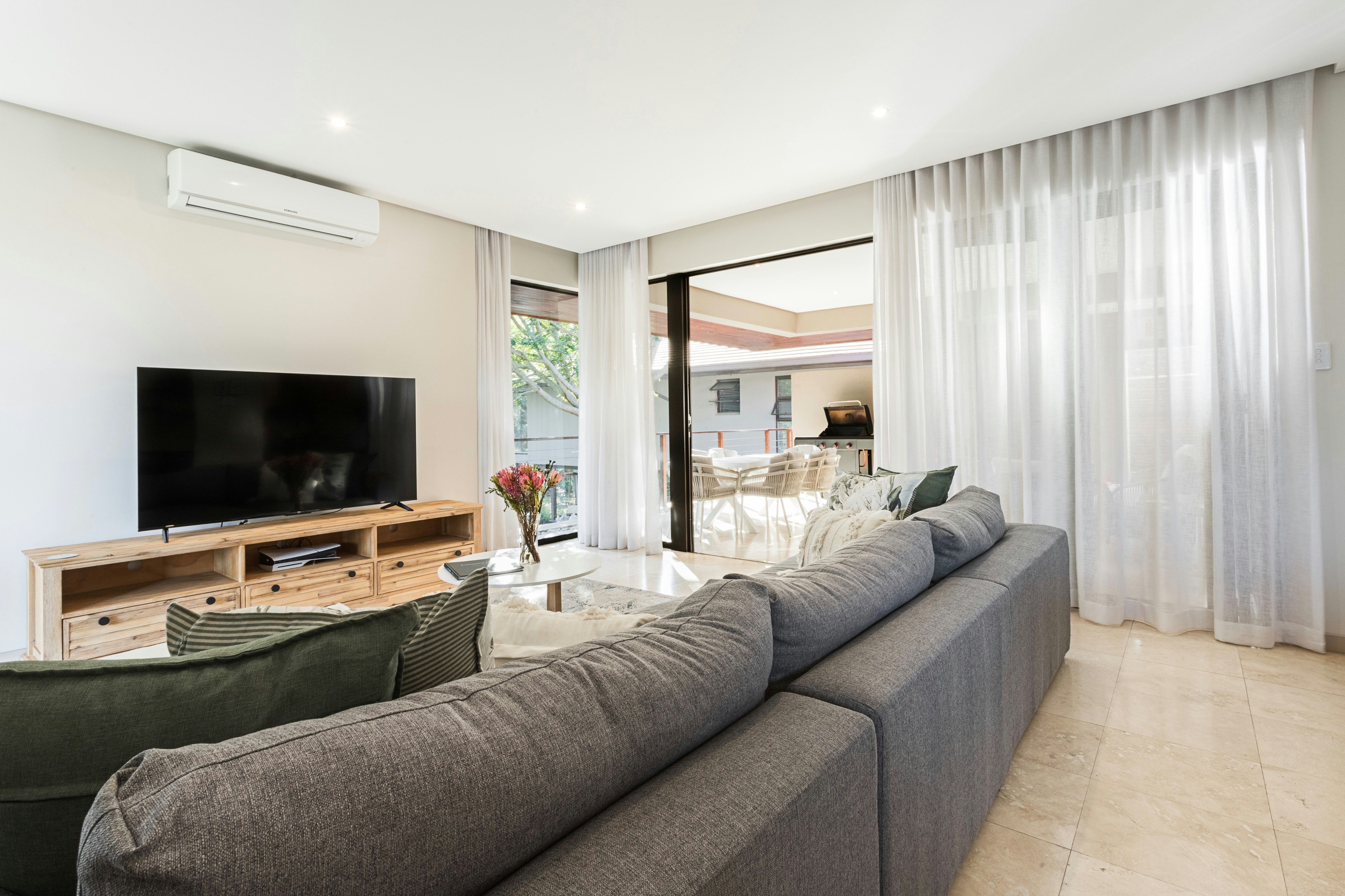 Die oopplan-leefarea bied 'n verwelkomende ruimte met gemaklike sitplek, 'n TV, 'n eetkamertafel en 'n volledig toegeruste kombuis. Die kombuis sluit 'n yskas-vrieskas, stoof, oond, mikrogolfoond, wasmasjien, skottelgoedwasser en tee- en koffiemaakgeriewe in. Vir ekstra gemoedsrus tydens kragonderbrekings, is die huis toegerus met 'n omsetter. Buite kan gaste op die patio ontspan en die braaigeriewe geniet, perfek vir ontspanne aande na 'n dag van verkenning. Die eenheid is nie op die grondvloer nie, en trappe lei gaste na die eerste verdieping.
