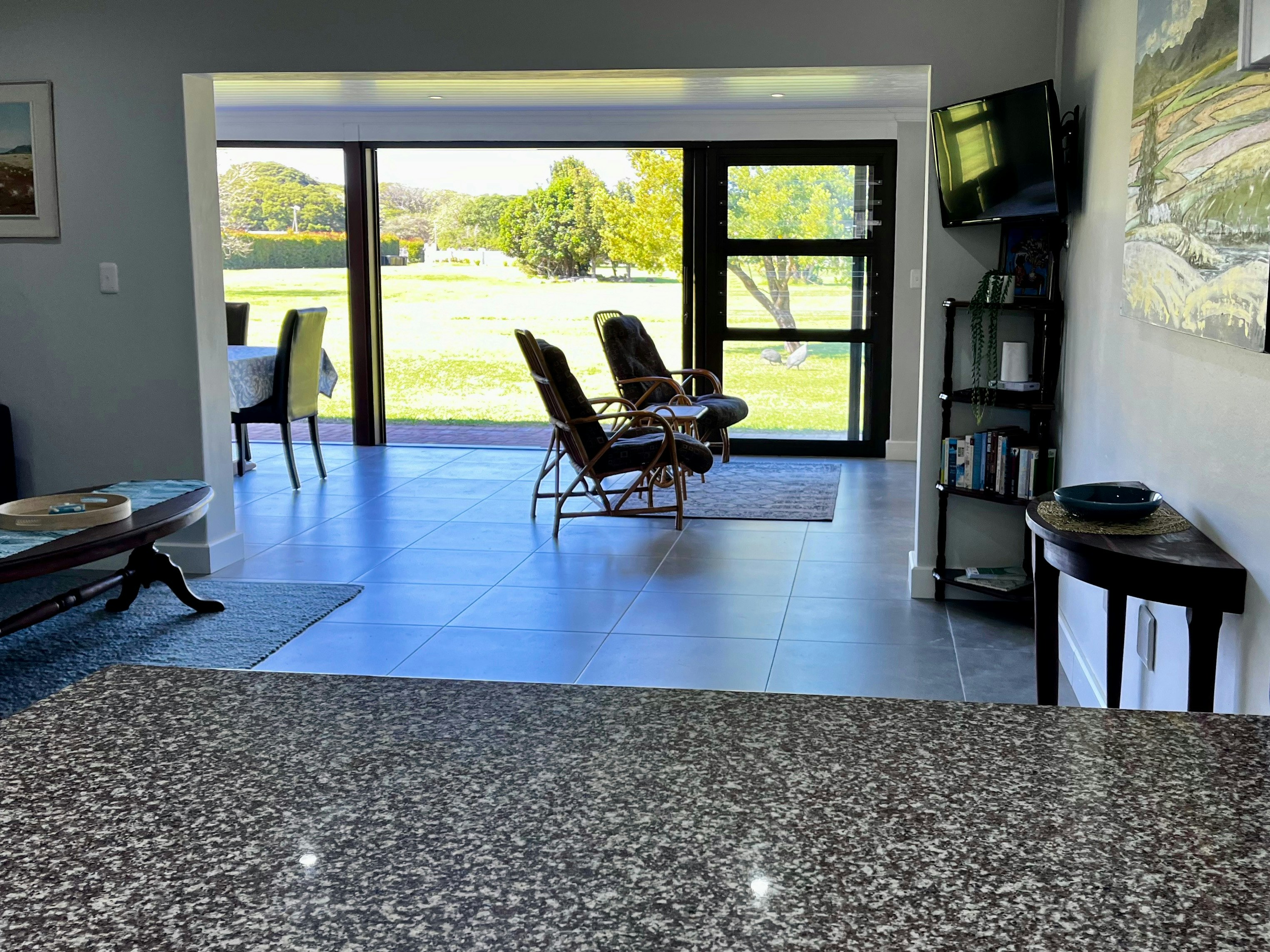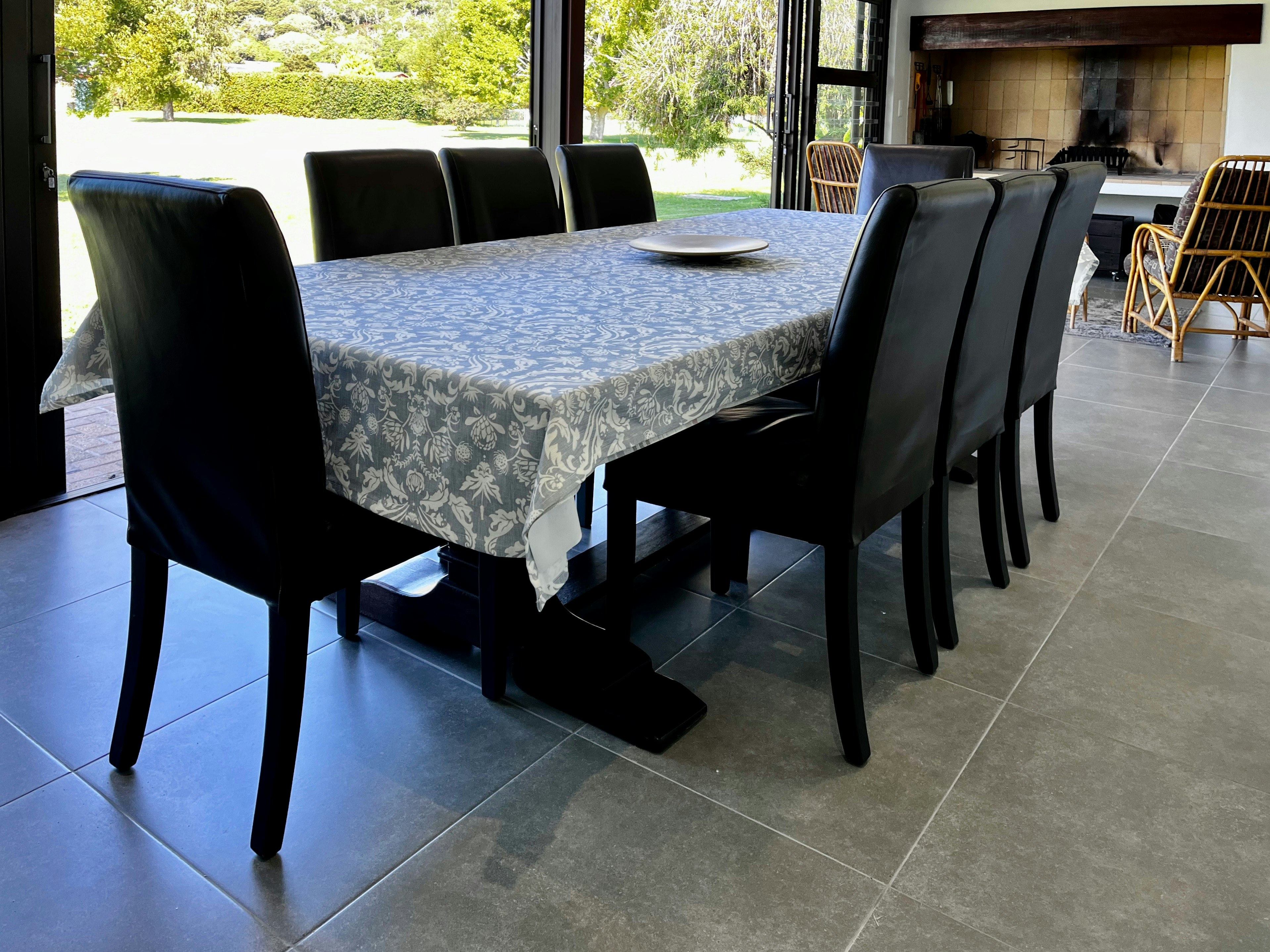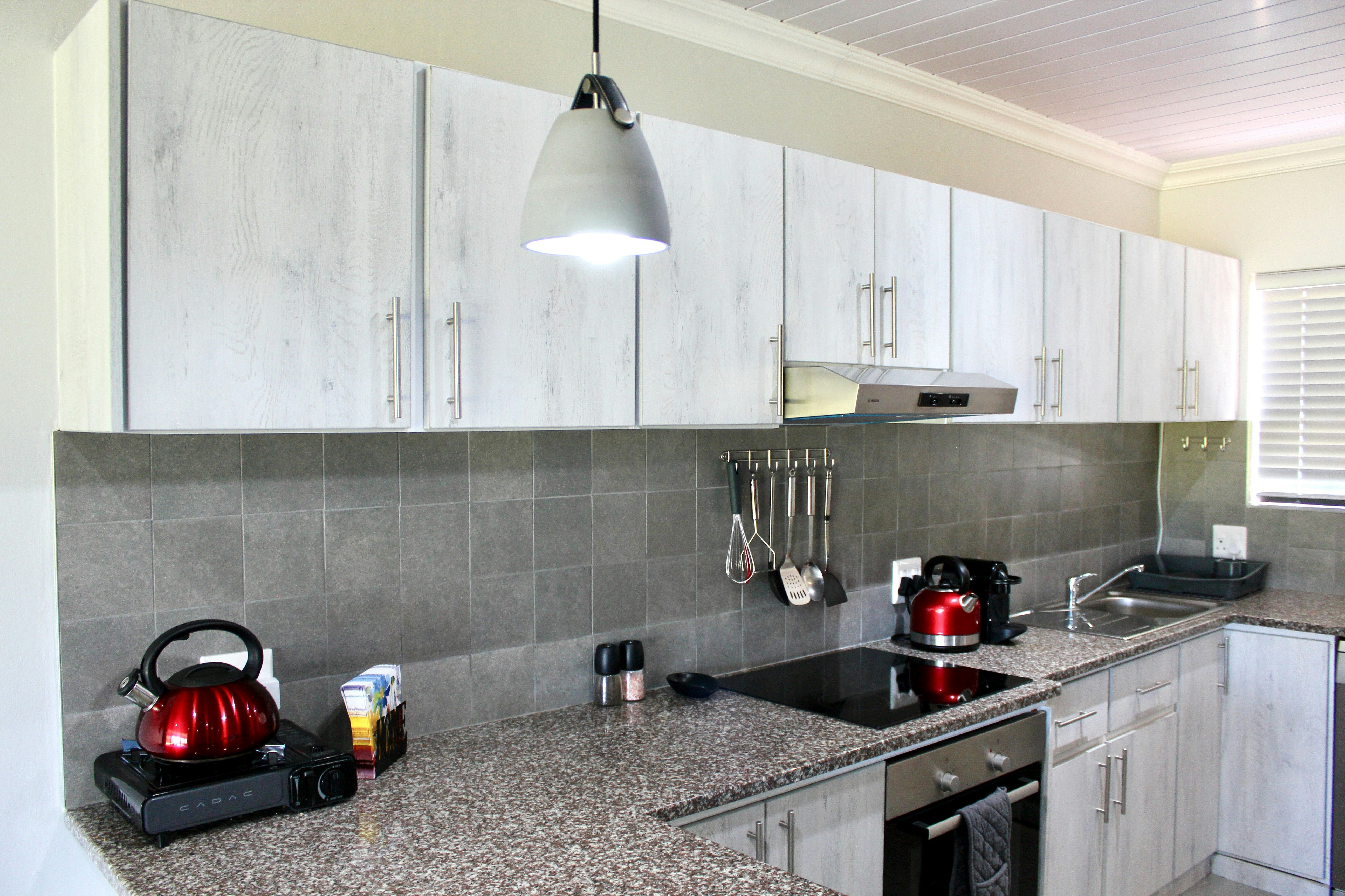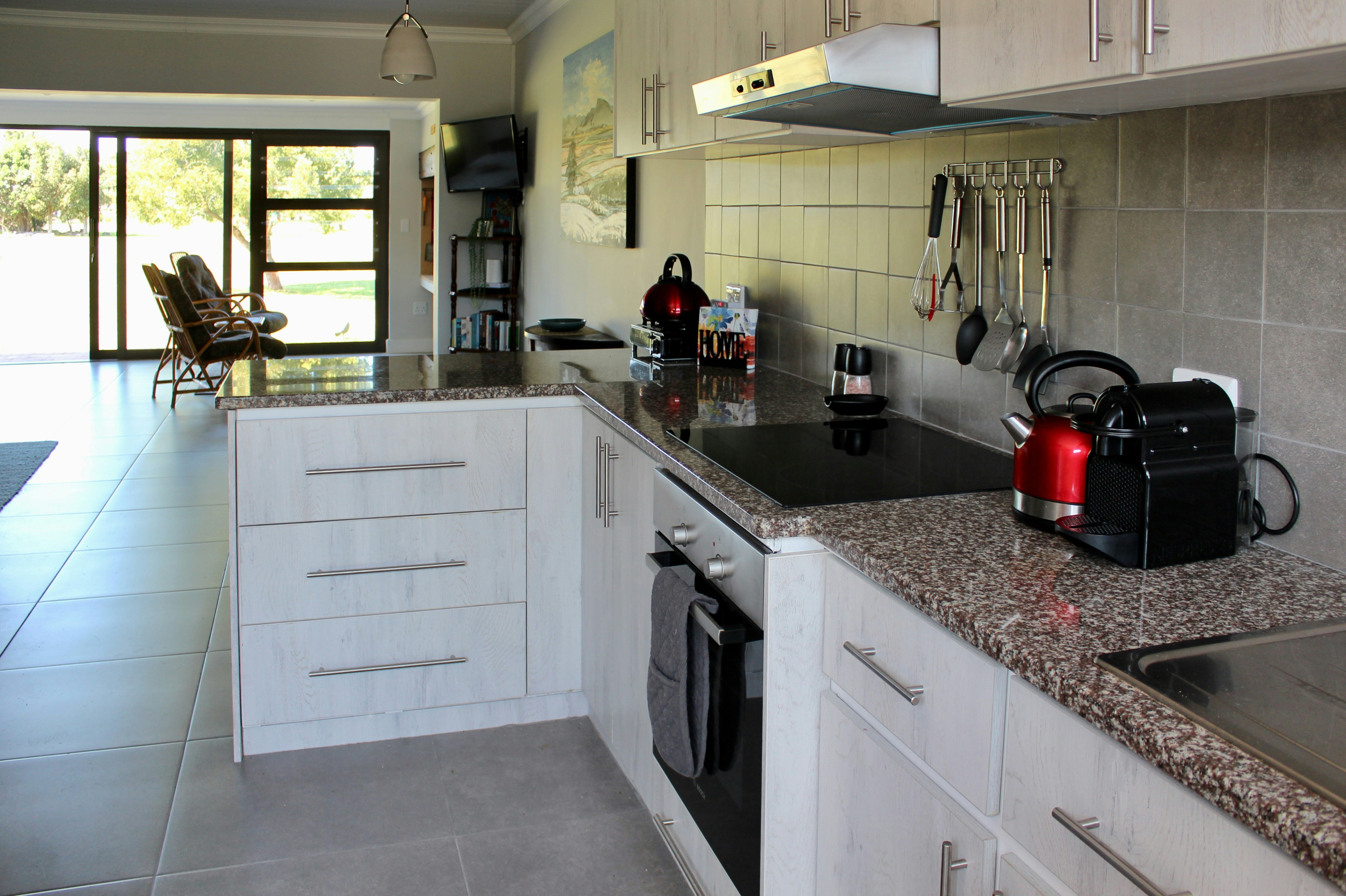 Die kombuis is volledig toegerus vir selfsorg met 'n skottelgoedwasser, stoof, oond, yskas-vrieskas, 'n mikrogolf, Nespresso-masjien, breekware en eetgerei. Daar is ook 'n ontbyttoonbank met stoele. Die eetarea het sitplek vir 8 gaste en die sitkamer het 'n gerieflike sitkamerstel en 'n TV met DStv. Daar is 'n binnebraai met 2 stoele.