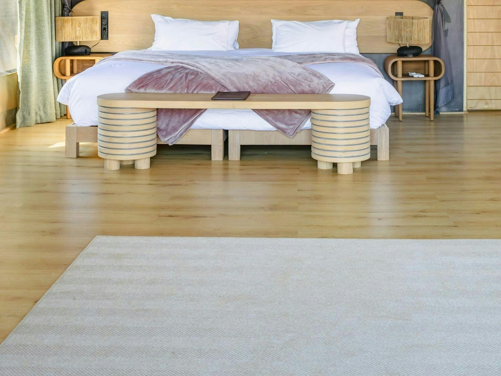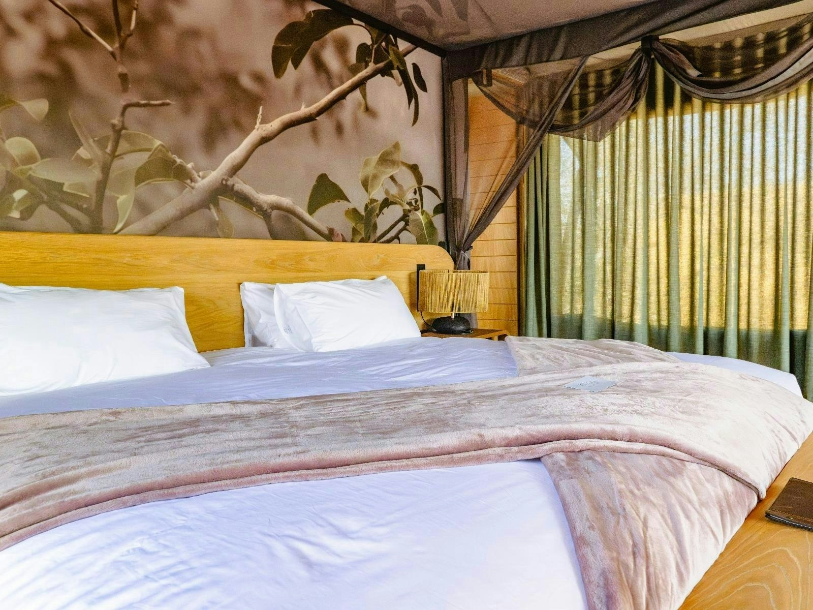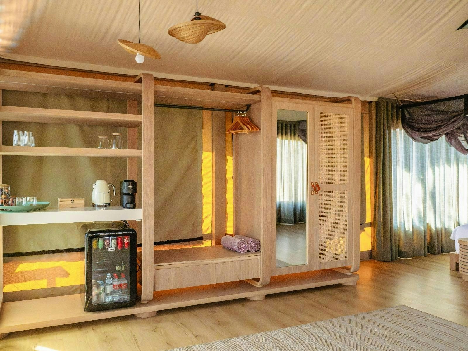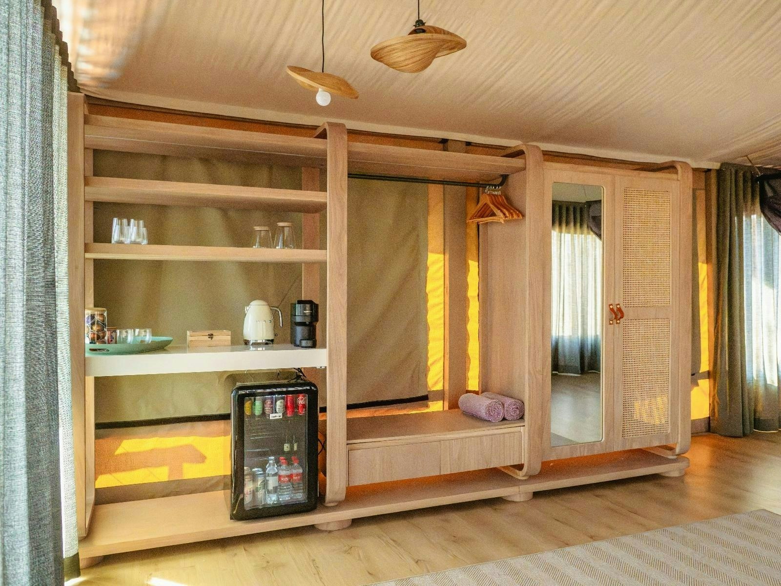 Die akkommodasie bestaan uit 9 luukse tent-suites, elk ontwerp om 2 tot 4 gaste te akkommodeer. Die suites is ruim, 100 m² groot, hoog bo die grond verhef en bied rustige bosuitsigte. Hulle is gemeubileer met super-koninggrootte beddens en beskik oor 'n dubbelslaapbank geskik vir 2 kinders. Elke suite het 'n en suite-badkamer met 'n dubbelwasbak, stort, bad en ingeslote toilet, sowel as 'n buitestort.