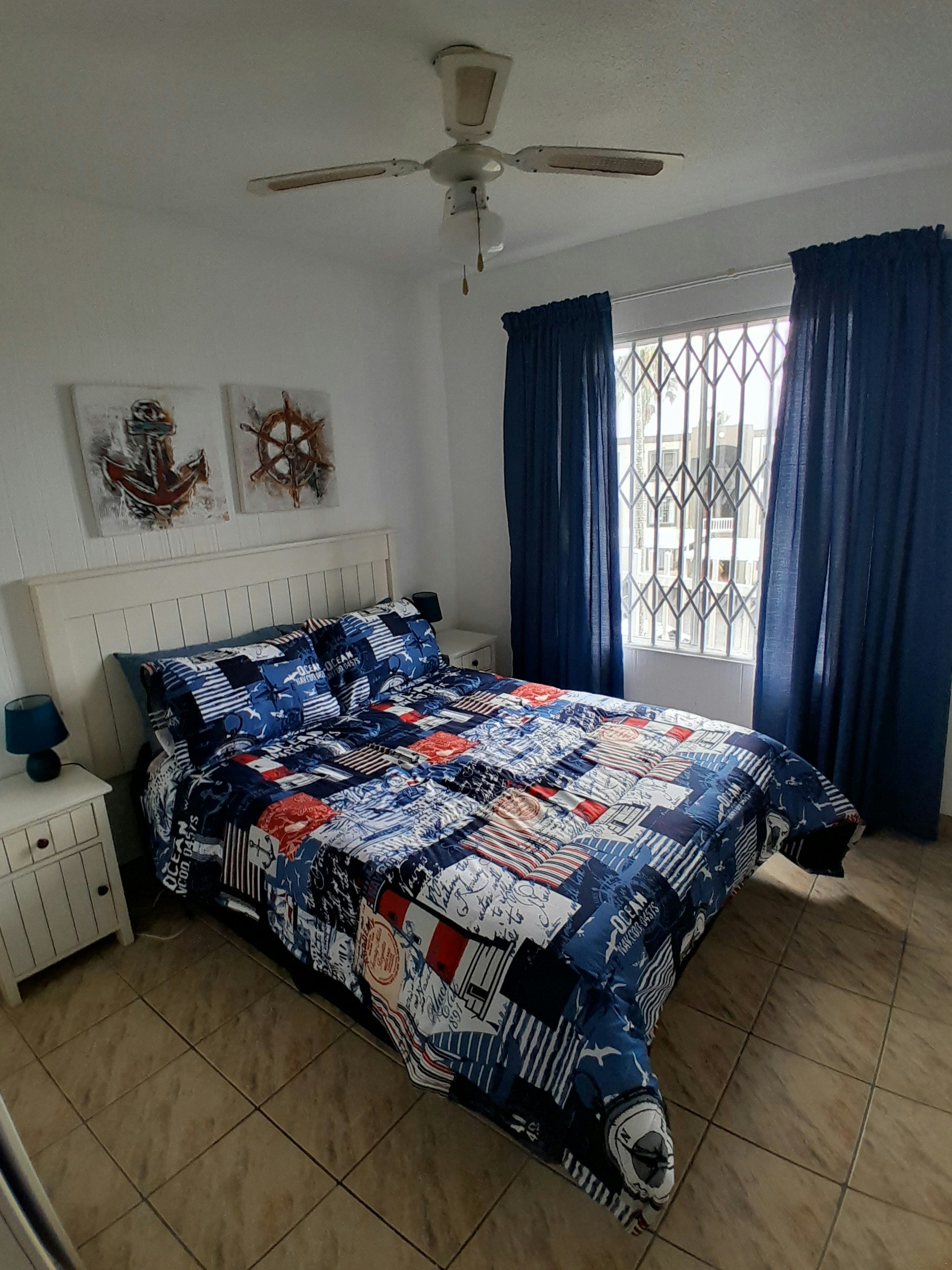 The apartment comprises 2 bedrooms and 2 bathrooms, accommodating 6 guests. The first bedroom is furnished with a queen-size bed, while the second bedroom has 2 single beds. There is also a double sleeper couch available. The first bathroom is fitted with a shower, and the second bathroom with a bath.