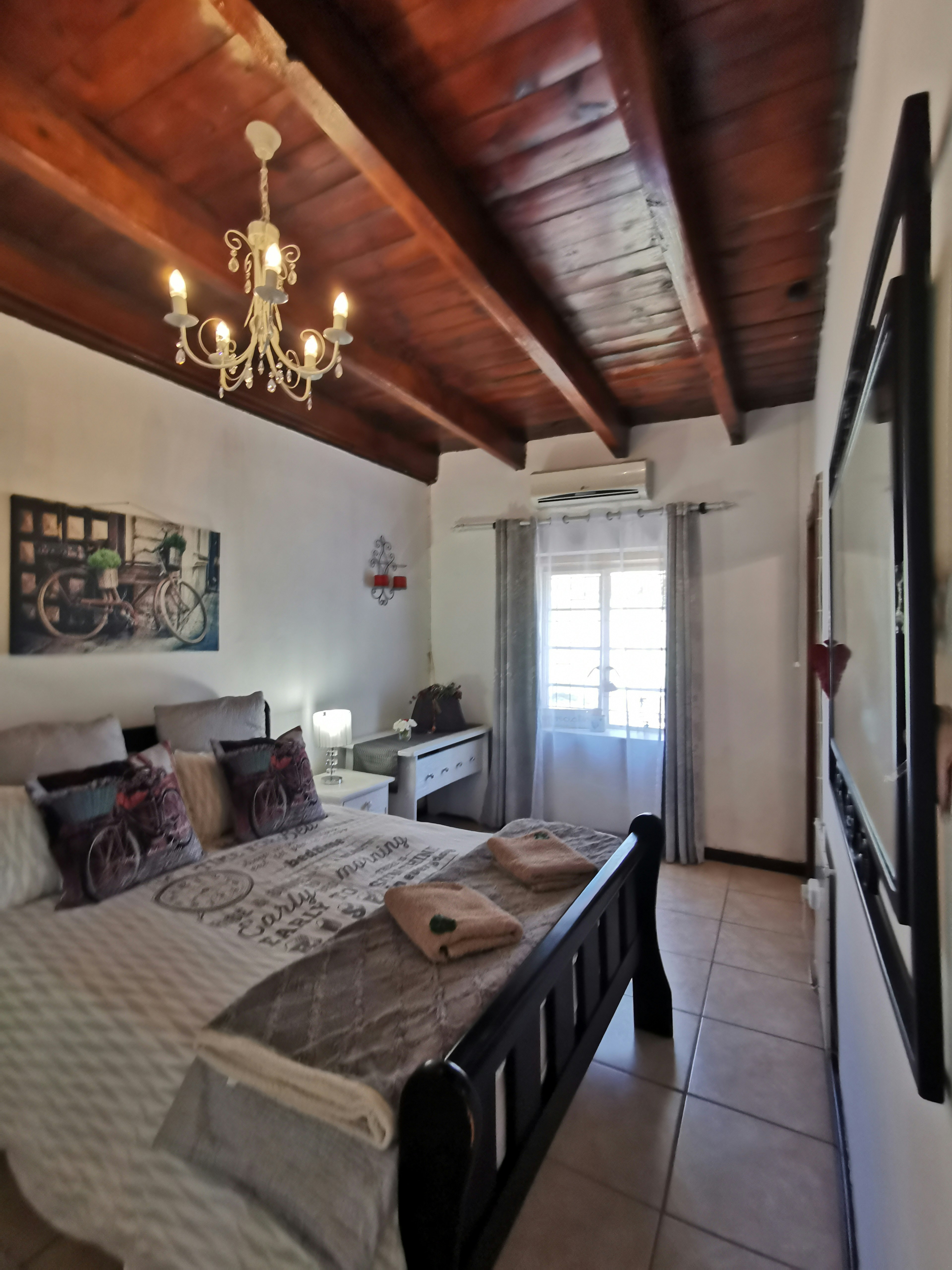 The accommodation comprises a sitting room with a TV, 3 bedrooms, a built-in braai on the patio and a fully equipped kitchen. The main bedroom has a double bed with an en-suite bathroom fitted with a shower while the second bedroom also has a double bed that is ideal for children. The third room also has a double bed and en-suite bathroom. The second and third bedrooms are interleading.