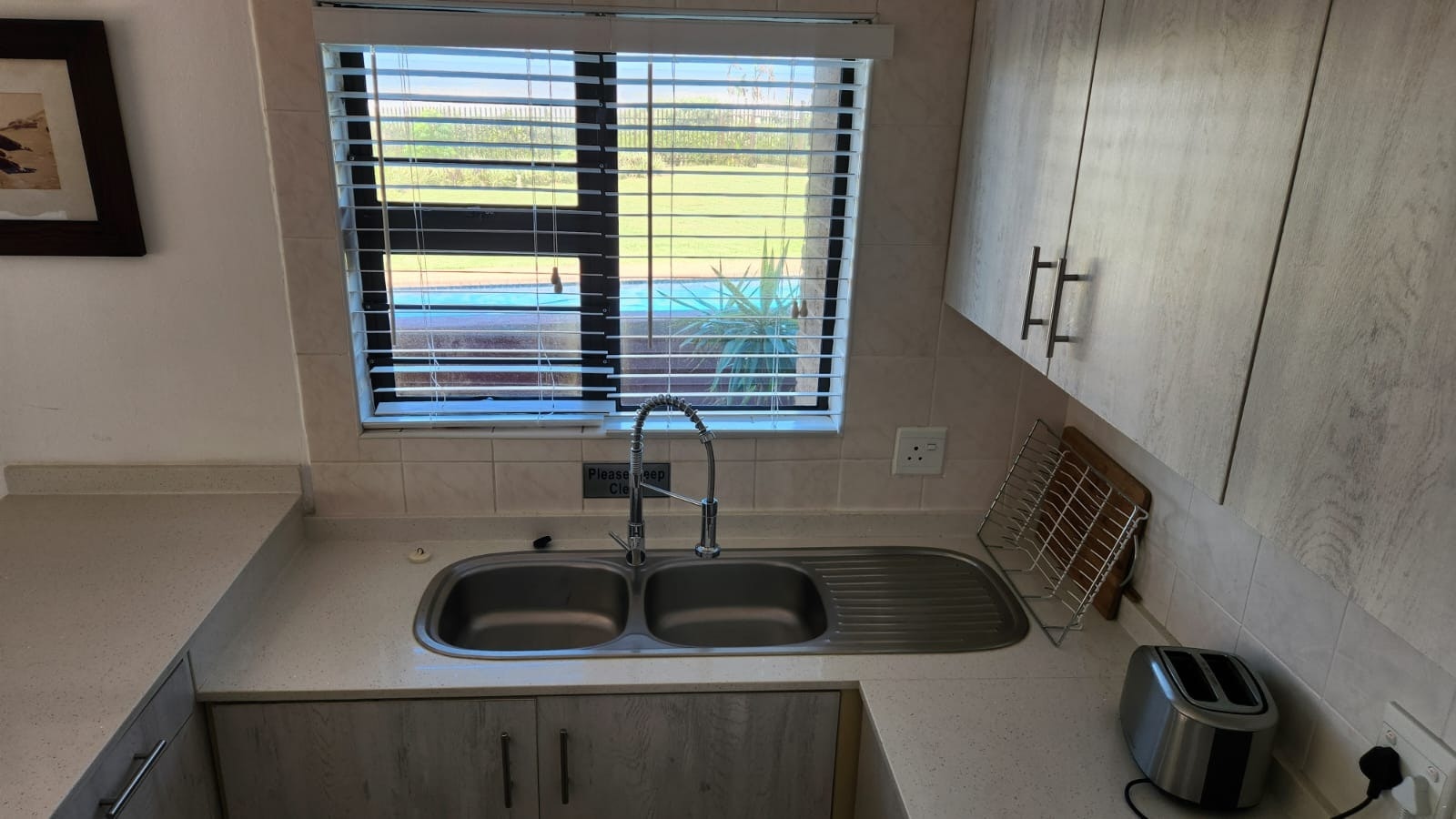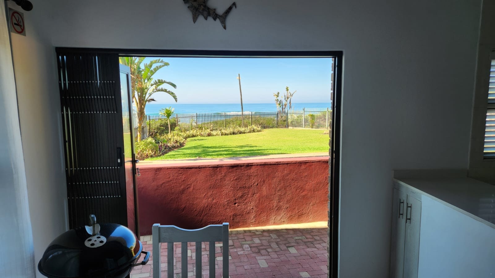 Die leefarea lei na die balkon met 'n Weber-braai. Die kompleks spog met direkte toegang tot die strand. Daar is braaigeriewe en 'n swembad-area. Gaste kan swem, branderplankry en visvang by die strand. Dit is ook die ideale plek vir 'n stappie langs die see en om walvisse te gewaar. Gaste het toegang tot 'n enkelmotorhuis.
