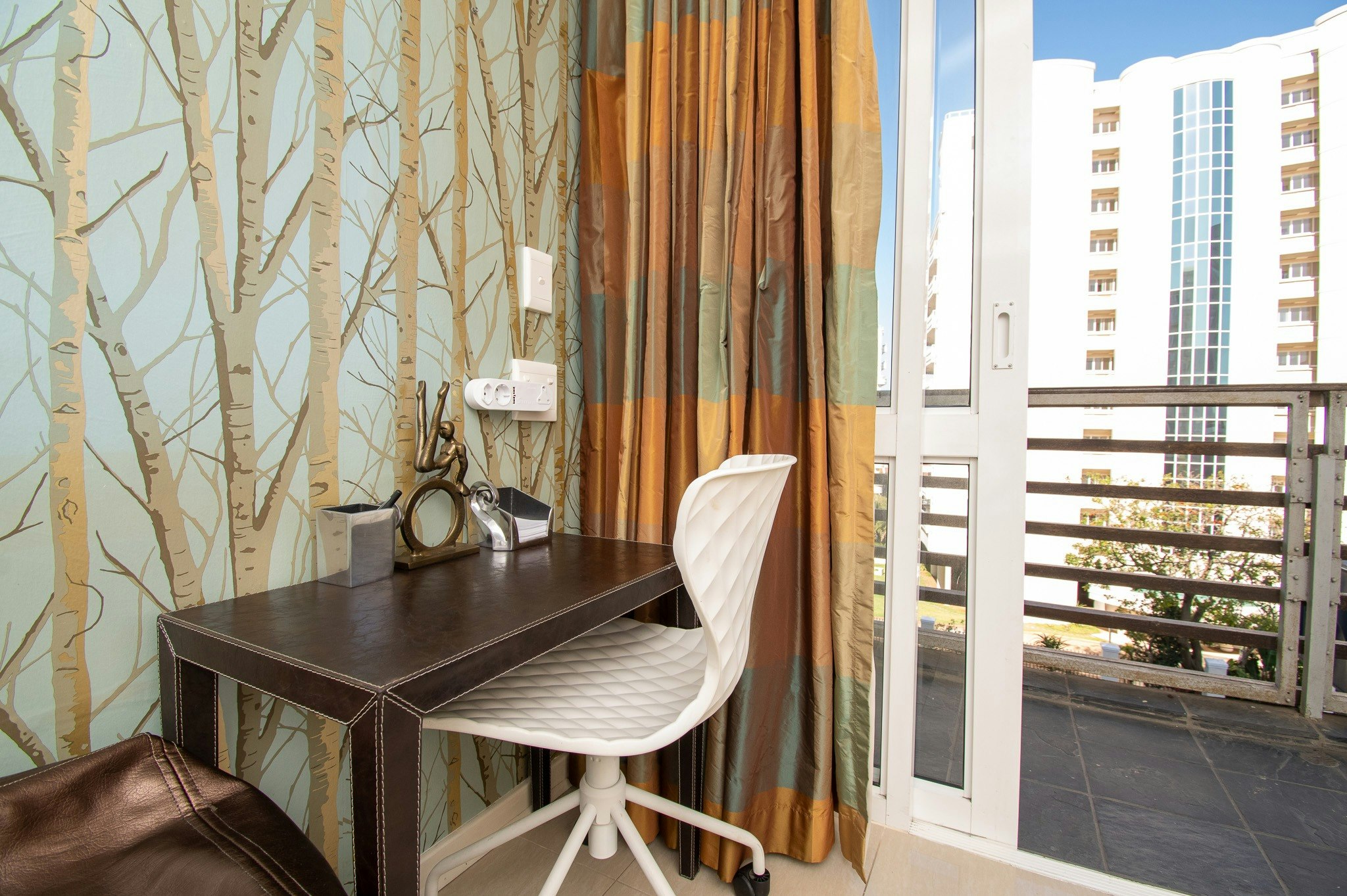 Buite is daar 'n onderdakbalkon met sitplek waar gaste kan ontspan en die uitsig kan geniet. Die woonstel is stapafstand vanaf die winkels en restaurante in die area.