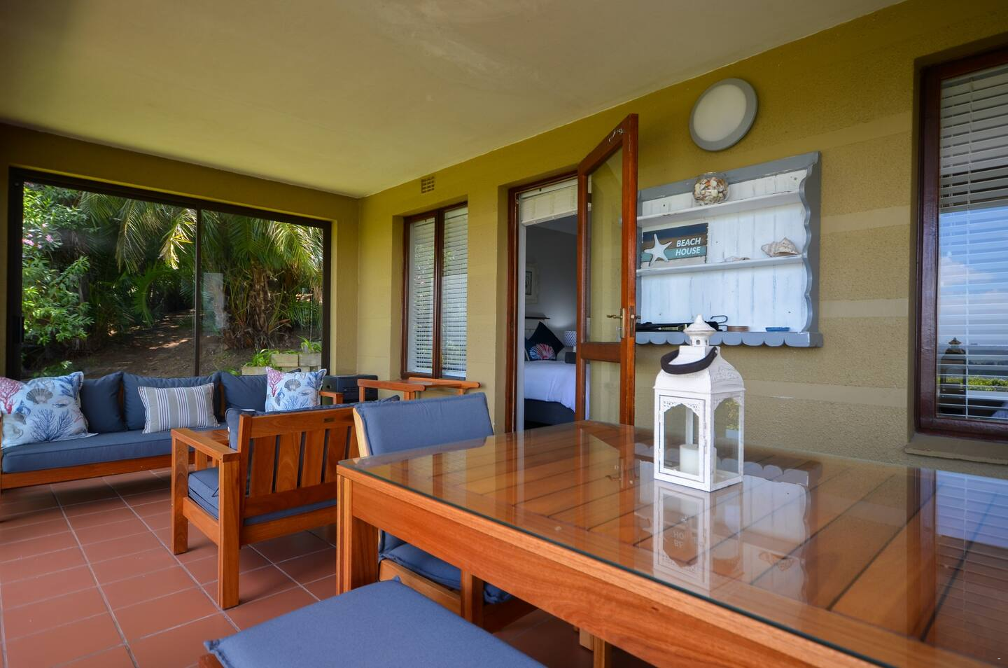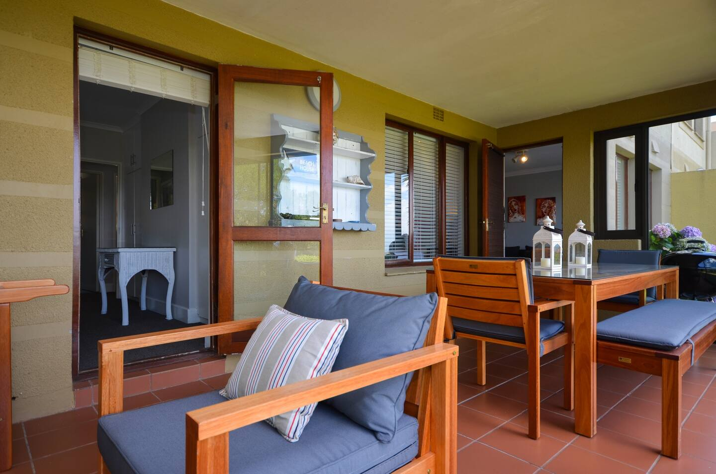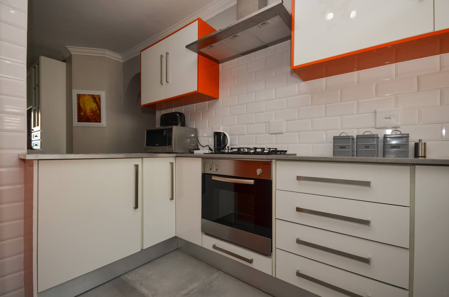 The kitchen is well-equipped for self-catering and is fitted with a stove and oven, fridge-freezer, microwave, kettle, toaster, and a dishwasher. The lounge contains comfortable couches and a flat-screen TV with a selection of DStv channels. Wi-FI is available. The enclosed patio offers a second lounge area, a gas heater, and a dining table and seating, and a kettle braai. The patio has sliding doors all alongside that can be open to the garden area.